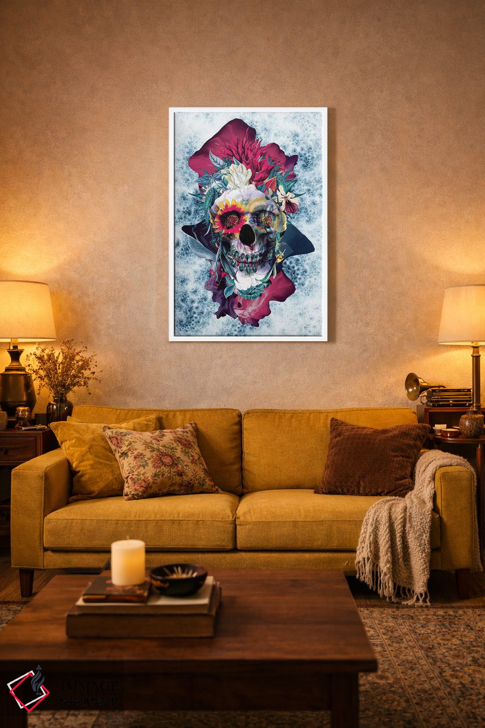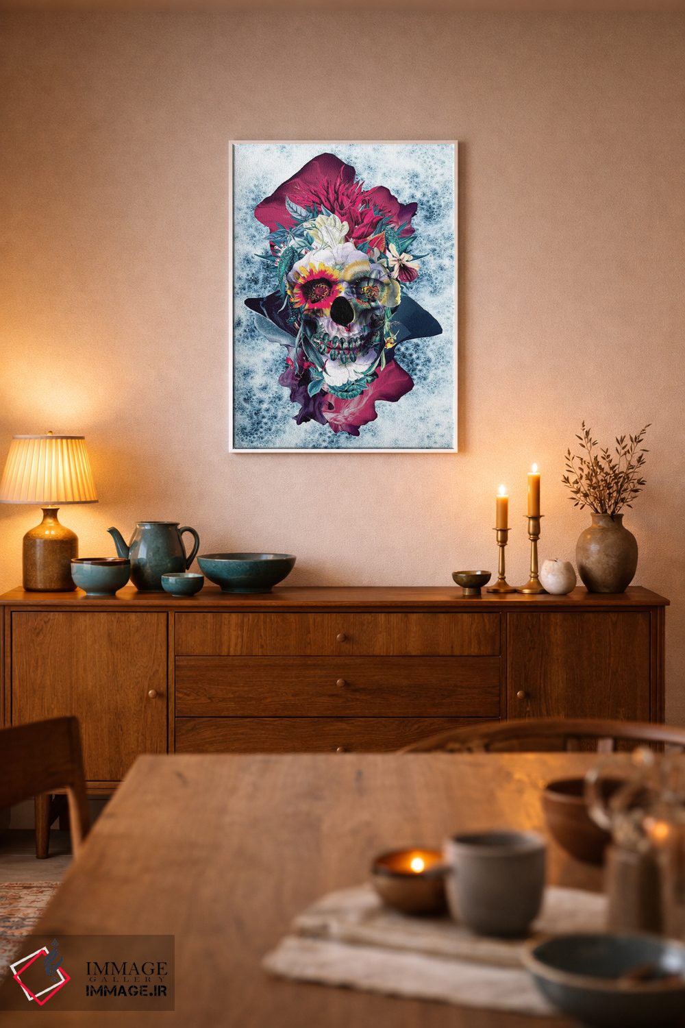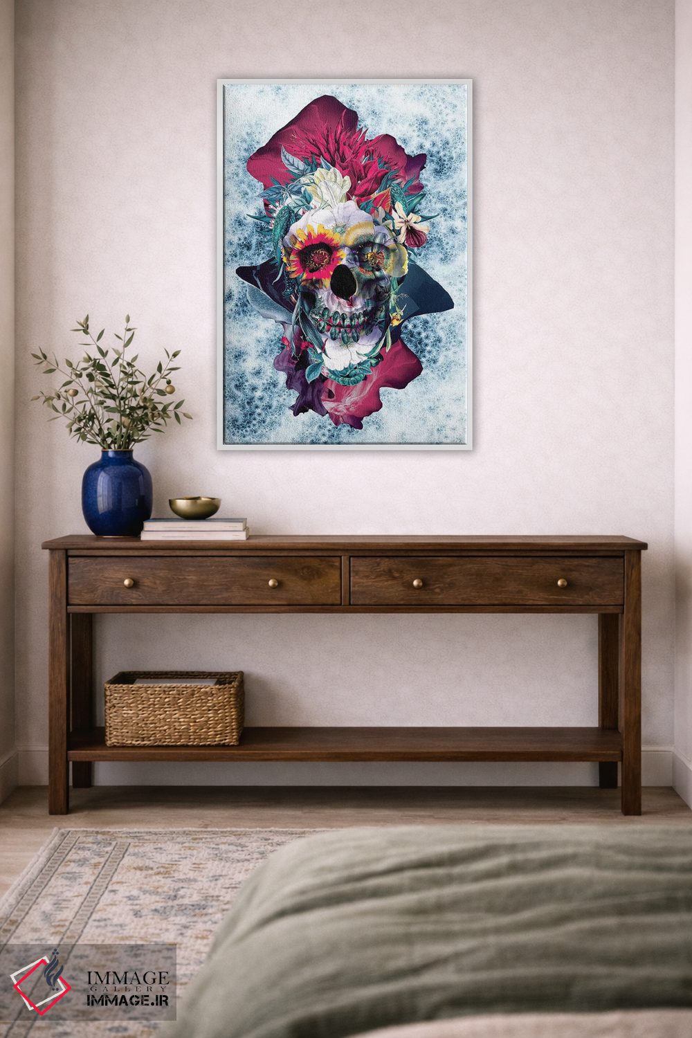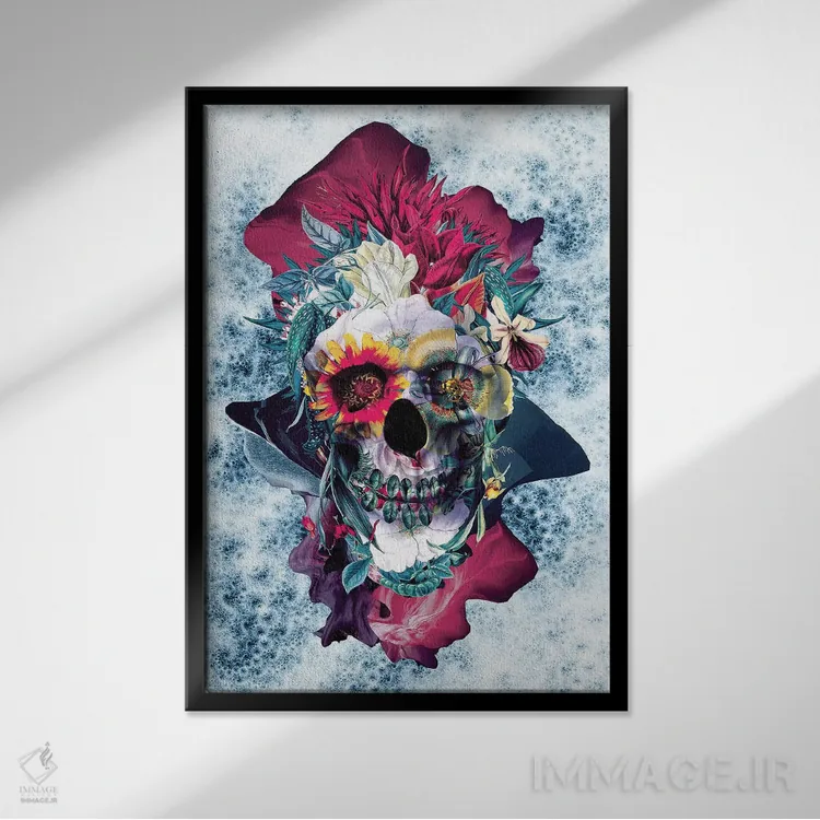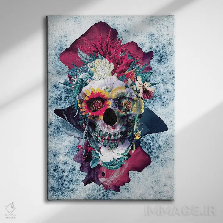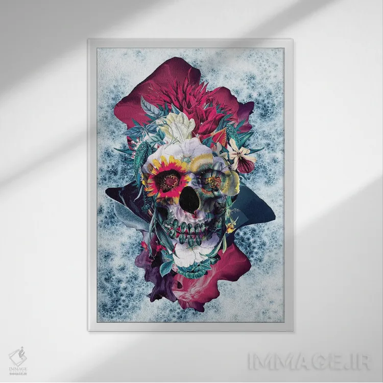 «جمجمه گلدار آبی» اثرِ «ریزا پکر» با حالوهوای دیجیتال و مدرن، برای دکورهای امروزی عالی است.