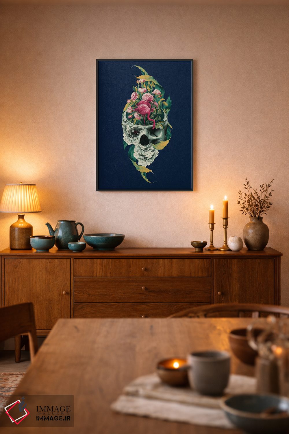براساس پالت ترکیبی اثر، قاب تیک گرم (چوبی) پیشنهاد اول است و مشکی مات (فریم متوسط) مکمل. برای سفارشهای پروژهای با ابعاد و قابهای اختصاصی با ایماژ در تماس باشید.