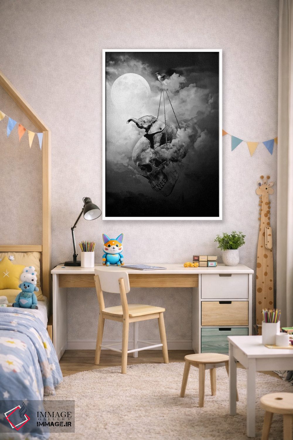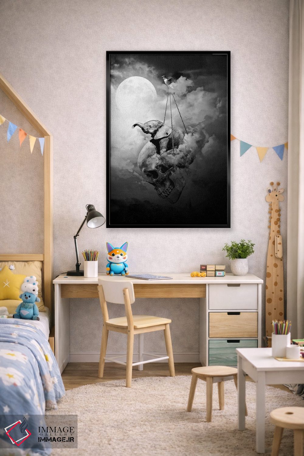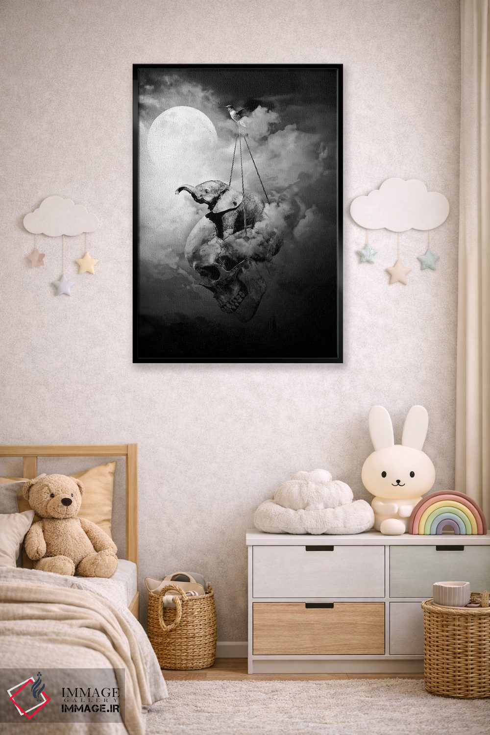بوم گالری ایماژ نسخهی چیدماناتیوِ سطحبالا از یک اثر هنری است؛ روی کنواس سفیدِ یکدست و بدون اسید با چاپ هنریِ استاندارد جیکلی برای بازآفرینی حرفهای و جوهرهای آرشیوی Epson UltraChrome HDR برای بازنمایی بهتر تونهای حساس، رنگها روی دیوار متعادلتر و سایهها جزئیتر دیده میشوند. کلافکشی مرتب و یراق نصب استاندارد، تجربهی نصب را ساده میکند. در صورت تمایل میتوانید نسخهی قابدار را هم انتخاب کنید یا برای قاب و اندازه سفارشی با ما در تماس باشید.