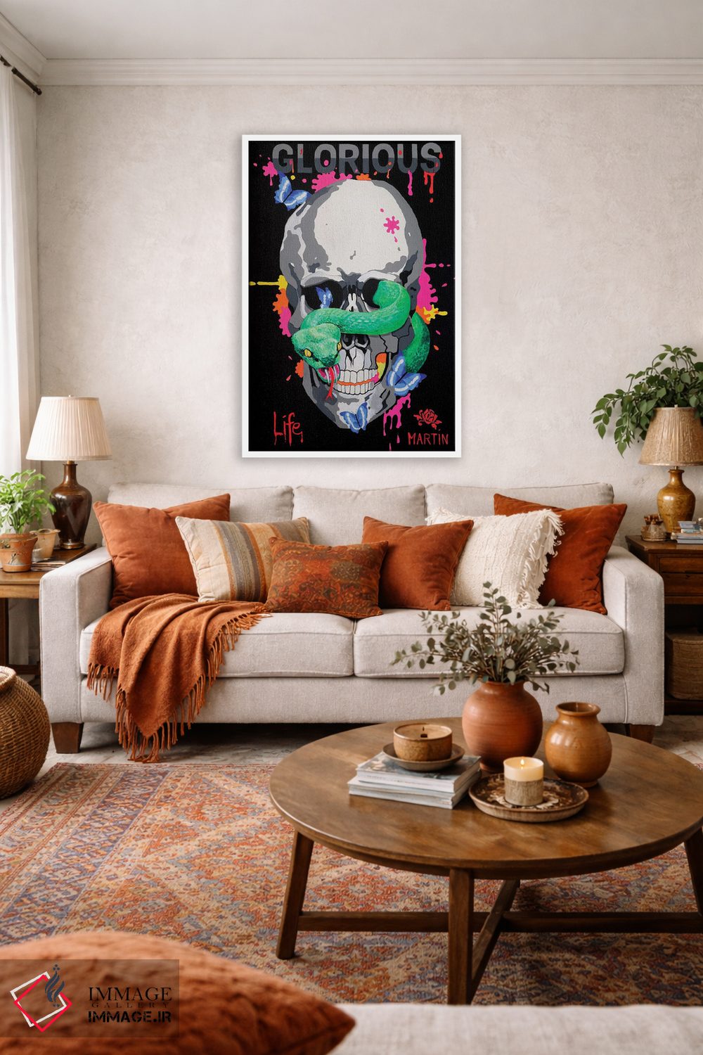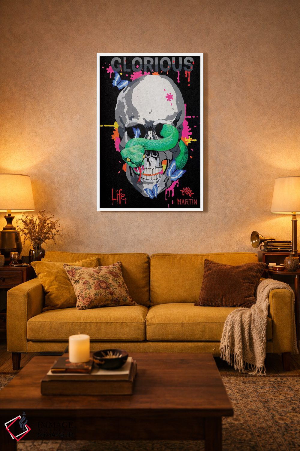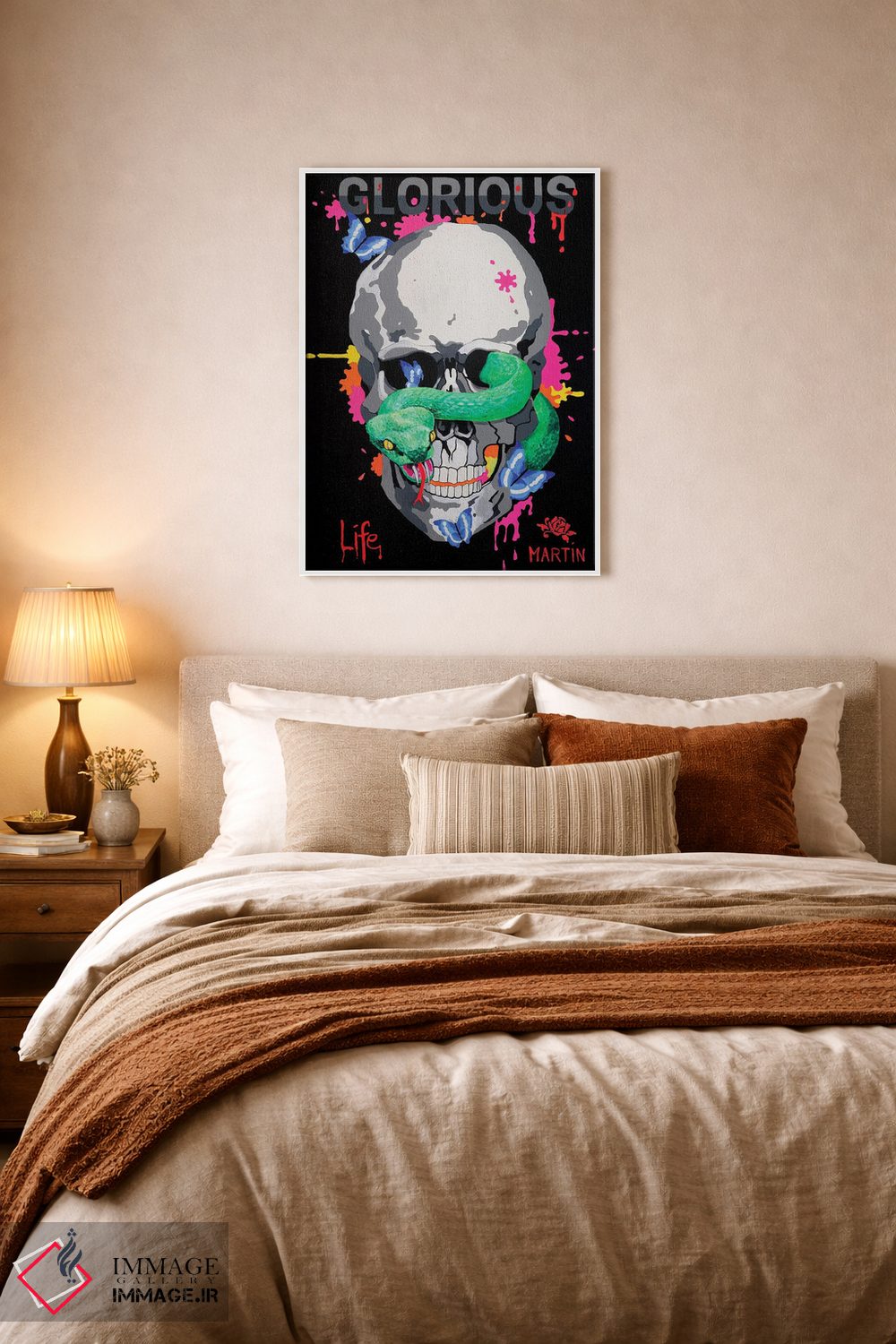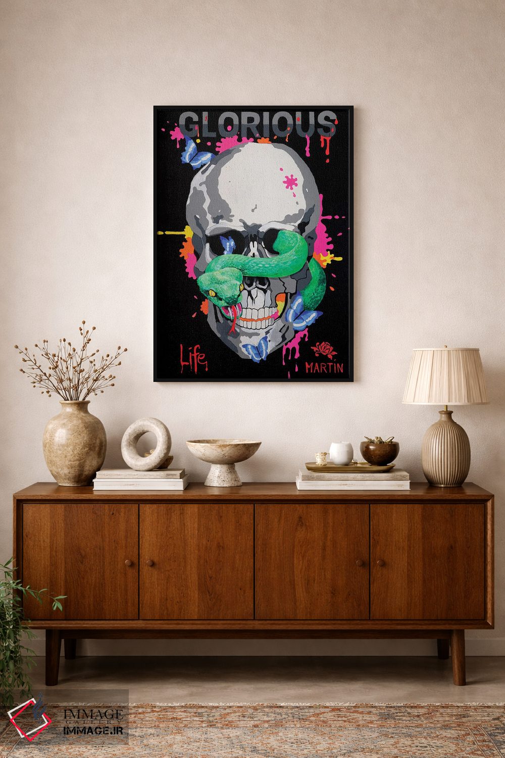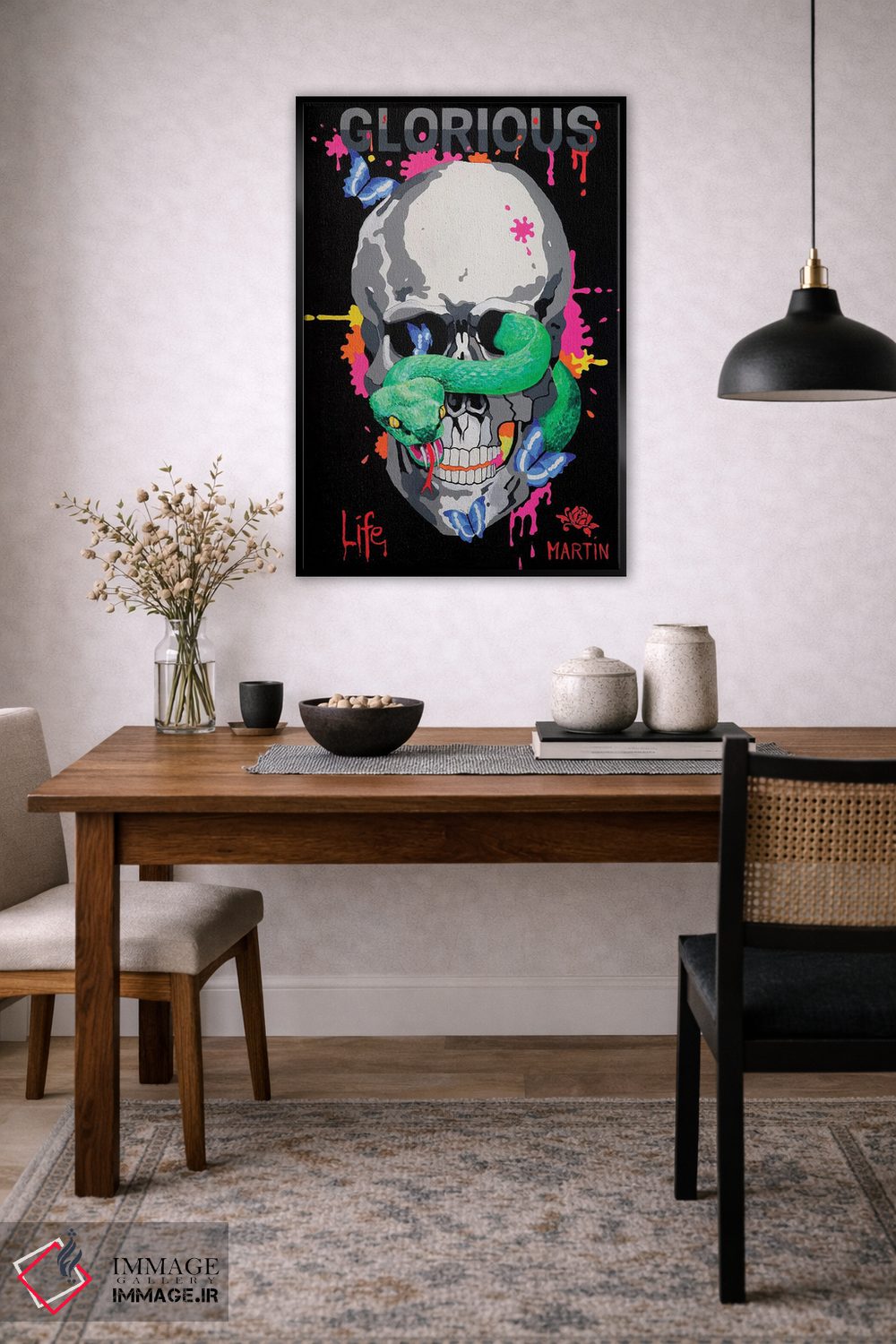 اگر میخواهید دیوار کمی سرزندگیِ محترمانه داشته باشد، «زندگی باشکوه» اثرِ «پیتر مارتین» به فضا، گرمیِ ملایم اضافه میکند، برای دیوار کنار میز کار گزینهٔ مناسبیست. به دیوار، قصه میدهد—اما قصهای آرام و شیک.