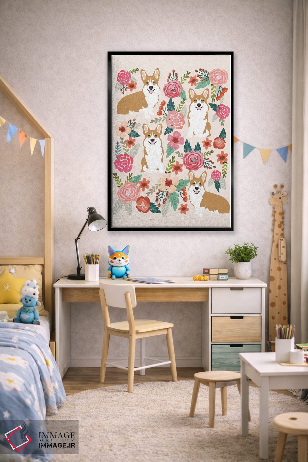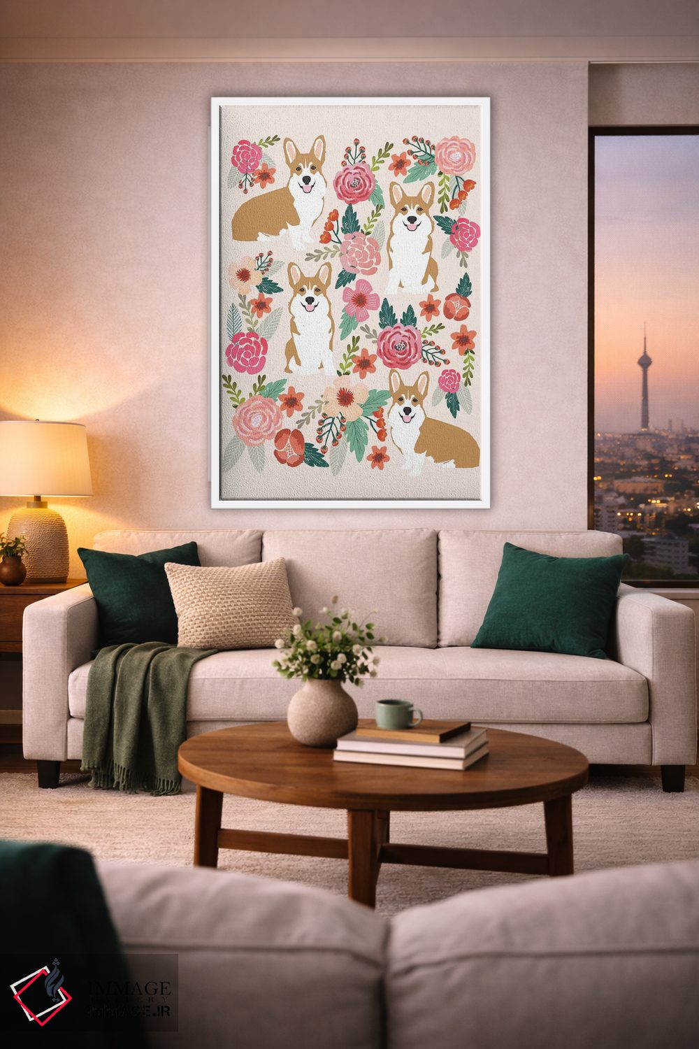 اگر به آثار حیوانات علاقه دارید، «کولاژ گلهای کُرگی اول» اثرِ «پت فرندلی (برند هنری مرتبط با حیوانات خانگی)» گرما و شخصیت به فضا اضافه میکند، برای کافههای کوچک و صمیمی گزینهٔ مناسبیست. حسش صمیمی است، اما کیفیتش جدی و خوشپرداخت.