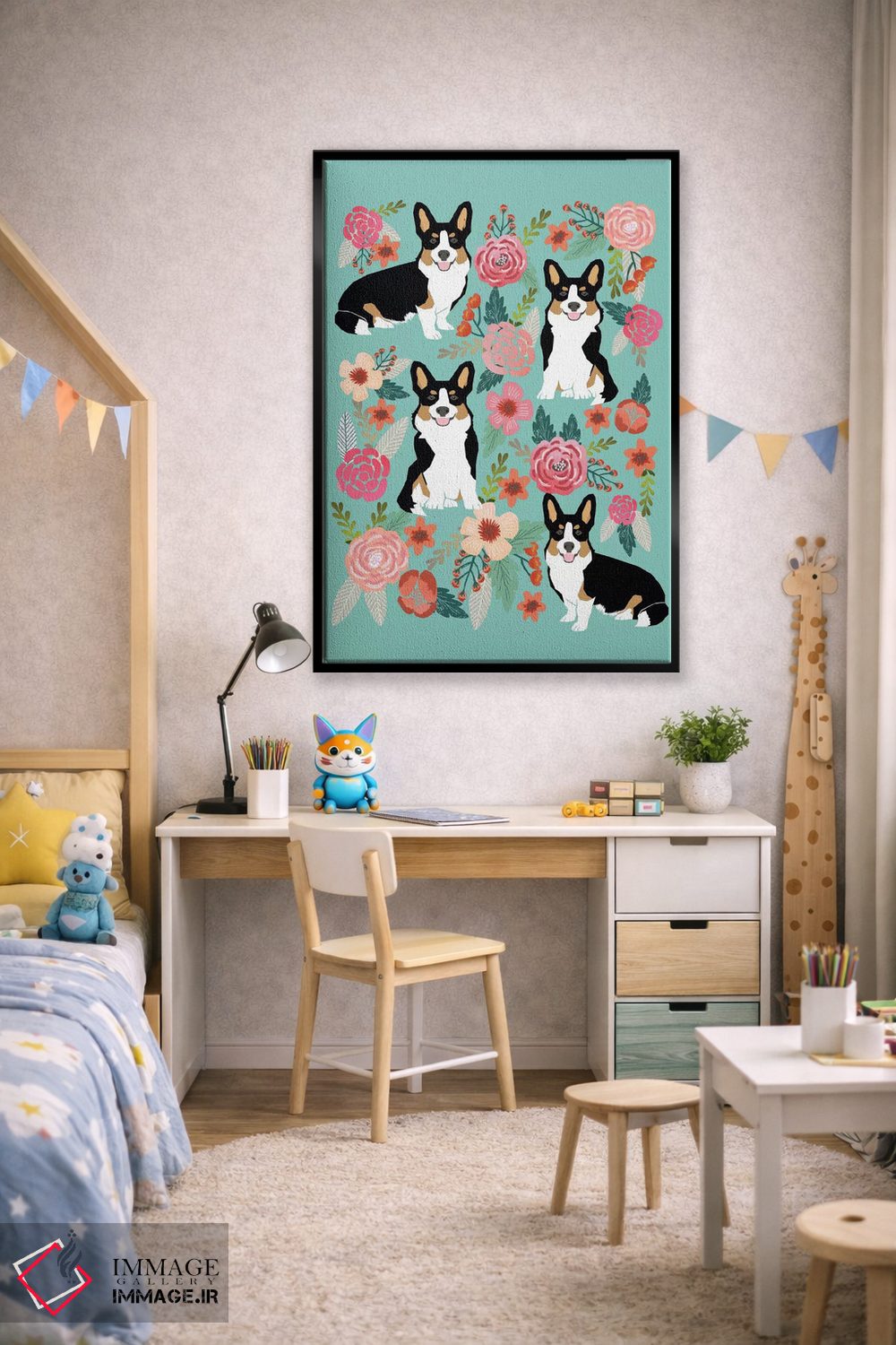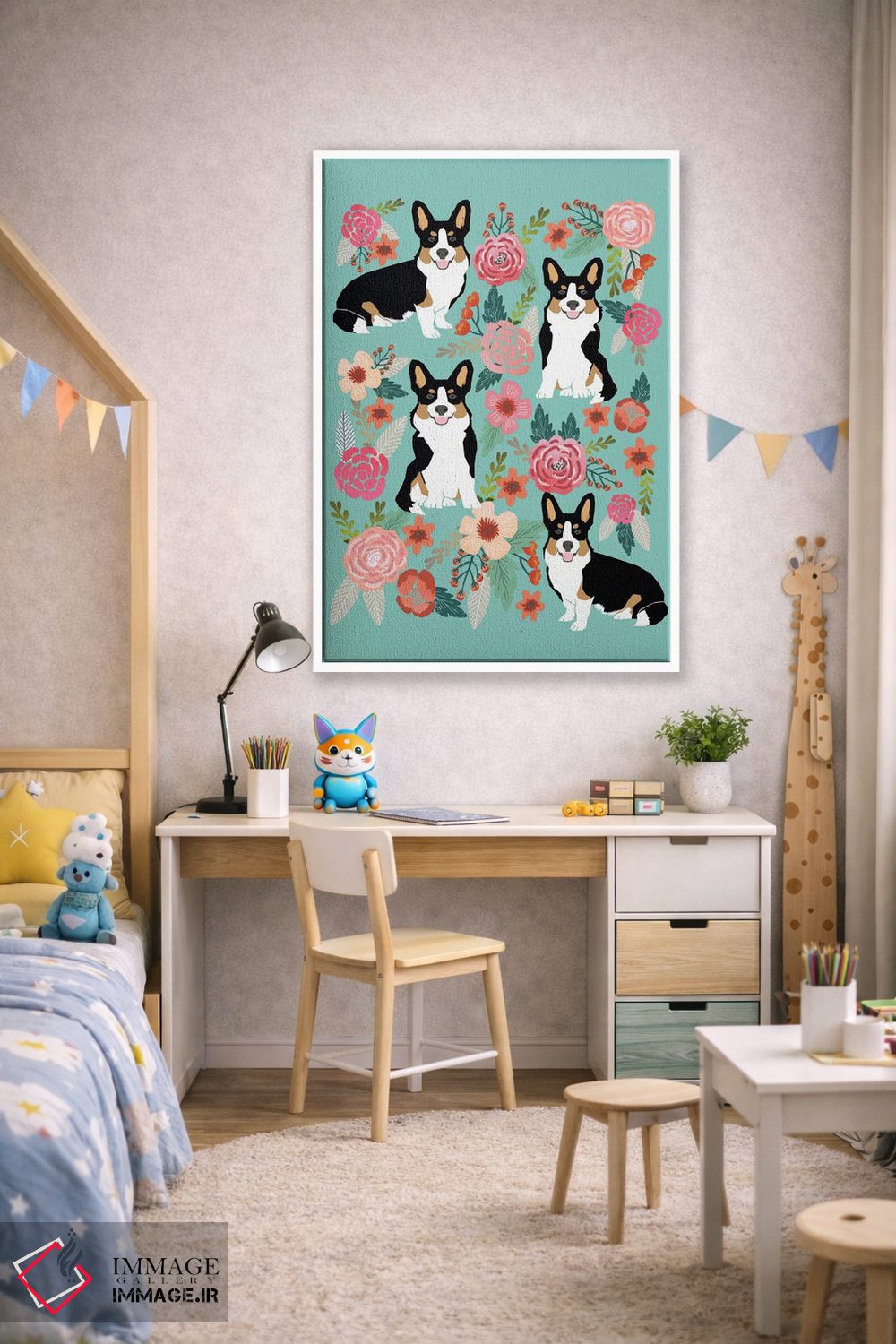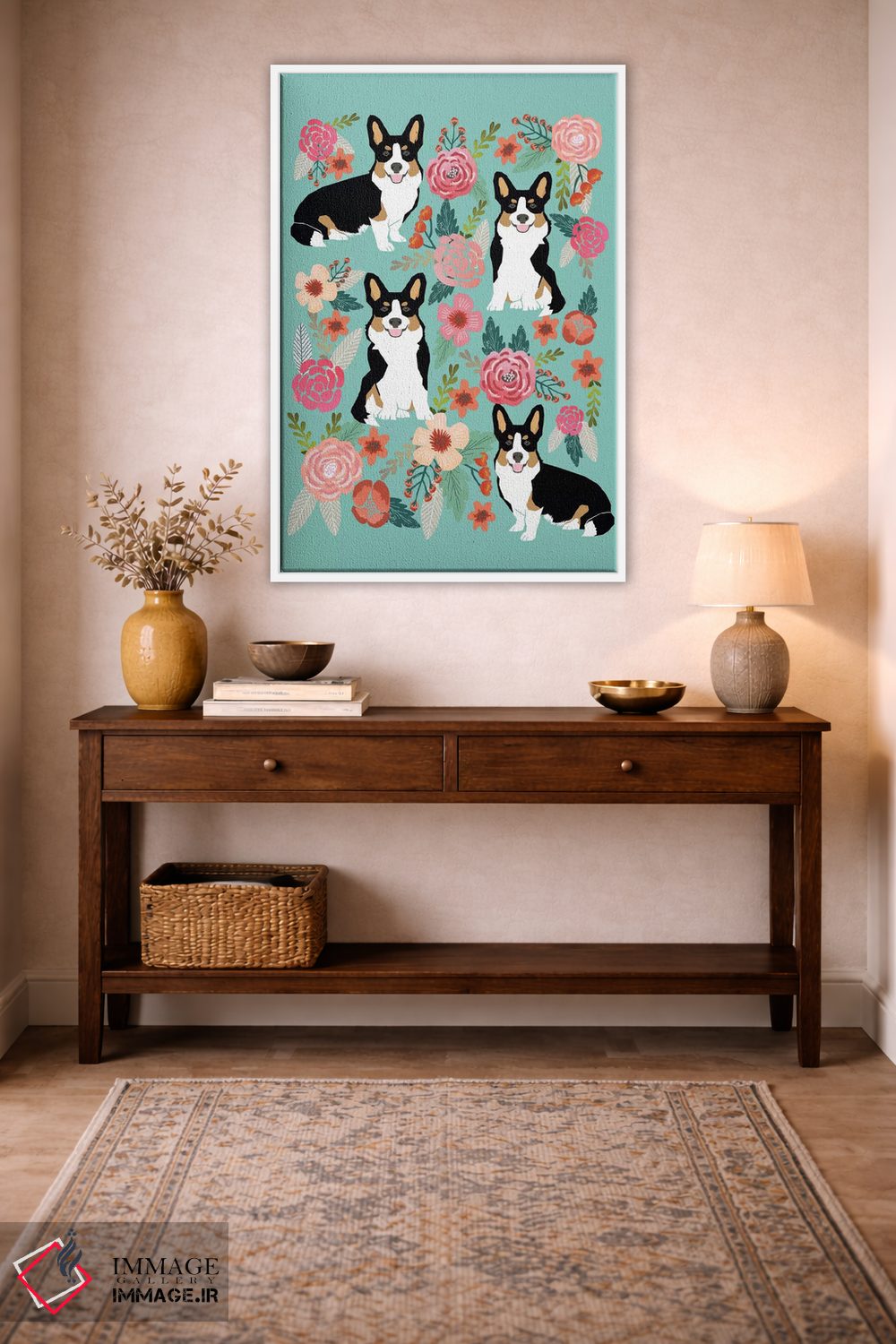 «کولاژ گلهای کُرگی دوم» اثرِ «پت فرندلی (برند هنری مرتبط با حیوانات خانگی)» میتواند در کنار رنگهای خنثی، تضاد دلچسبی بسازد؛ برای راهروها و ورودیهای گرم پیشنهاد میشود. حسش صمیمی است، اما کیفیتش جدی و خوشپرداخت.