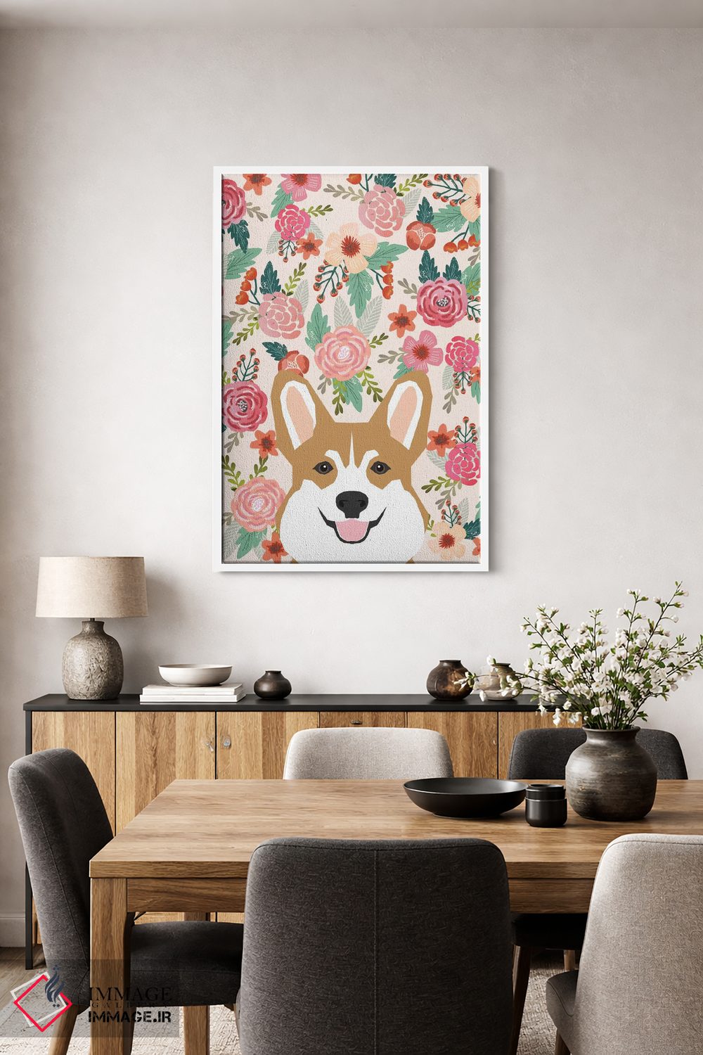 برای دکورهای صمیمی، «پرتره گل کُرگی» اثرِ «پت فرندلی (برند هنری مرتبط با حیوانات خانگی)» به فضا، گرمیِ ملایم اضافه میکند؛ برای کافههای کوچک و صمیمی انتخابی خوشسلیقه است. اگر دنبال اثر دوستداشتنیِ «بیغلو» هستید، این یکی دقیق مینشیند.