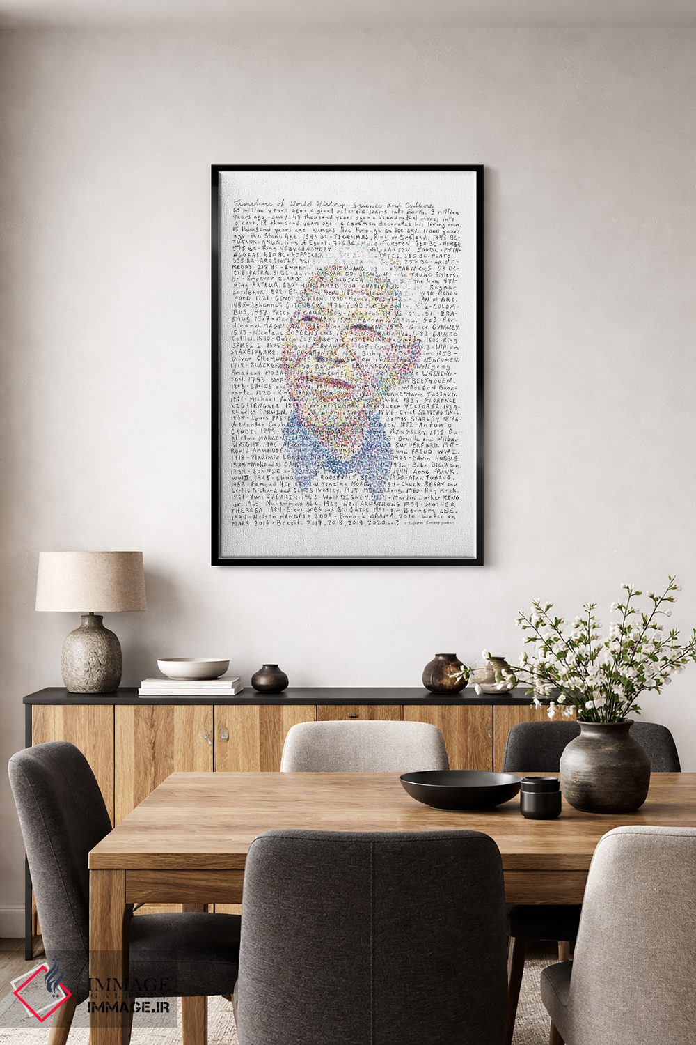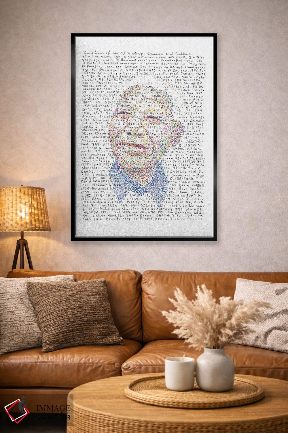 برای خانههایی که به زیباییِ آرام علاقه دارند، «نلسون ماندلا» اثرِ «پروفِسور فولسکپ (نام مستعار هنری)» سلیقهٔ صاحبخانه را بیاغراق نشان میدهد؛ برای کنار کتابخانه یا میز کار پیشنهاد میشود. در کنار نورپردازی نقطهای، جلوهاش حرفهایتر میشود.