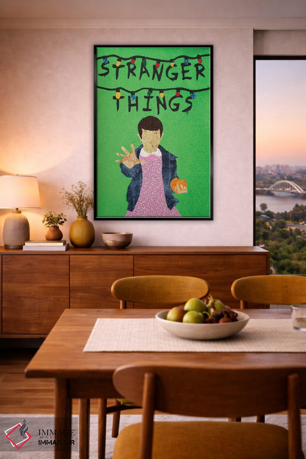 براساس پالت ترکیبی اثر، قاب تیک گرم (چوبی) پیشنهاد اول است و مشکی مات (فریم متوسط) مکمل. برای سفارشهای پروژهای با ابعاد و قابهای اختصاصی با ایماژ در تماس باشید.