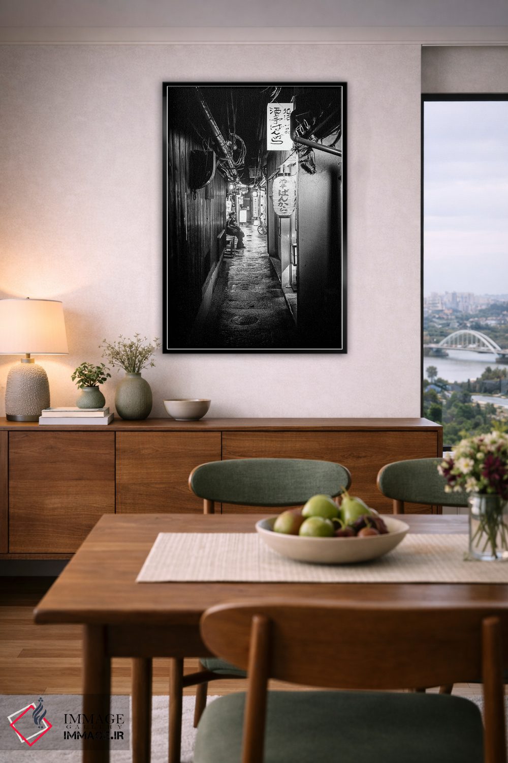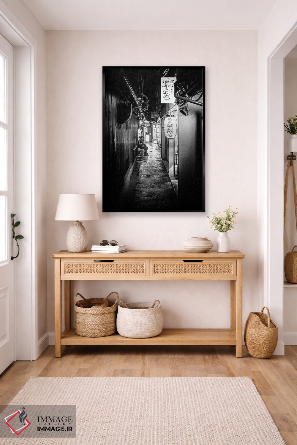 این تابلو اثرِ «فیلیپ هوگونار» با حس سیاهوسفید، برای راهروهای شیک و دیوارهای کمجزئیات انتخاب مناسبی است؛ موضوعِ این اثر هم فضا را مرتبتر نشان میدهد.