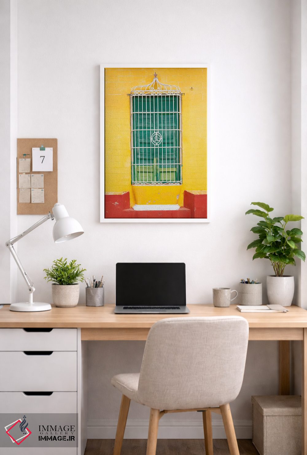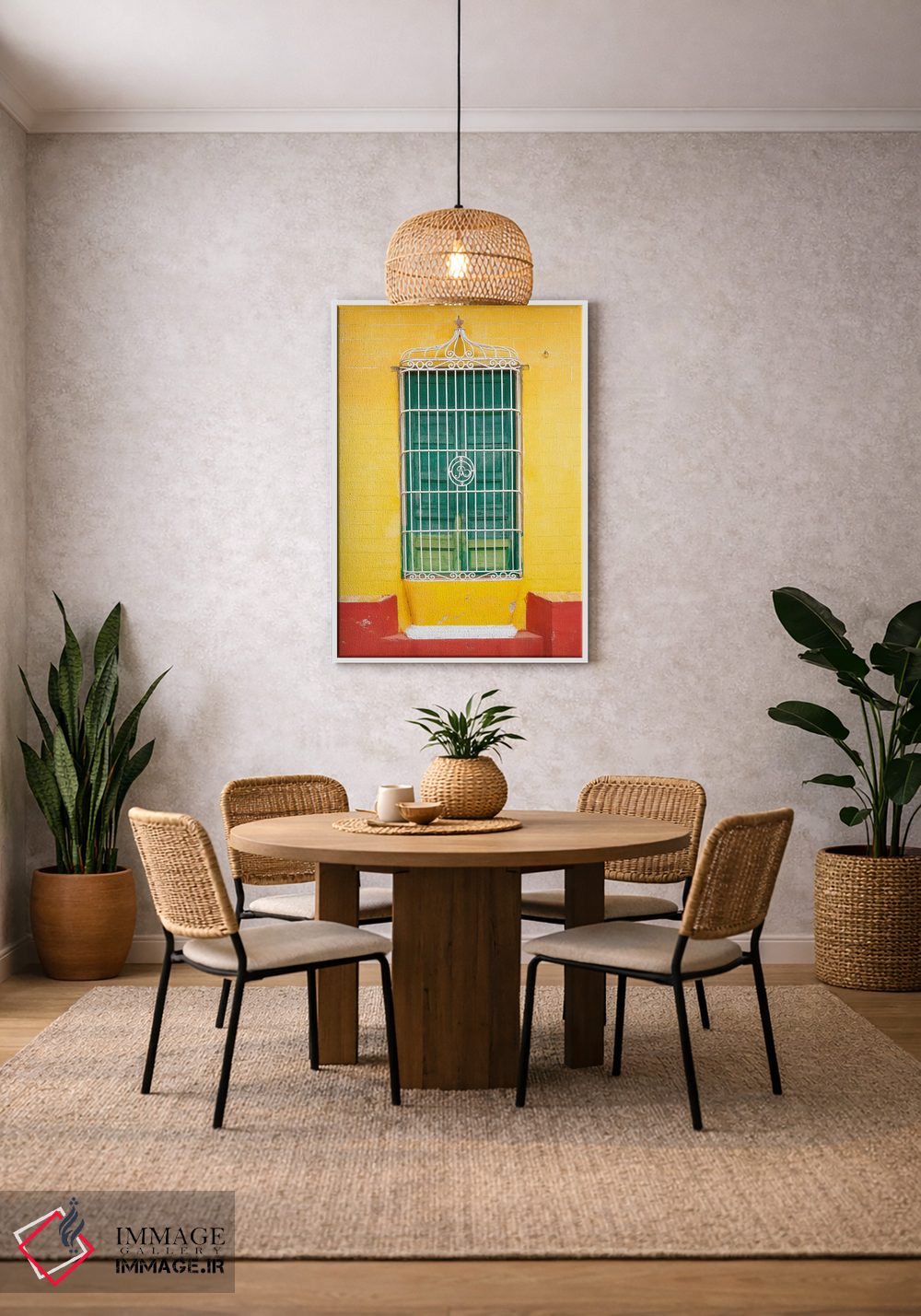 اگر میخواهید اثر برجستهتر شود، زرد را در صندلی تک یا کوسن تک جا بدهید تا نگاه به سمت اثر هدایت شود. انتخاب قاب هم میتواند این اکسنت را تقویت کند.