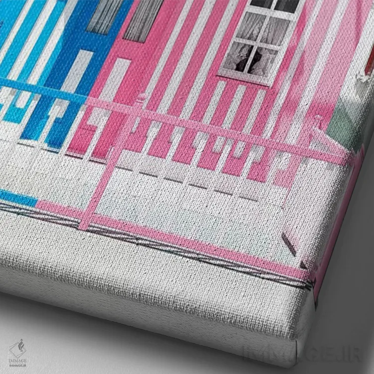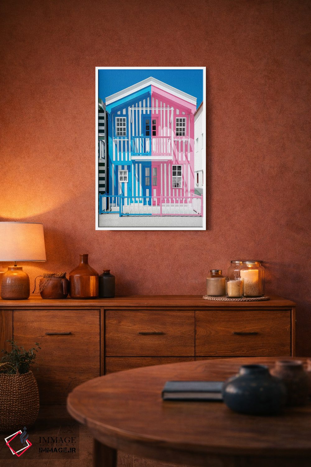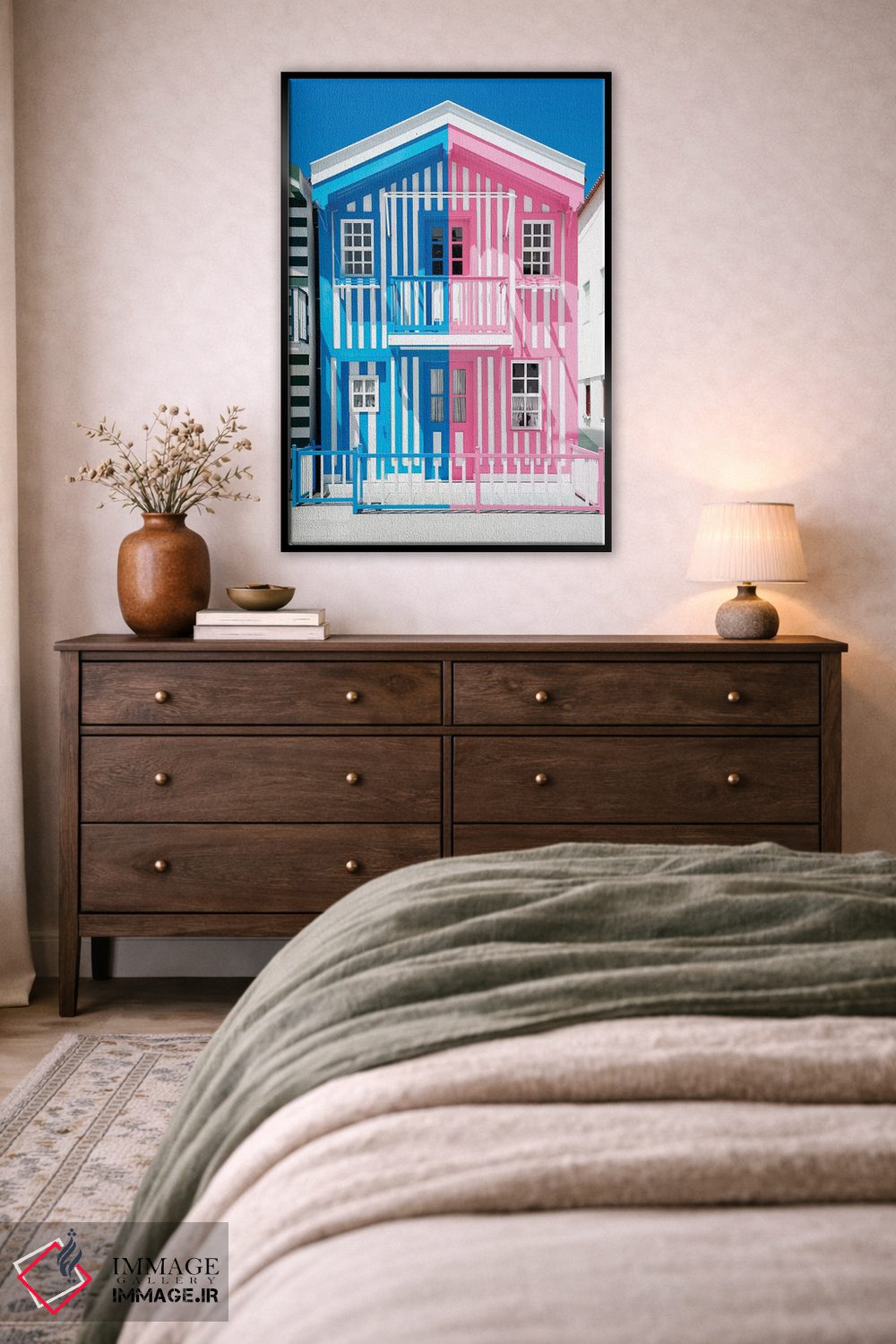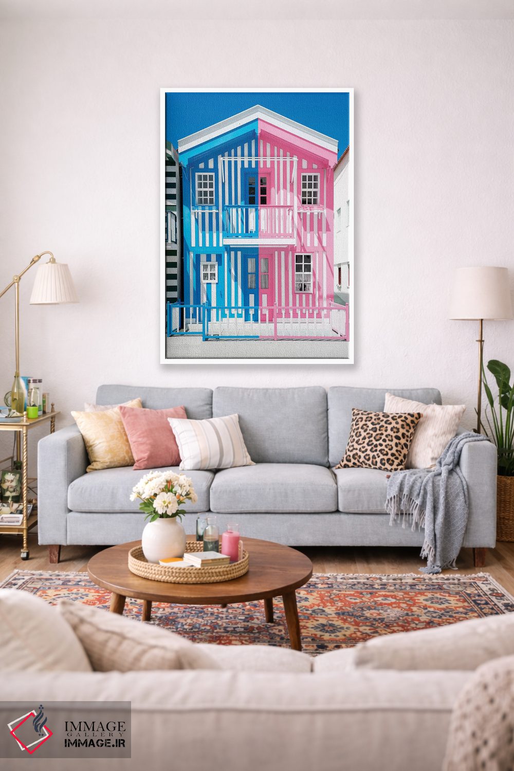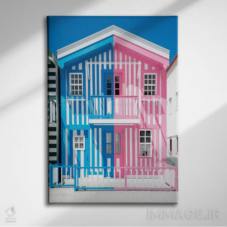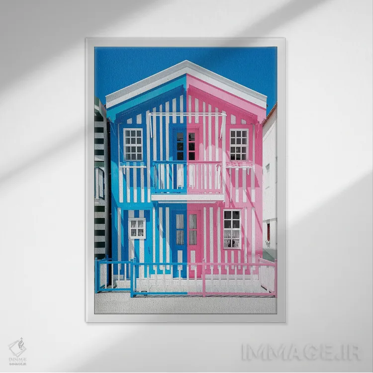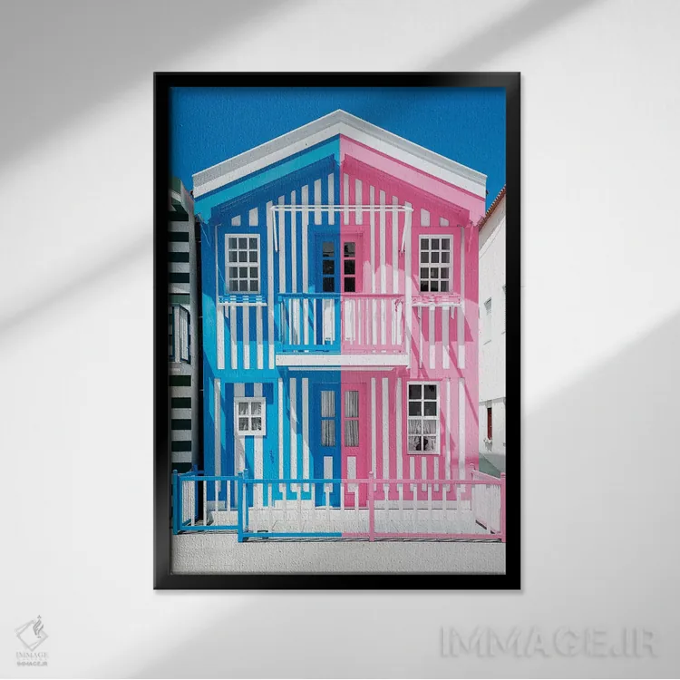 تابلو دکوراتیو "خانه راه راه رنگارنگ آبی و صورتی" اثر فیلیپ هوگونار