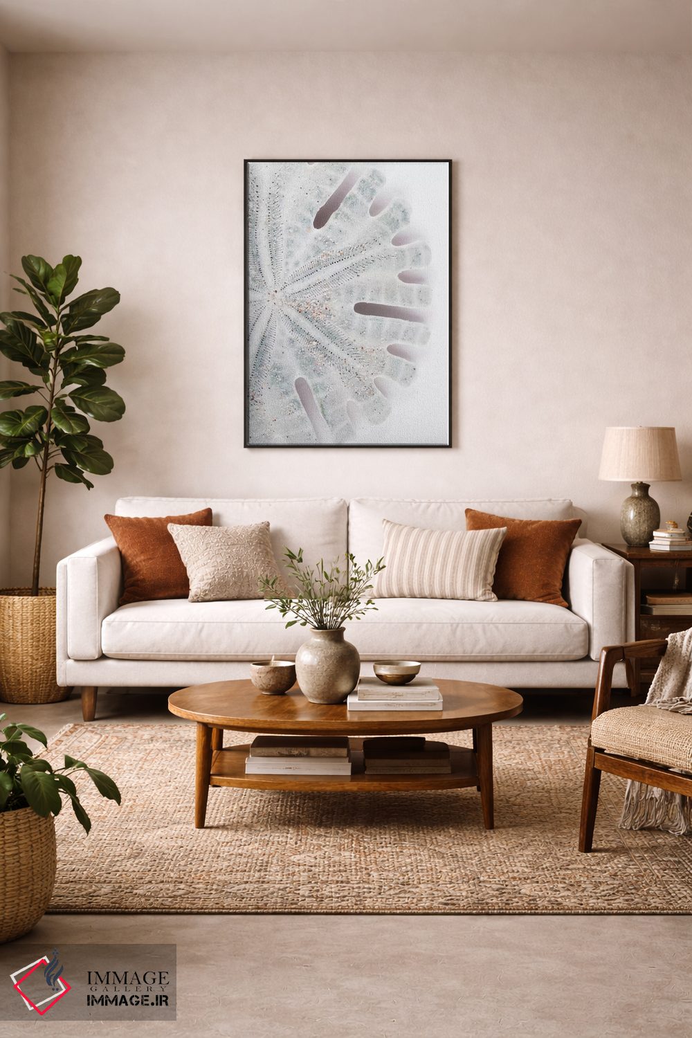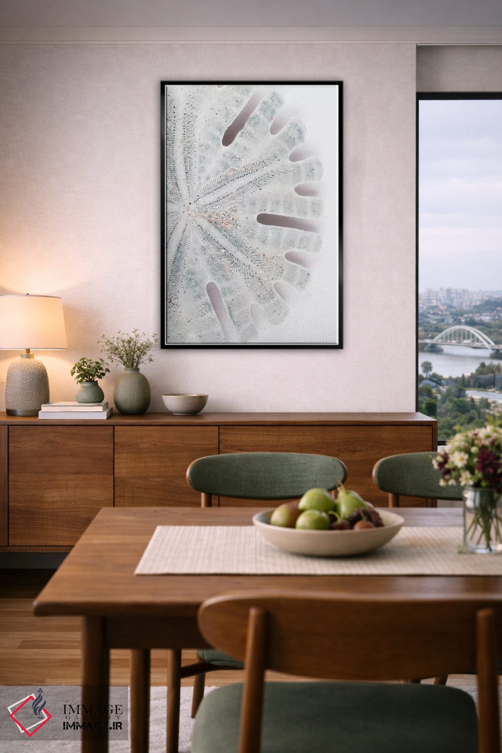 براساس پالت خنثی اثر، قاب مشکی مات (فریم باریک) پیشنهاد اول است و سفید مات (فریم باریک) مکمل. برای سفارشهای پروژهای با ابعاد و قابهای اختصاصی با ایماژ در تماس باشید.