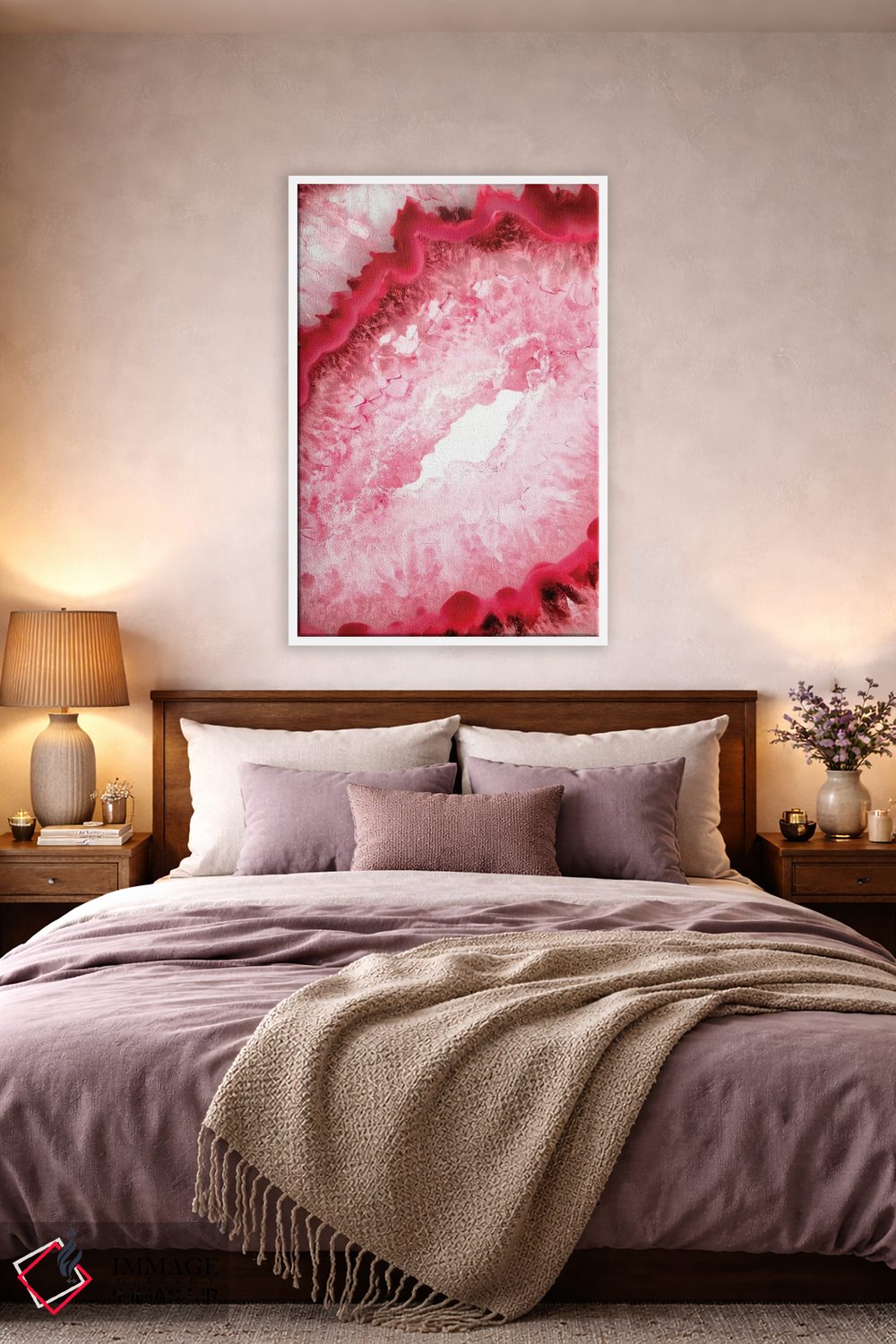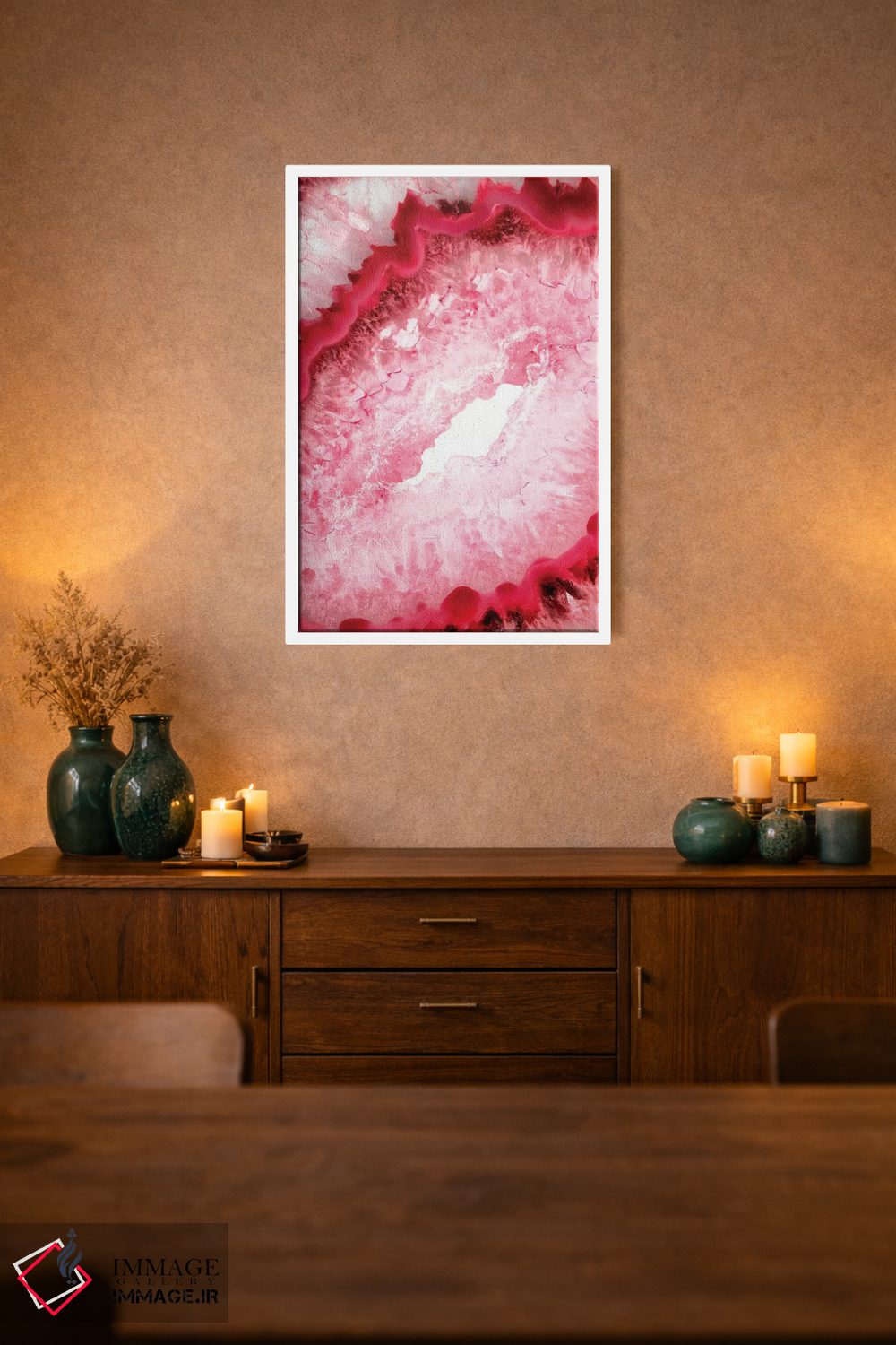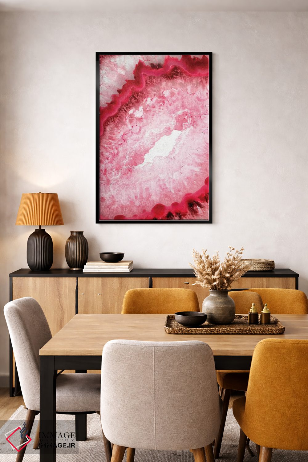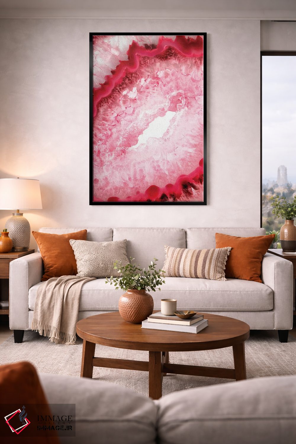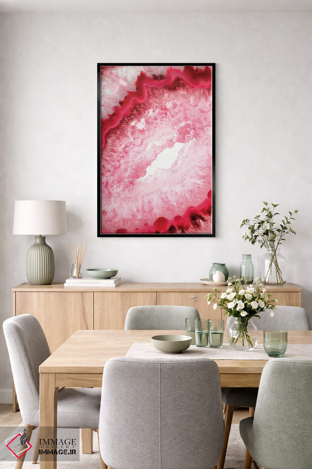 برای اینکه پالت جمع شود، صورتی را در یک تابلو کوچک مکمل جا بدهید تا هماهنگی بیصدا اما موثر باشد. انتخاب قاب هم میتواند این اکسنت را تقویت کند.