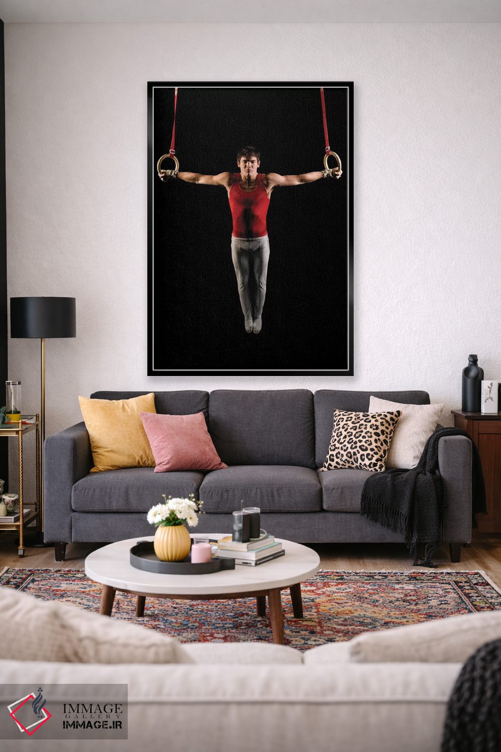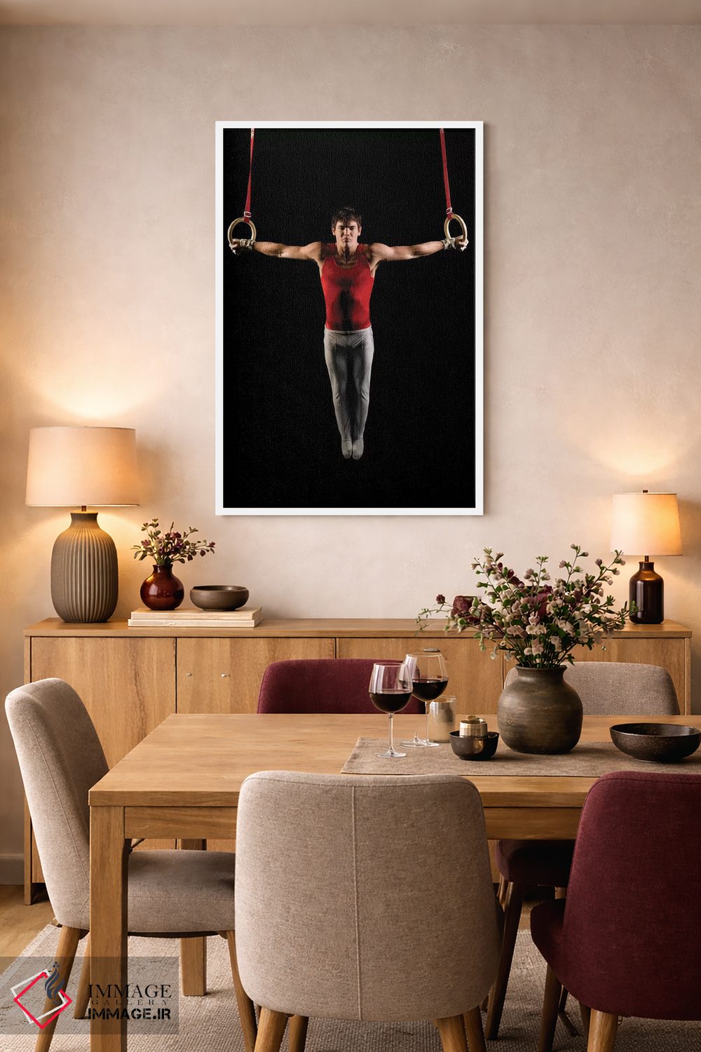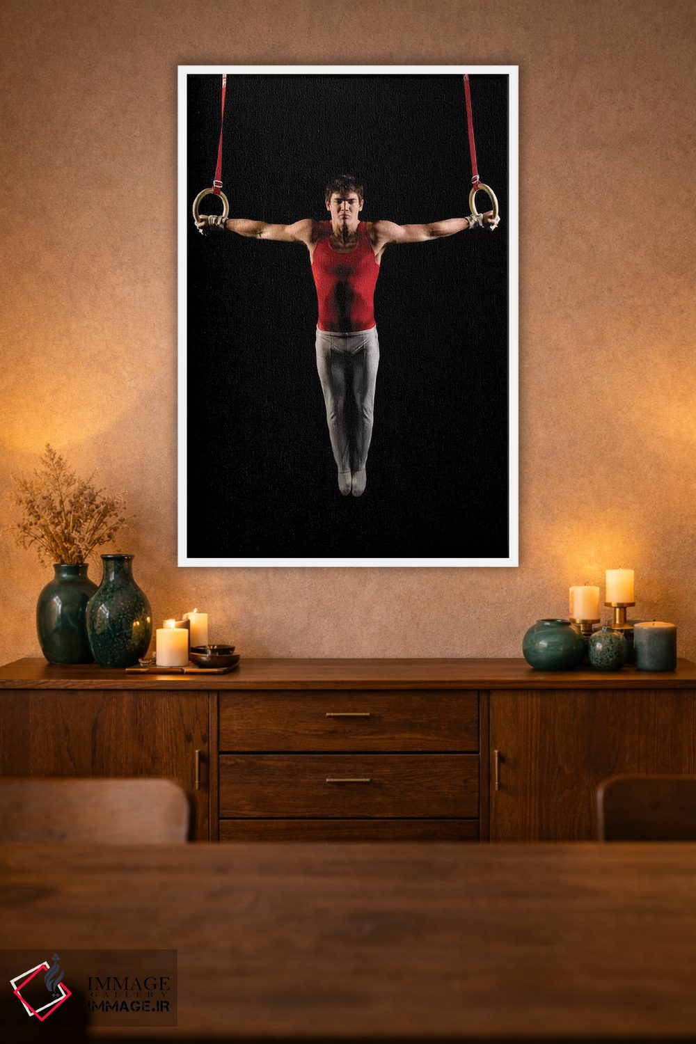 این تابلو با عنوان «مرد جوانی که در حال تمرین روی حلقههای ژیمناستیک است، جزیره بینبریج، ایالت واشنگتن، ایالات متحده آمریکا» اثرِ «پانورامیک ایمجز (استودیو عکاسی عریض)» حس گالریوار را بیسروصدا وارد خانه میکند؛ برای محیطهای کاری و استودیوهای خلاق پیشنهاد میشود. اگر میخواهید یک اثر همیشه «بهروز» بماند، انتخاب خوبیست.