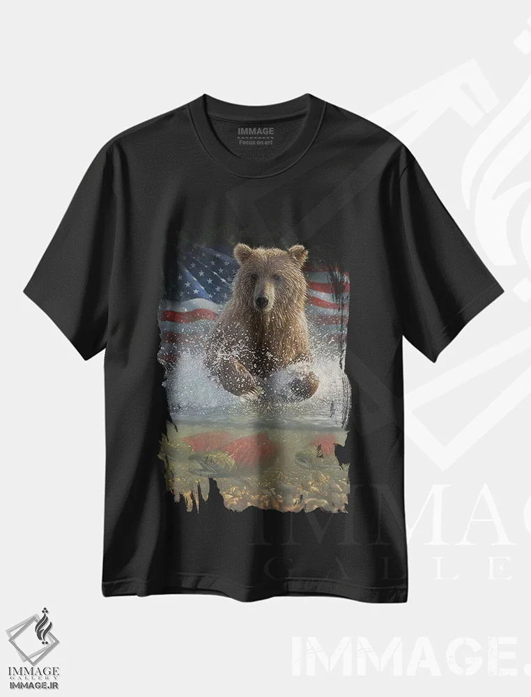 خرس قهوه ای در حال ماهیگیری؛ تی شرت حیات وحش برای استایل ماجراجویانه