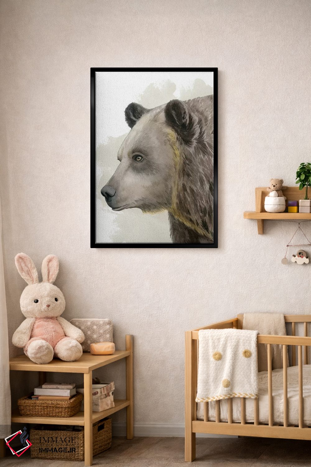 براساس پالت گرم اثر، قاب بلوط روشن (چوبی) پیشنهاد اول است و استخوانی ملایم مکمل. برای سفارشهای پروژهای با ابعاد و قابهای اختصاصی با ایماژ در تماس باشید.