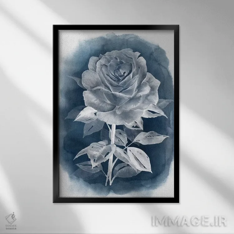 براساس پالت سرد اثر، قاب سفید مات (فریم باریک) پیشنهاد اول است و نقرهای برسخورده (متالیک) مکمل. برای سفارشهای پروژهای با ابعاد و قابهای اختصاصی با ایماژ در تماس باشید.