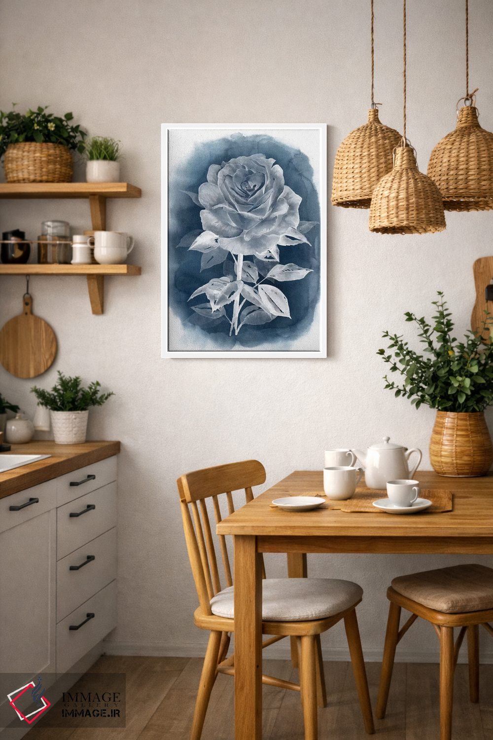این اثر با عنوان «رز شبح ۳» اثرِ «گریس پاپ» در کنار چوب و پارچههای روشن، عالی مینشیند؛ برای فضای غذاخوری انتخابی خوشسلیقه است. حضورش آرام است، اما بیاثر نیست.