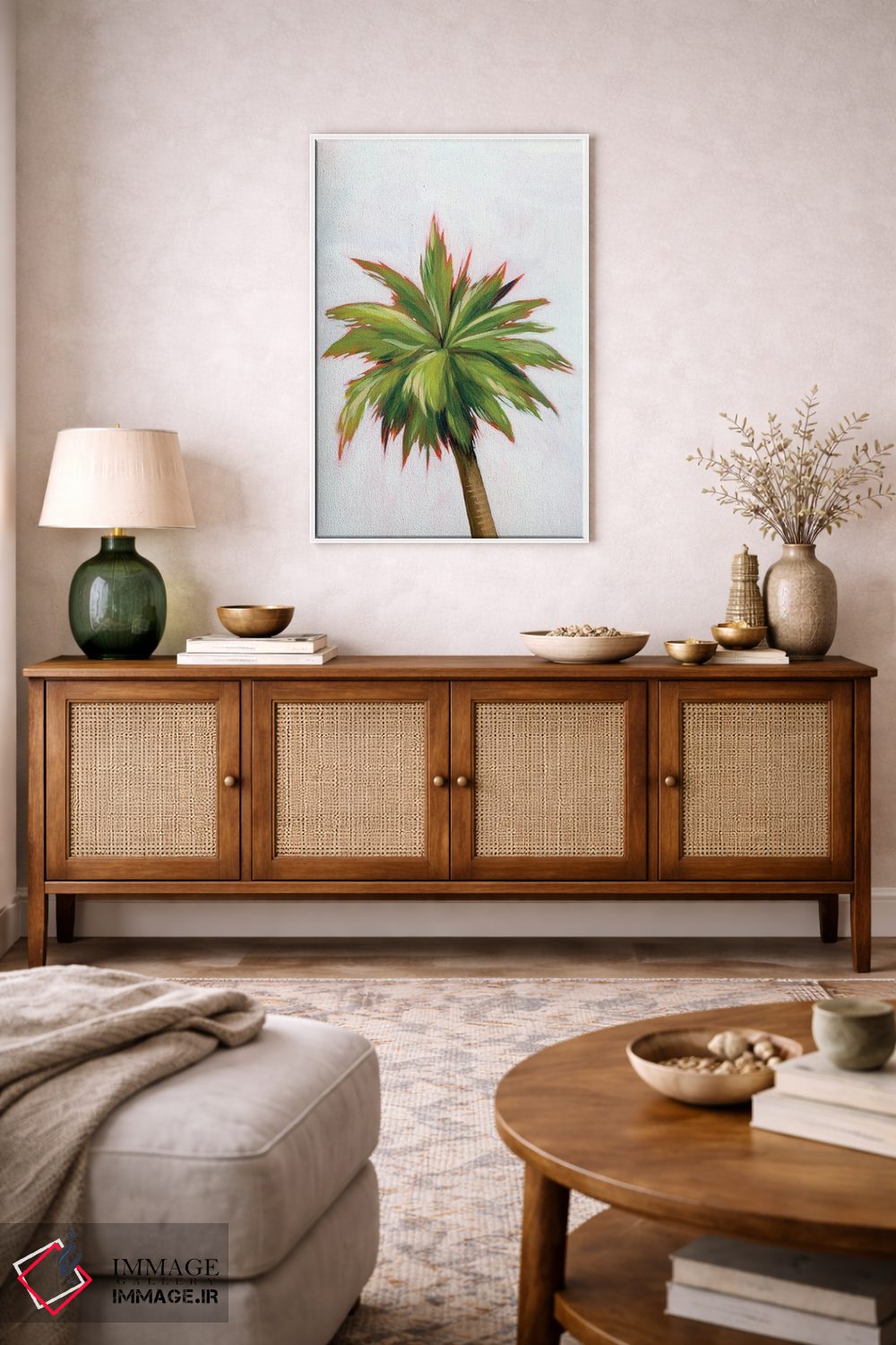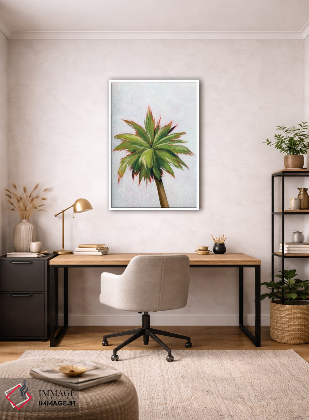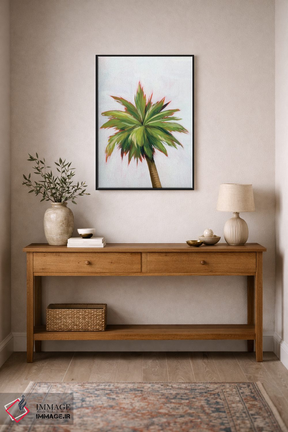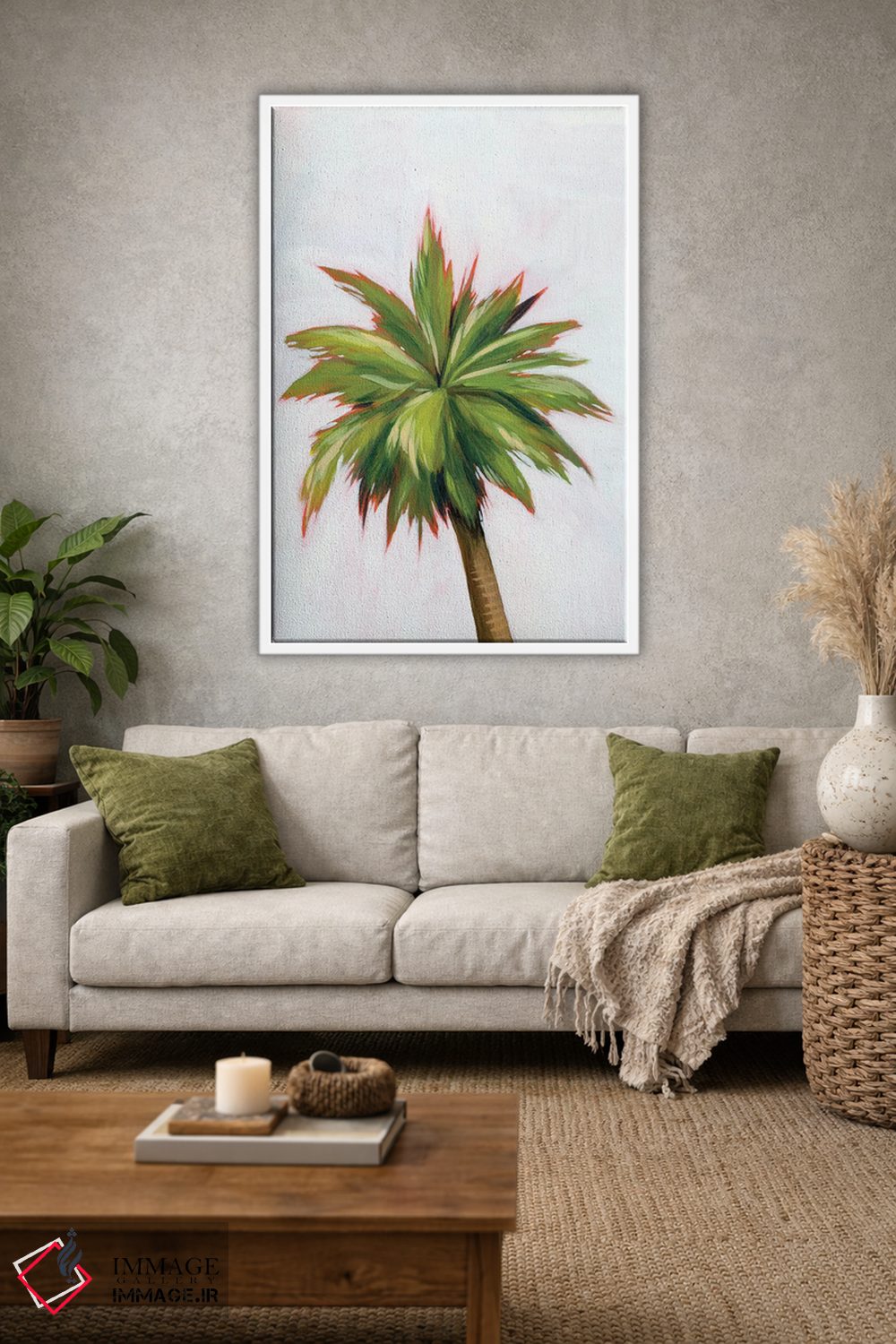 برای اتاق خواب و نشیمنهای آرام، «درخشش نخل ۱» اثرِ «گریس پاپ» تعادل رنگیِ لطیفی به چیدمان میدهد؛ برای هدیه دادن انتخابی خوشسلیقه است. اگر دنبال «زیباییِ بیصدا» هستید، این اثر همان حس را دارد.