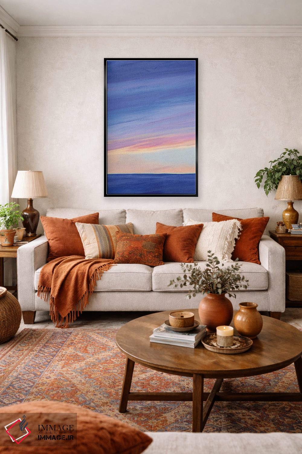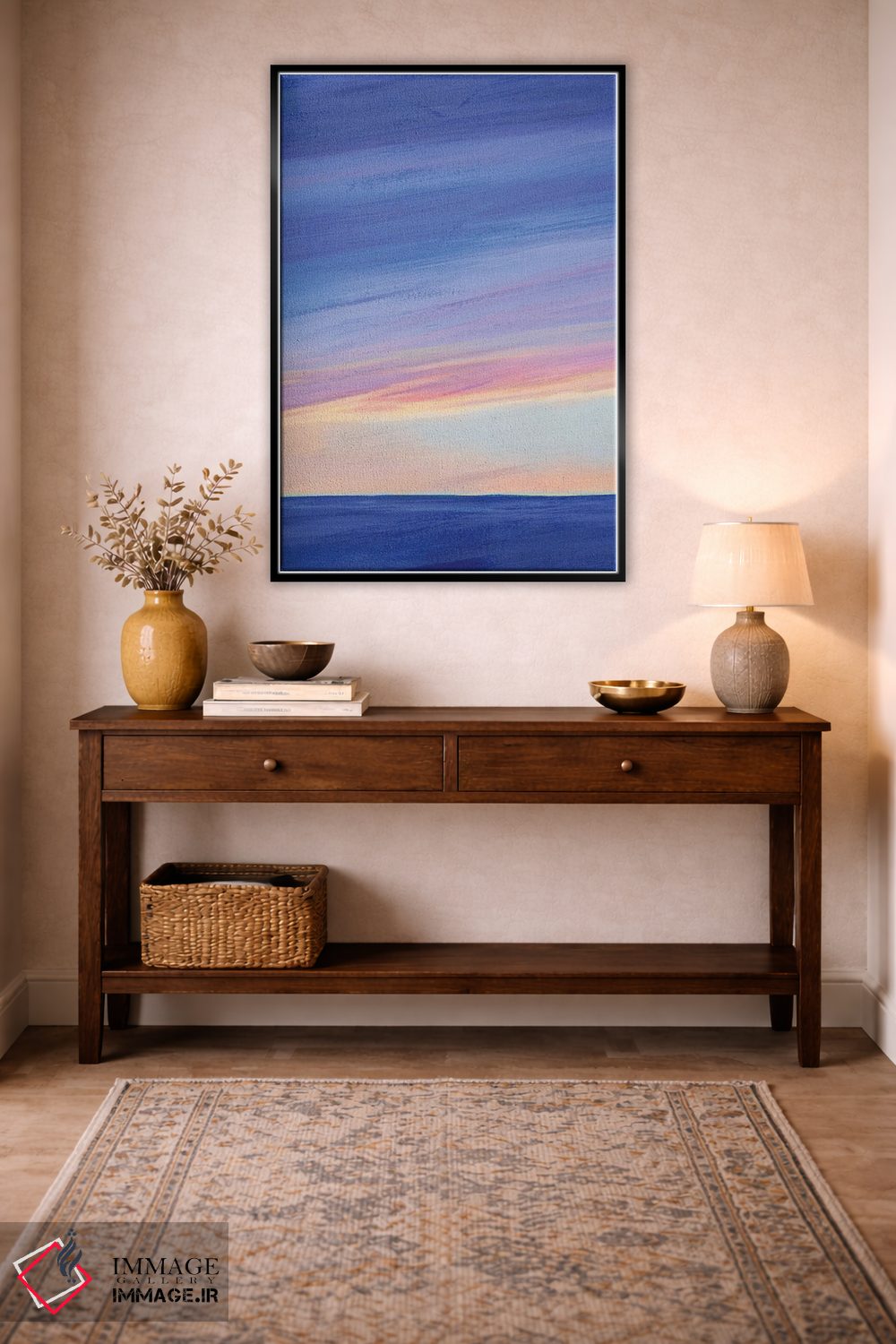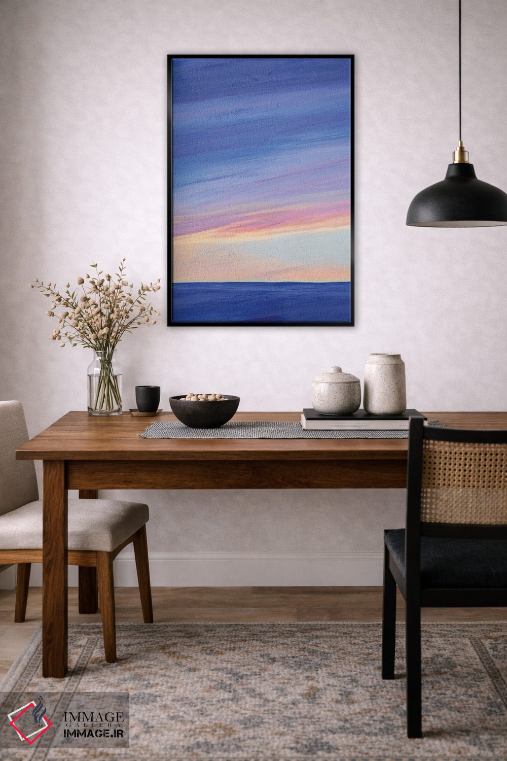 تابلو انتزاعی پرتو خورشید در گرگ و میش I اثر گریس پاپ - نمای روبه‌رو روی دیوار