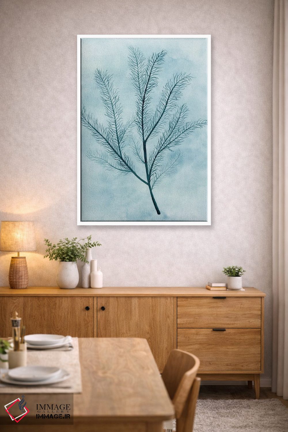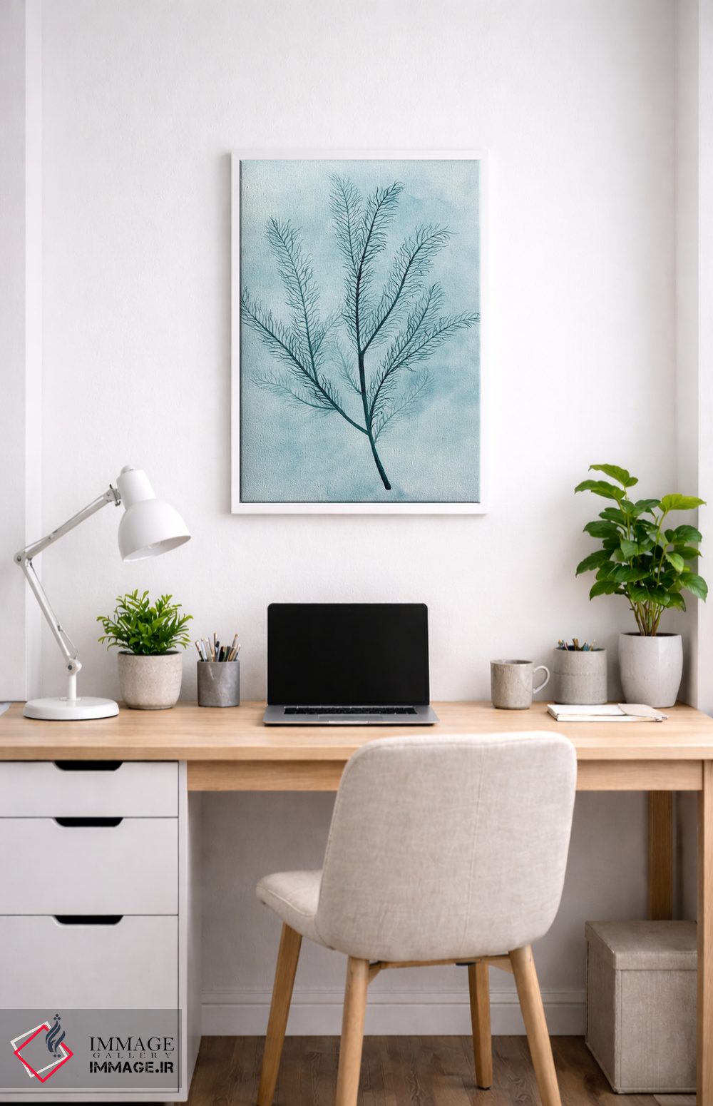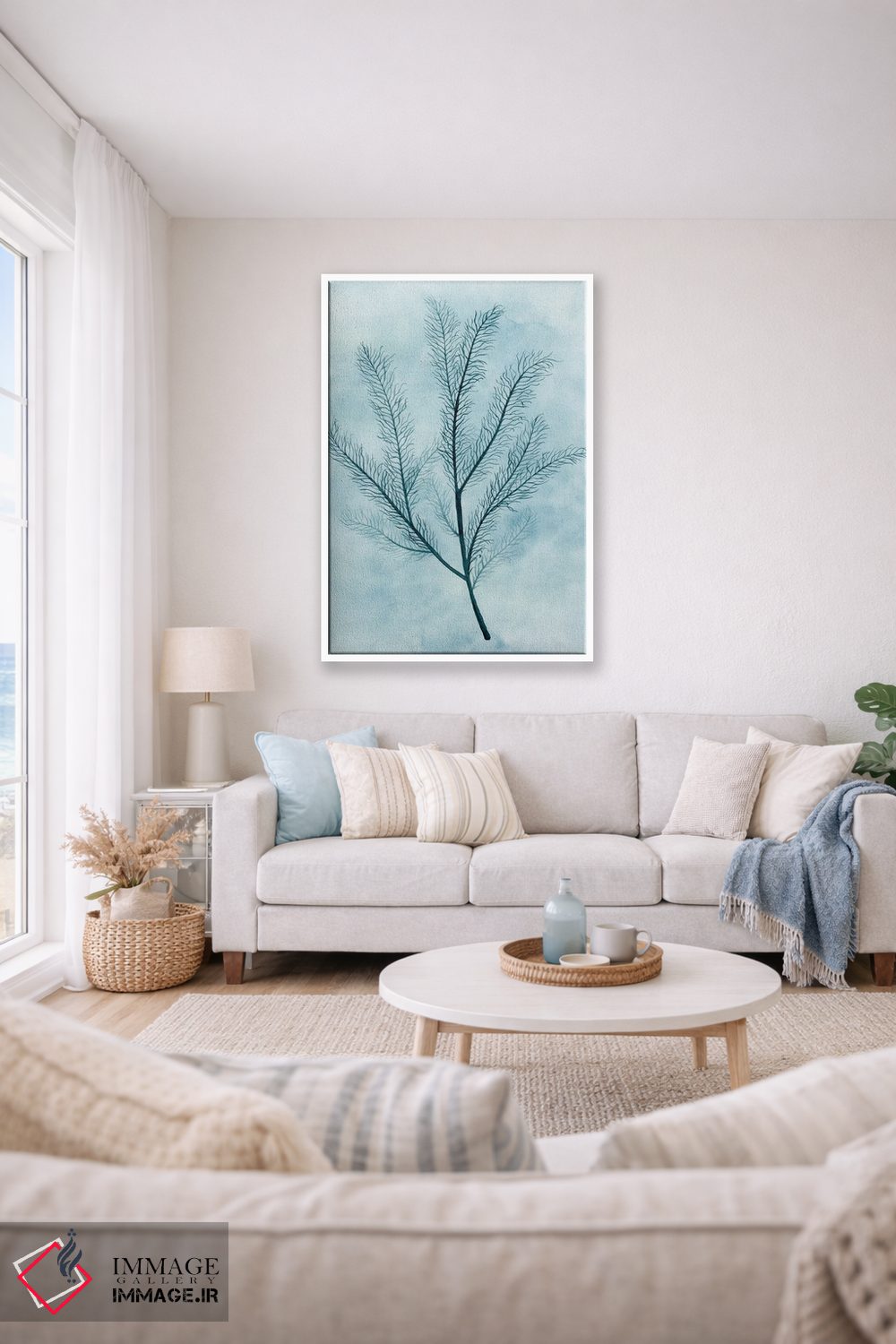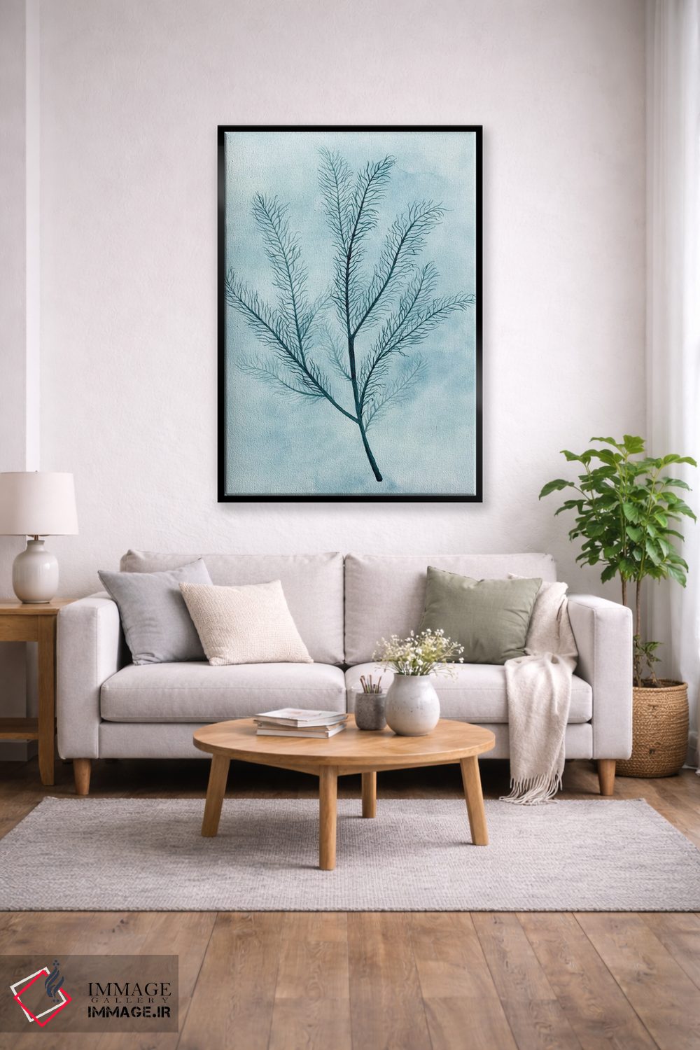 براساس پالت سرد اثر، قاب سفید مات (فریم باریک) پیشنهاد اول است و نقرهای برسخورده (متالیک) مکمل. برای سفارشهای پروژهای با ابعاد و قابهای اختصاصی با ایماژ در تماس باشید.