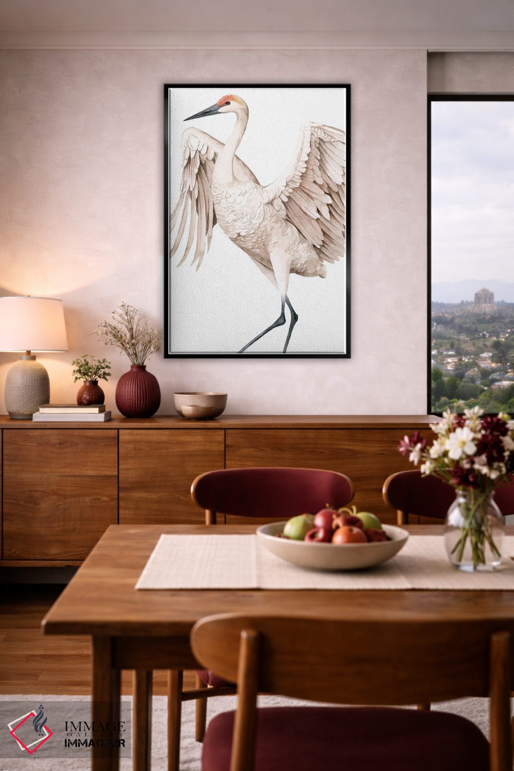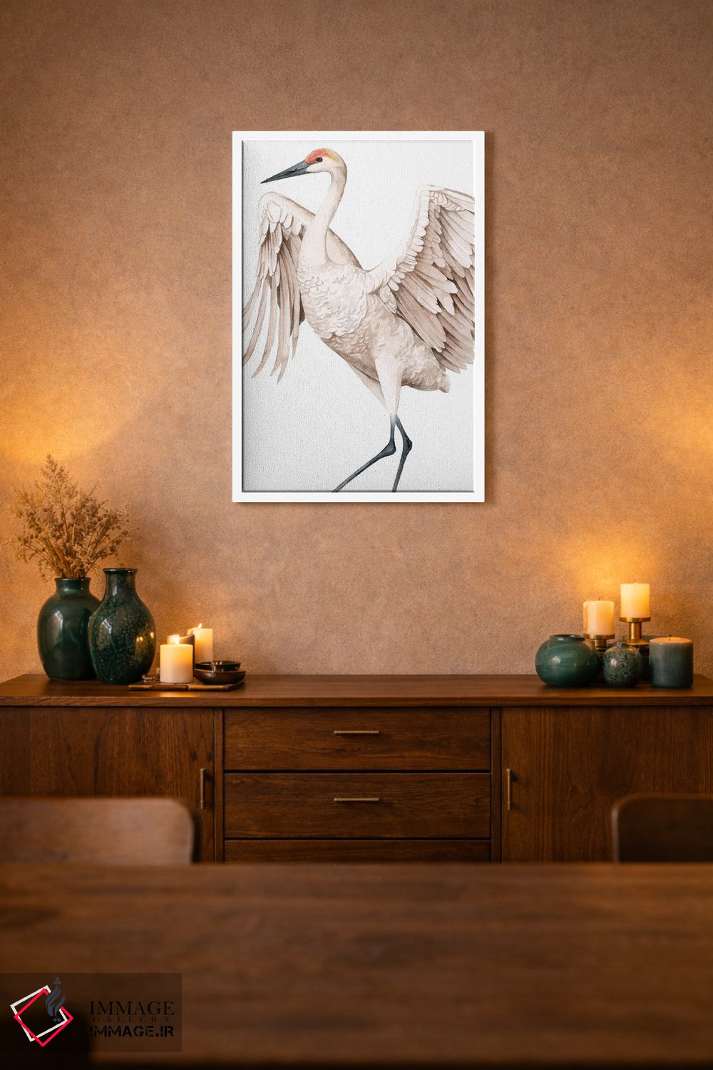 برای اتاقی که به یک عنصر دوستداشتنی نیاز دارد، «درنای فریادزن II (نوعی پرنده)» اثرِ «گریس پاپ» در کنار رنگهای خنثی، تضاد دلچسبی میسازد؛ برای اتاق بازی یا گوشهٔ مطالعه انتخابی خوشسلیقه است. برای دیوار گالریوار هم گزینهٔ خوبیست.