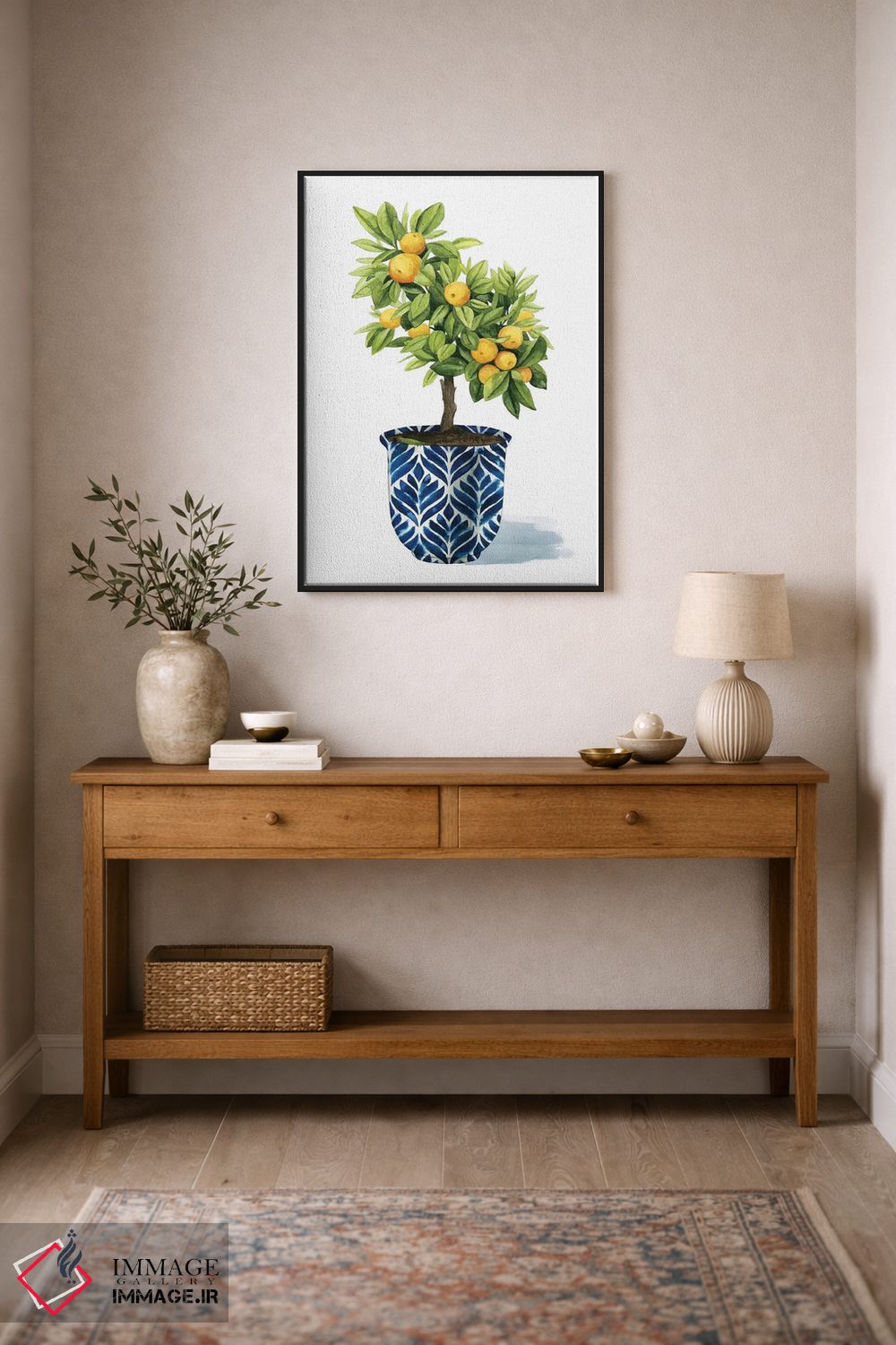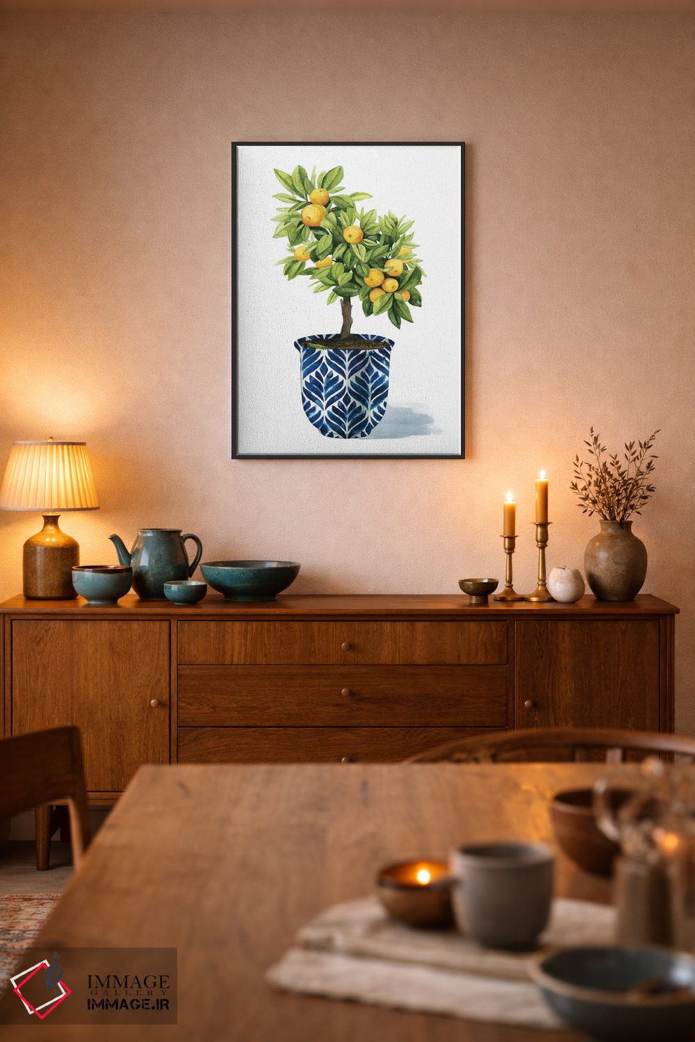 براساس پالت ترکیبی اثر، قاب تیک گرم (چوبی) پیشنهاد اول است و مشکی مات (فریم متوسط) مکمل. برای سفارشهای پروژهای با ابعاد و قابهای اختصاصی با ایماژ در تماس باشید.