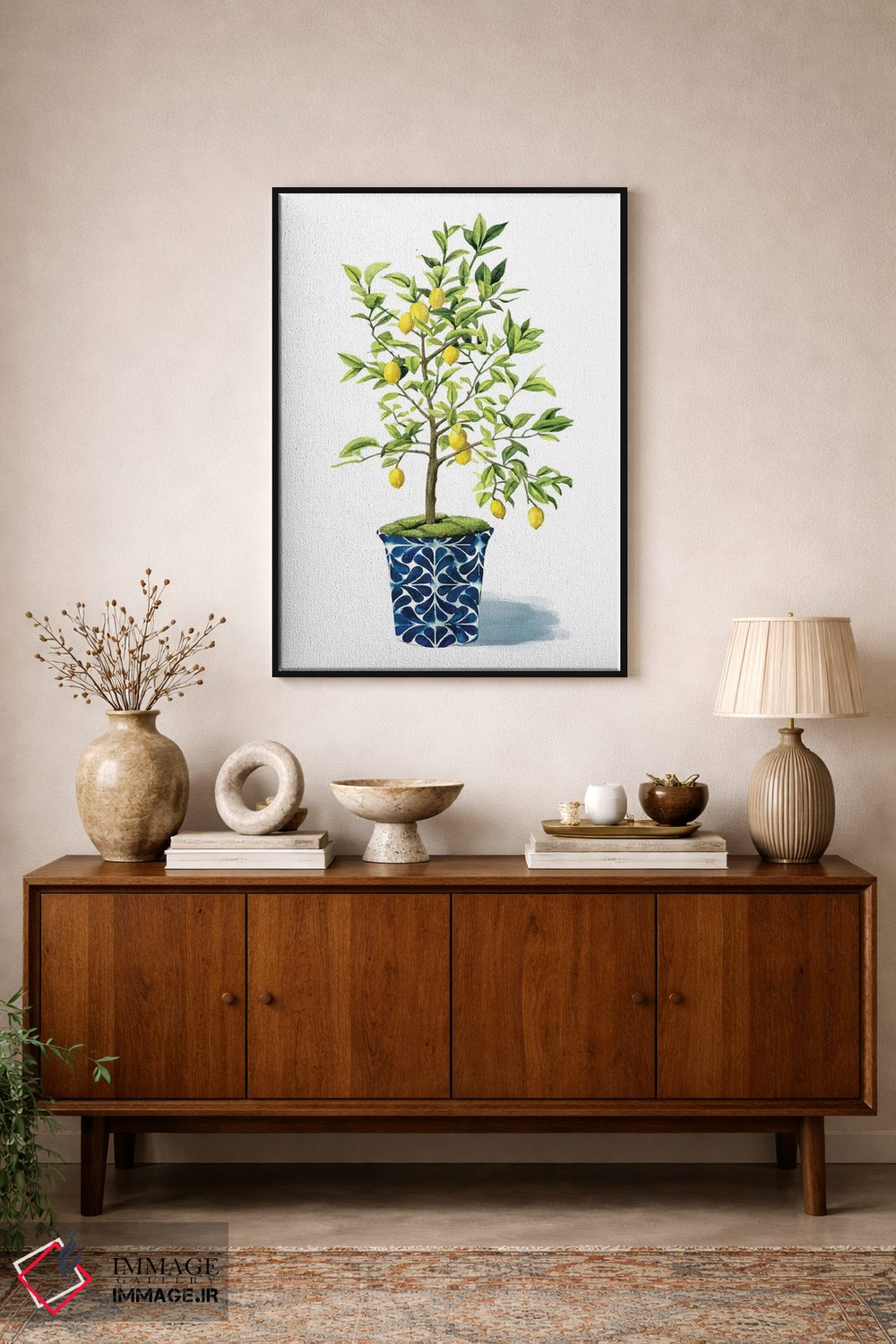براساس پالت ترکیبی اثر، قاب تیک گرم (چوبی) پیشنهاد اول است و مشکی مات (فریم متوسط) مکمل. برای سفارشهای پروژهای با ابعاد و قابهای اختصاصی با ایماژ در تماس باشید.