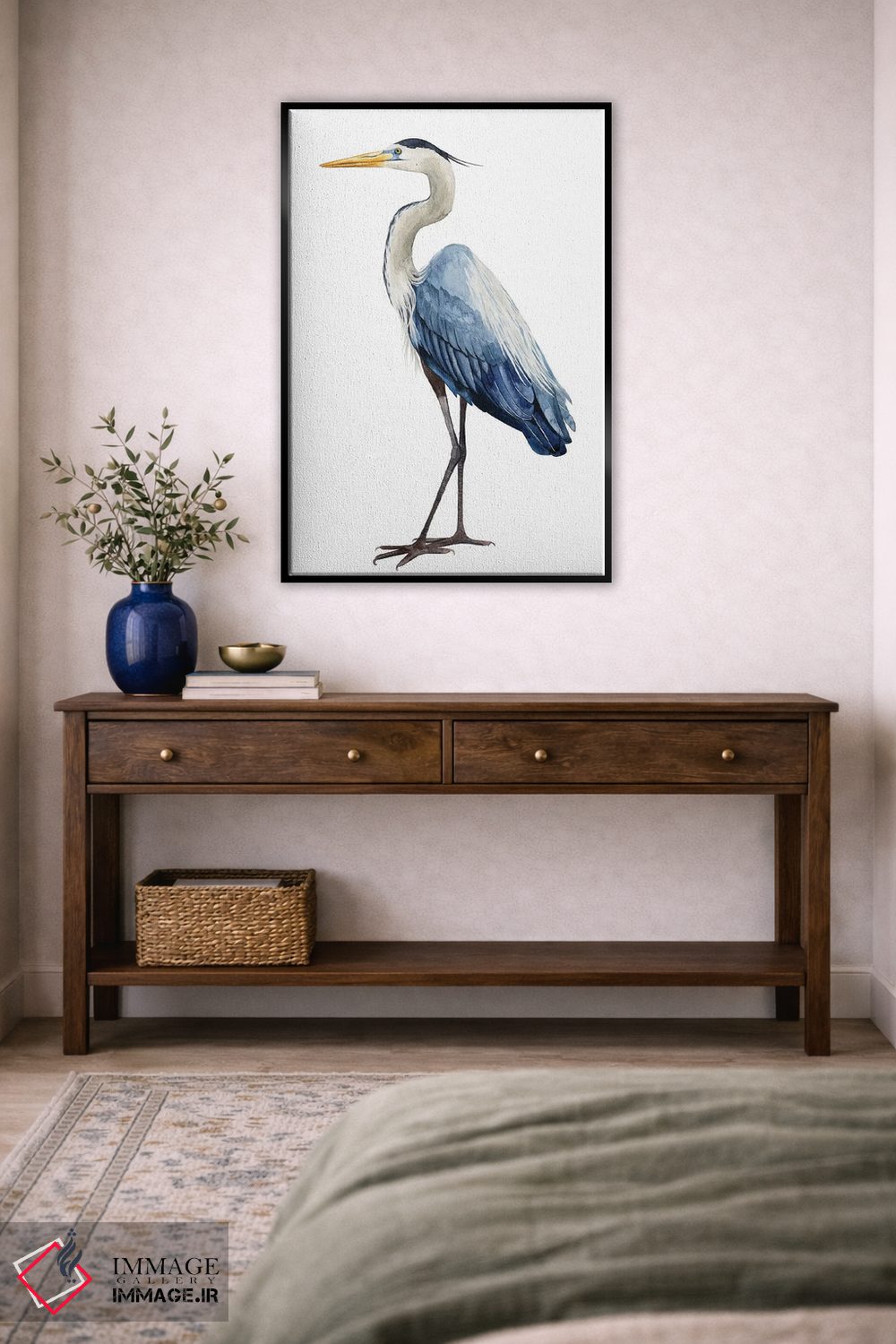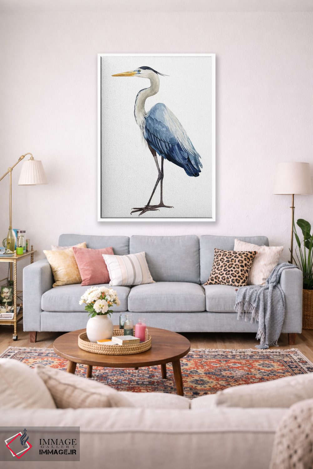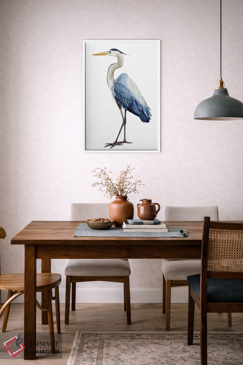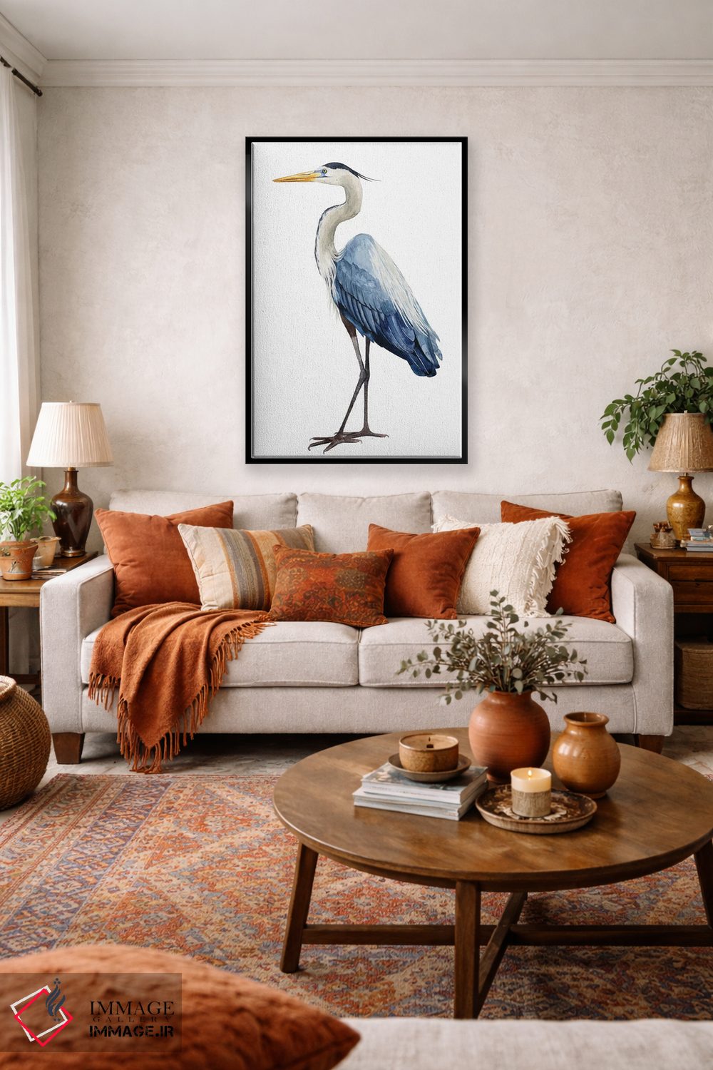 «حواصیل دریایی I» اثرِ «گریس پاپ» میتواند به دیوار، انرژیِ نرم و زنده بدهد؛ برای فضاهای روستیک یا بوهو پیشنهاد میشود. هر بار نگاهش میکنید، یک جزئیات تازه به چشم میآید.