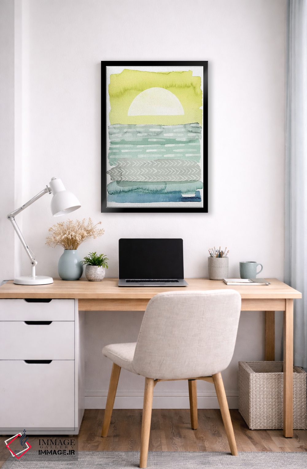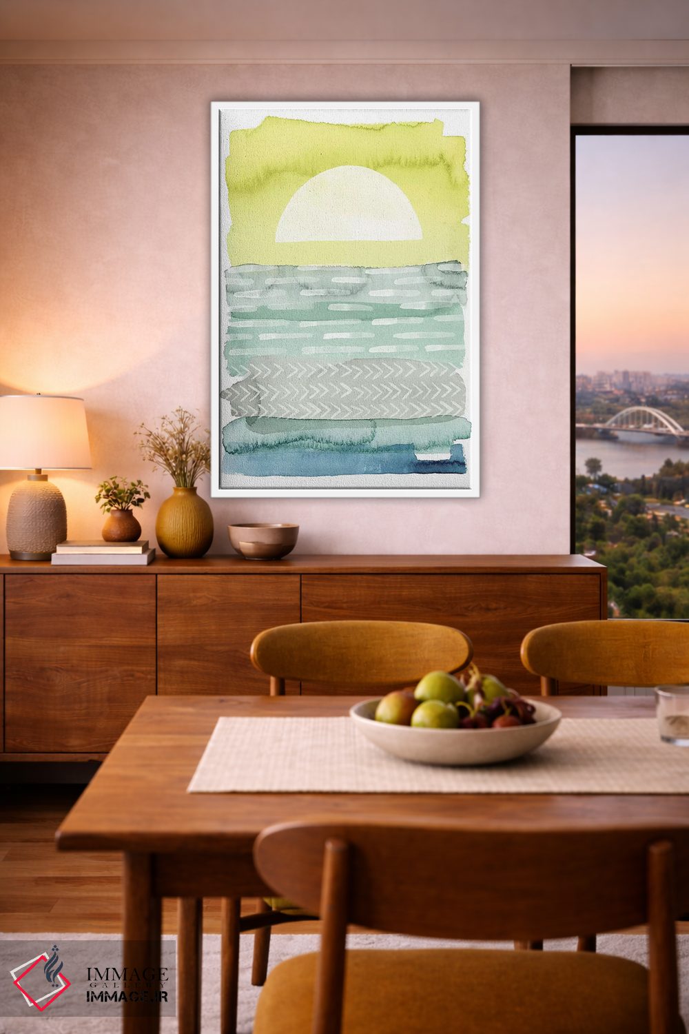 در «دریای هنگام طلوع I» اثرِ «گریس پاپ»، رنگ و فرم نقش اصلی را دارند؛ انتخابی خوب برای فضاهای امروزی و دیوارهای مینیمال.