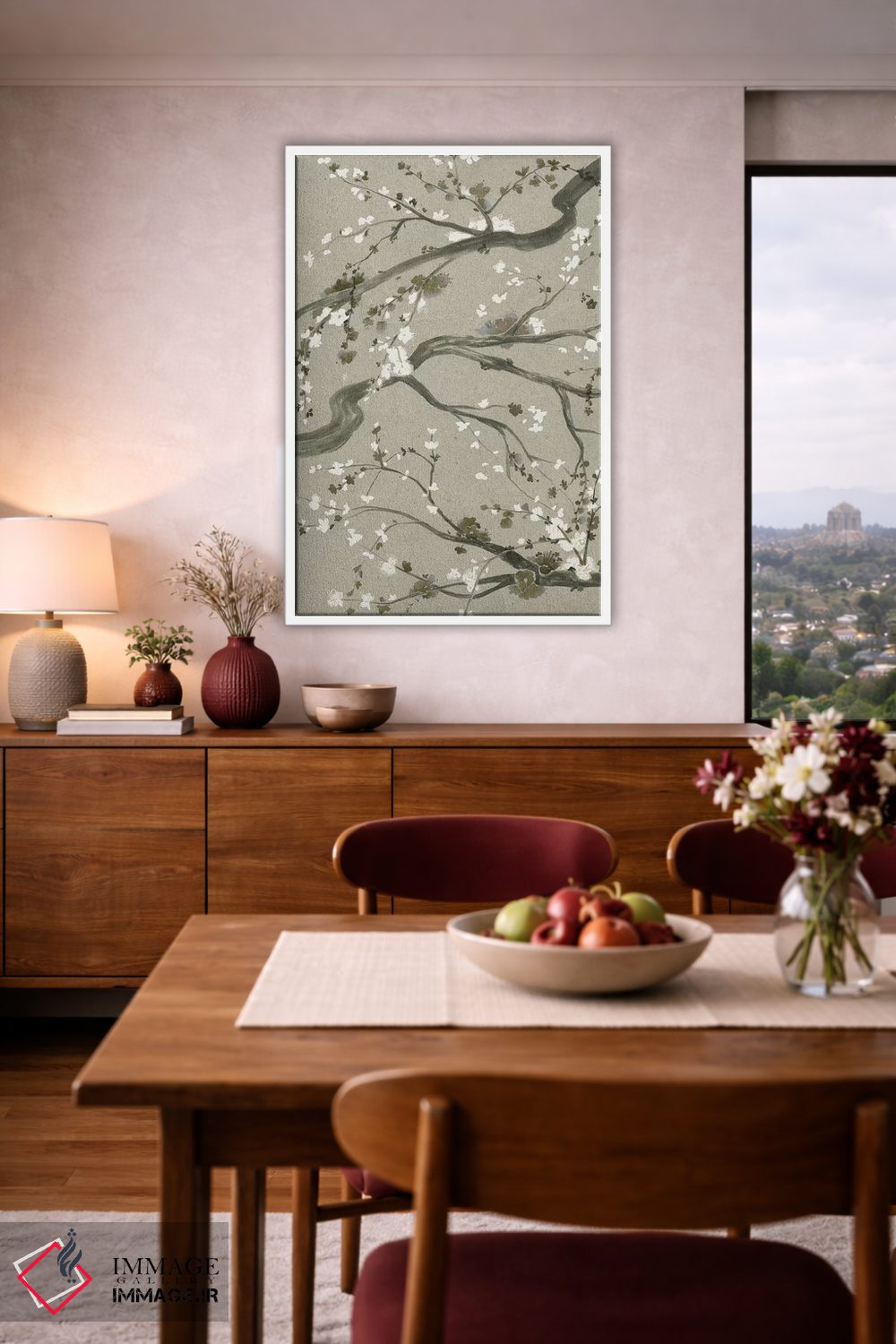 برای اتاق خواب و نشیمنهای آرام، «شکوفههای گیلاس خنثی دوم» اثرِ «گریس پاپ» جزئیات نزدیک را چشمنواز نشان میدهد؛ برای خانههایی با نور طبیعی انتخابی خوشسلیقه است. همیشه بهروز میماند و با فصلها خوب کنار میآید.