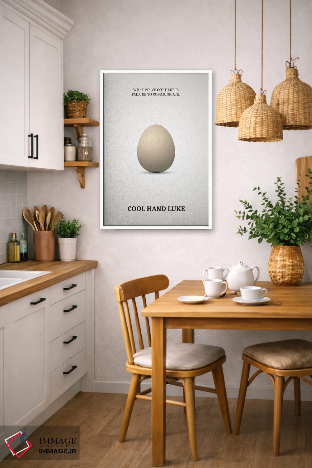 براساس پالت خنثی اثر، قاب بلوط روشن (چوبی) پیشنهاد اول است و استخوانی ملایم مکمل. برای سفارشهای پروژهای با ابعاد و قابهای اختصاصی با ایماژ در تماس باشید.