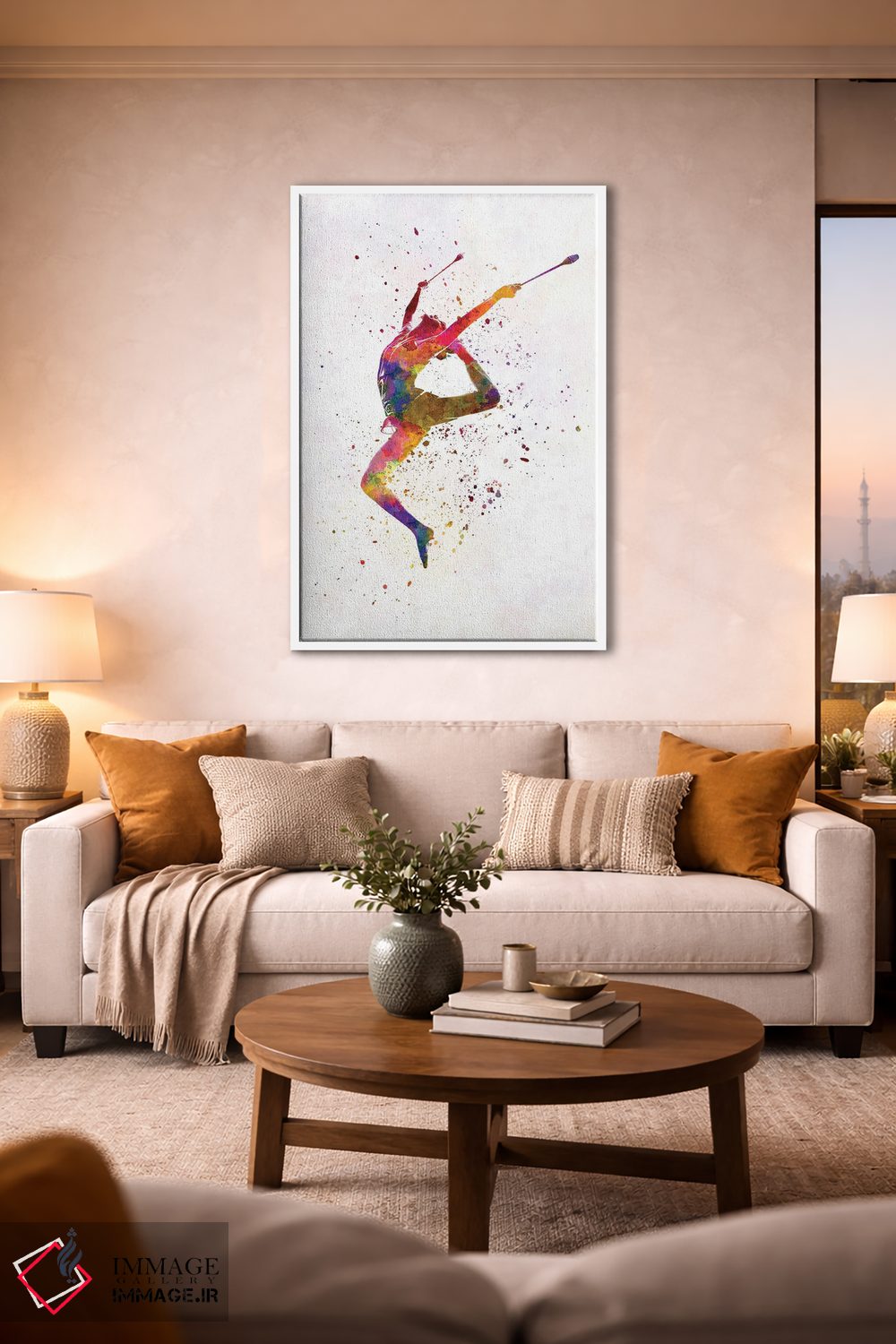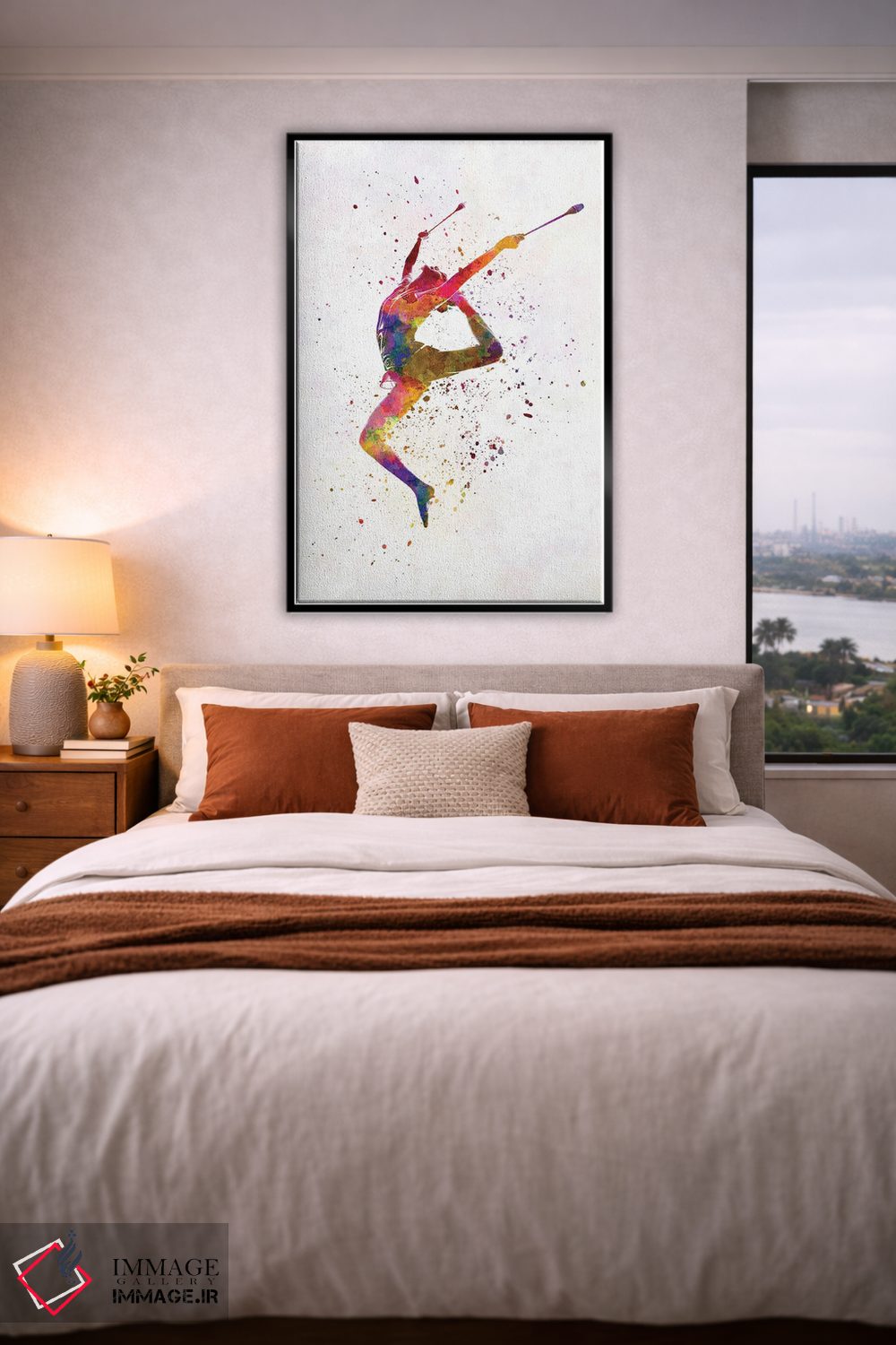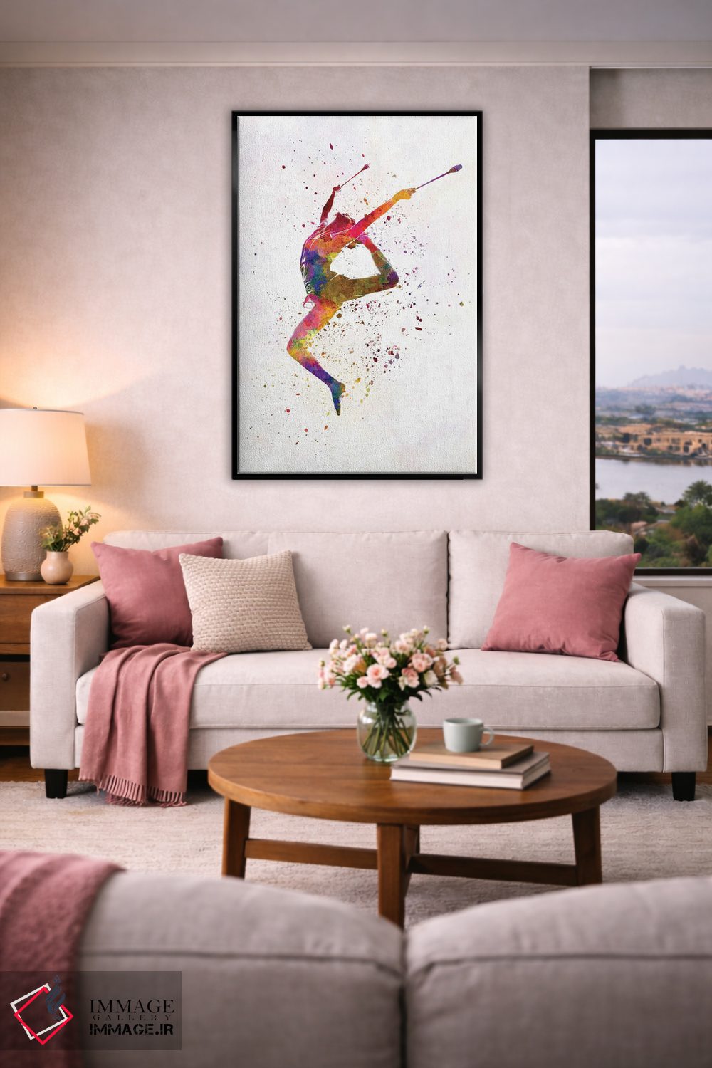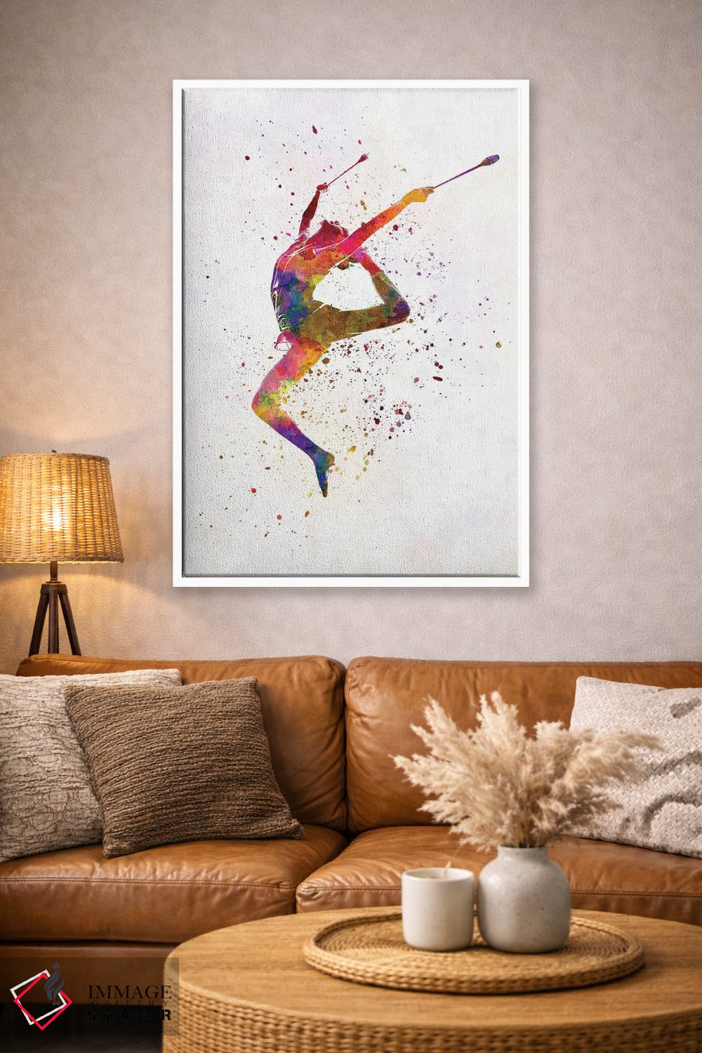 تابلو دکوراتیو ژیمناستیک ریتمیک به سبک آبرنگ شماره هفده اثر پل رومر - نمای روبه‌رو روی دیوار