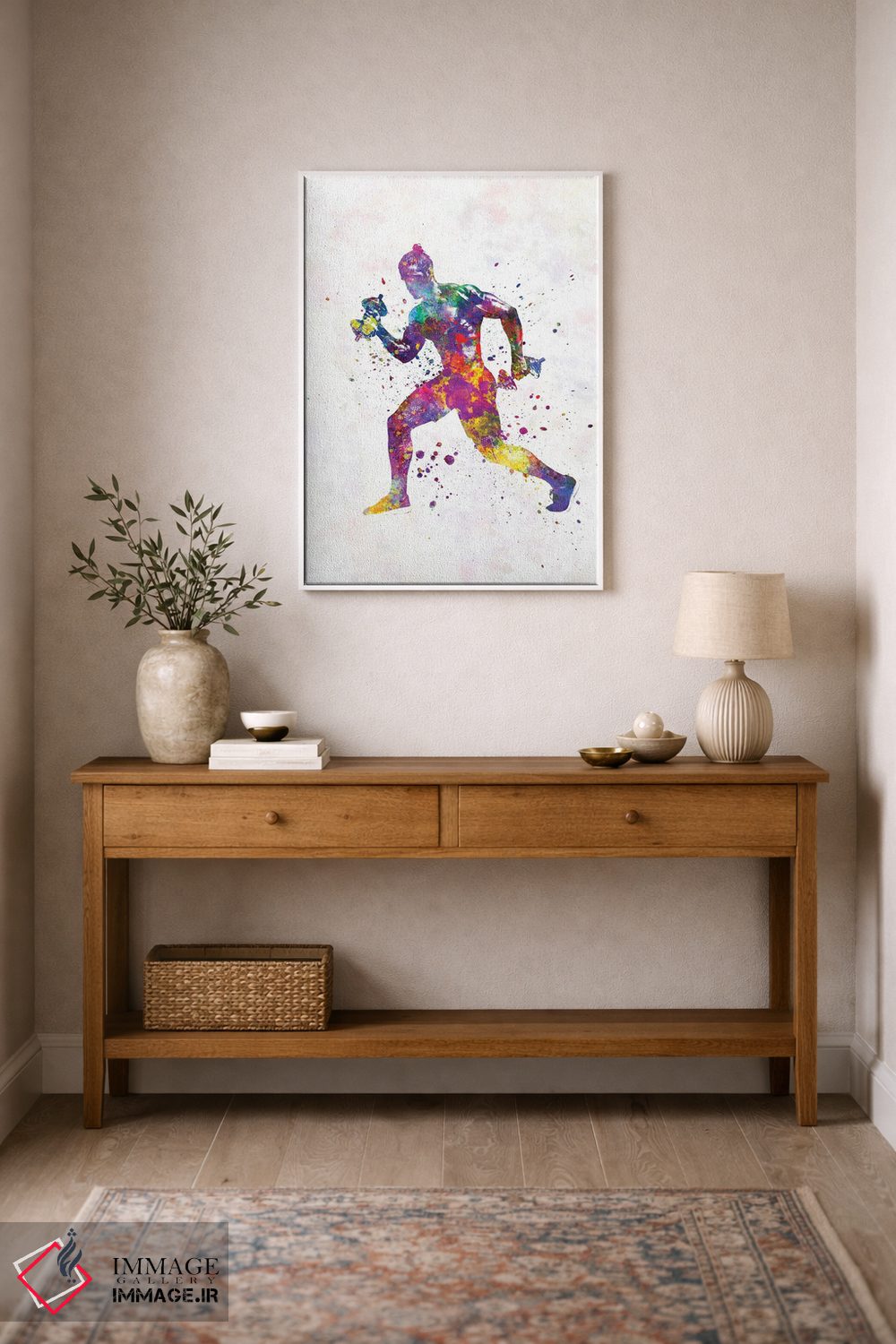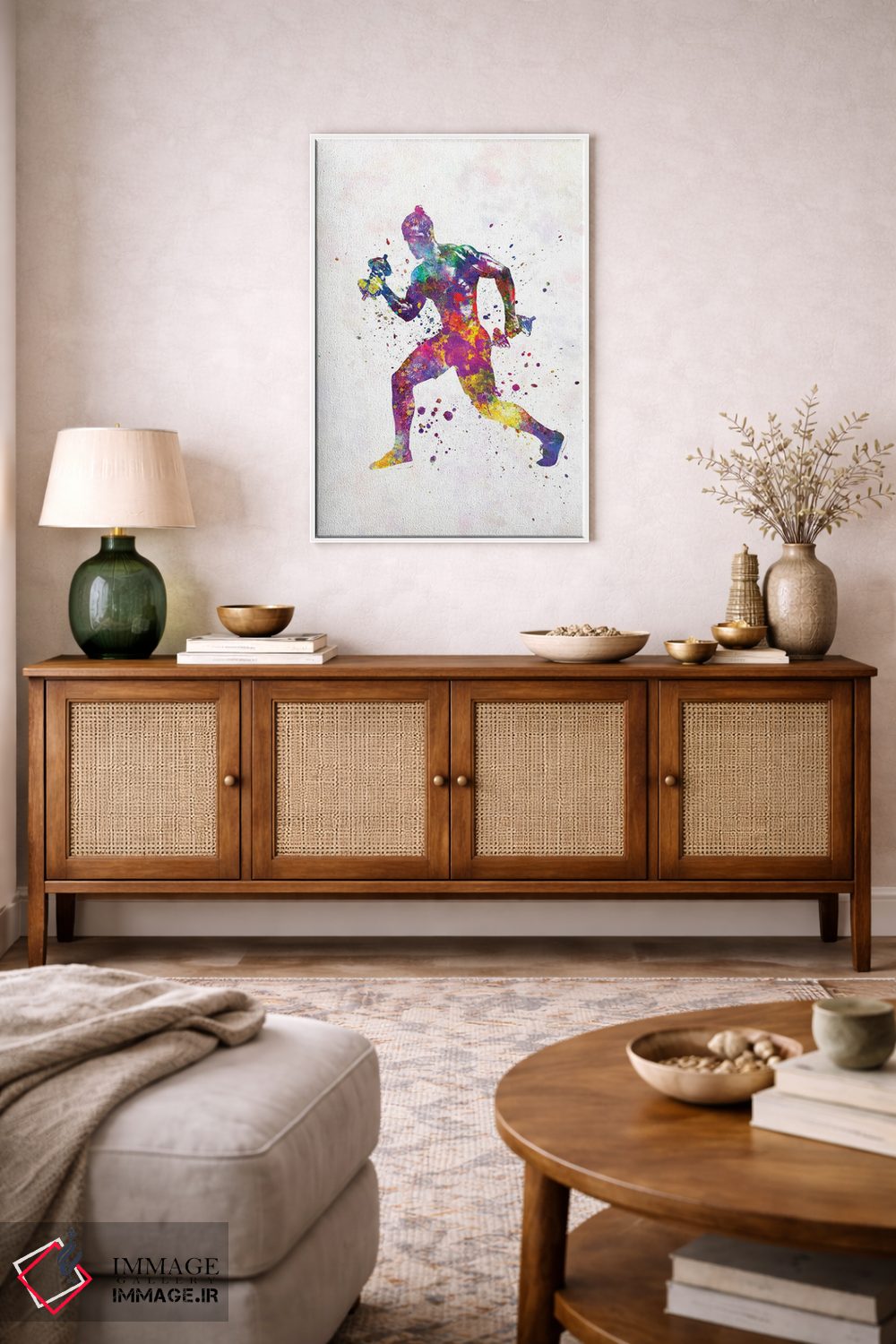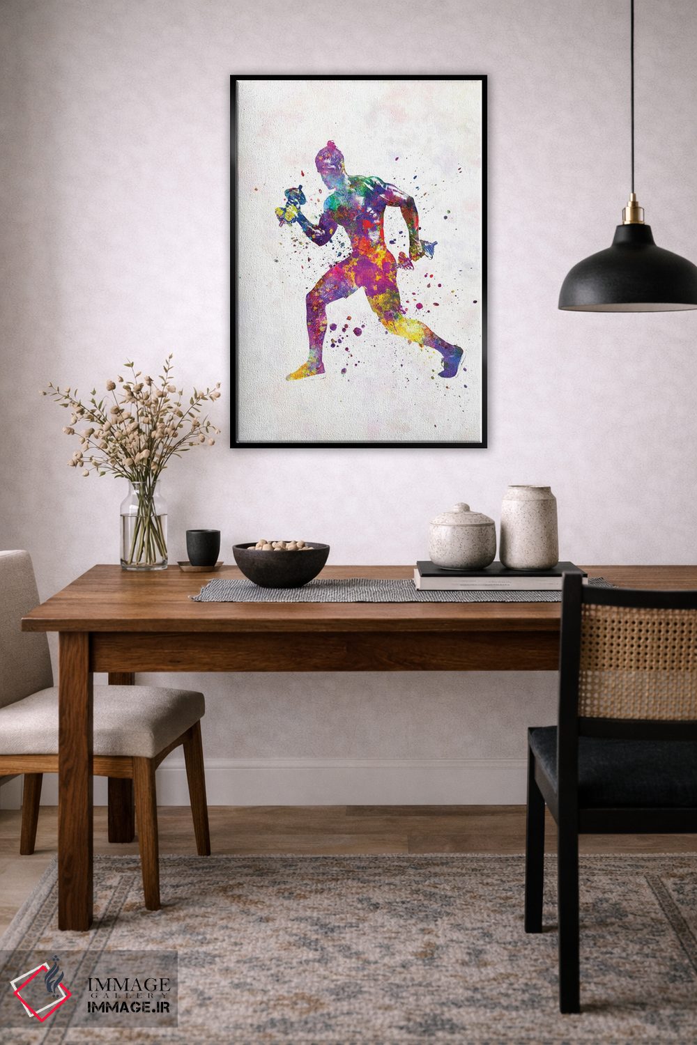 اگر اهل «کم اما درست» هستید، «تمرین ژیمناستیک در آبرنگ» اثرِ «پل رومر» ریتم فضا را منظم میکند؛ برای فضاهایی که میخواهید آرام اما جدی دیده شوند پیشنهاد میشود. در کنار گیاهان آپارتمانی هم جلوهٔ لطیفی پیدا میکند.