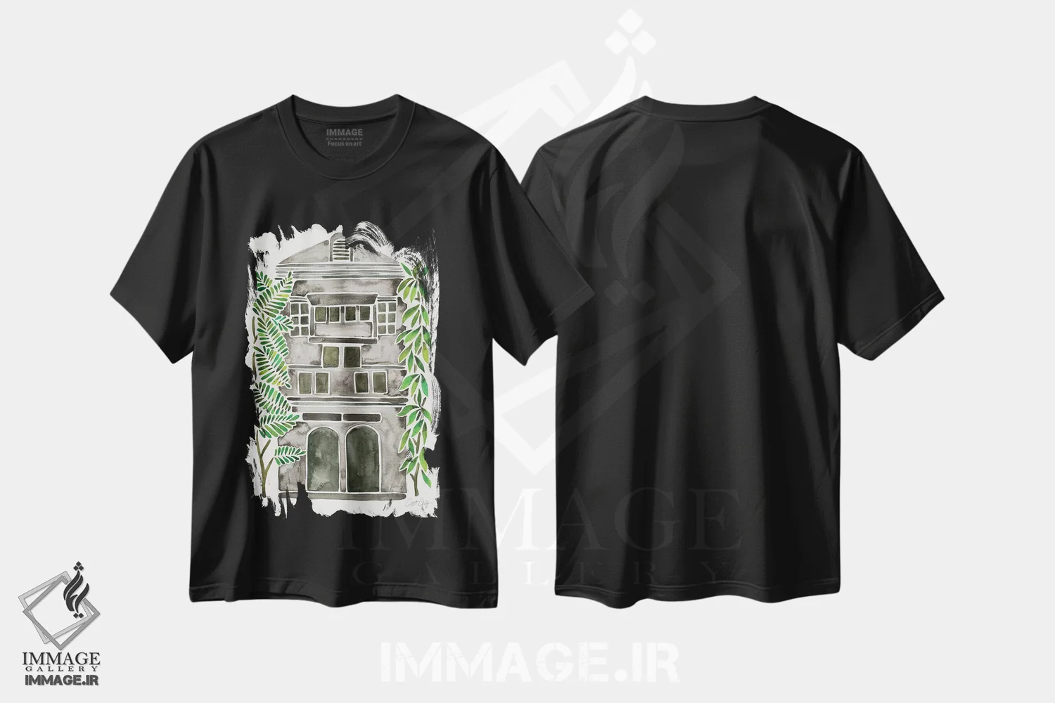تی شرت «خانه سیاه» با طرح گیاهان تزئینی