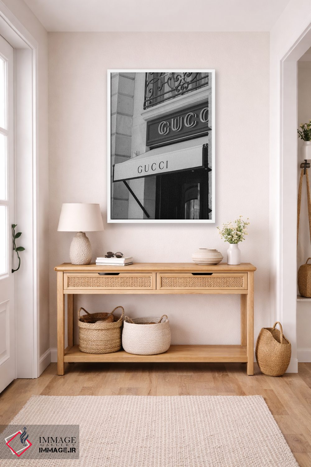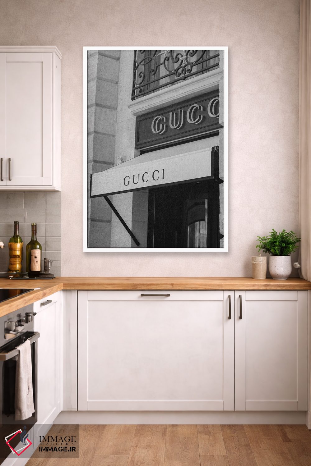 این تابلو با عنوان «گوچی (برند مد)» اثرِ «پل رومر»، کنار آینه و رختکن یا اتاق لباس عالی مینشیند.