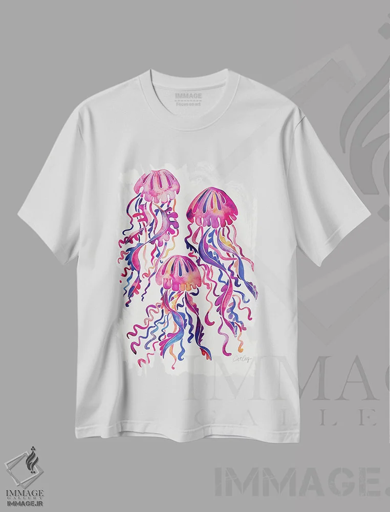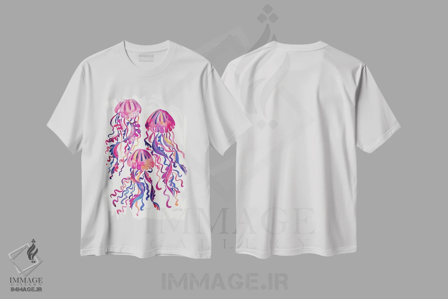 تیشرت سفید طرح دار سرخابی، تزئینی اثر کت کوکیلت | immage.ir