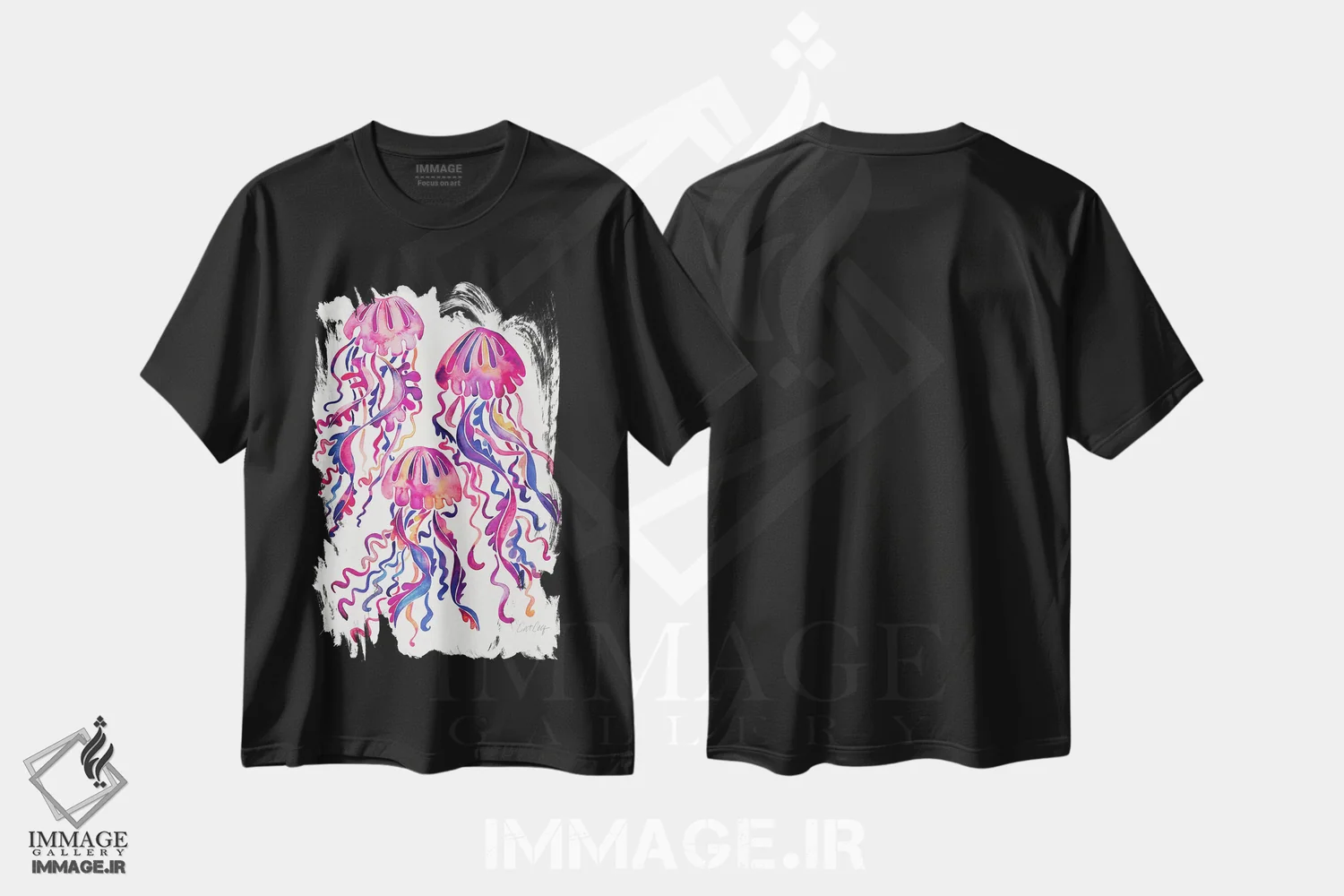 تیشرت مشکی طرح دار سرخابی، تزئینی اثر کت کوکیلت | فروشگاه ایماژ