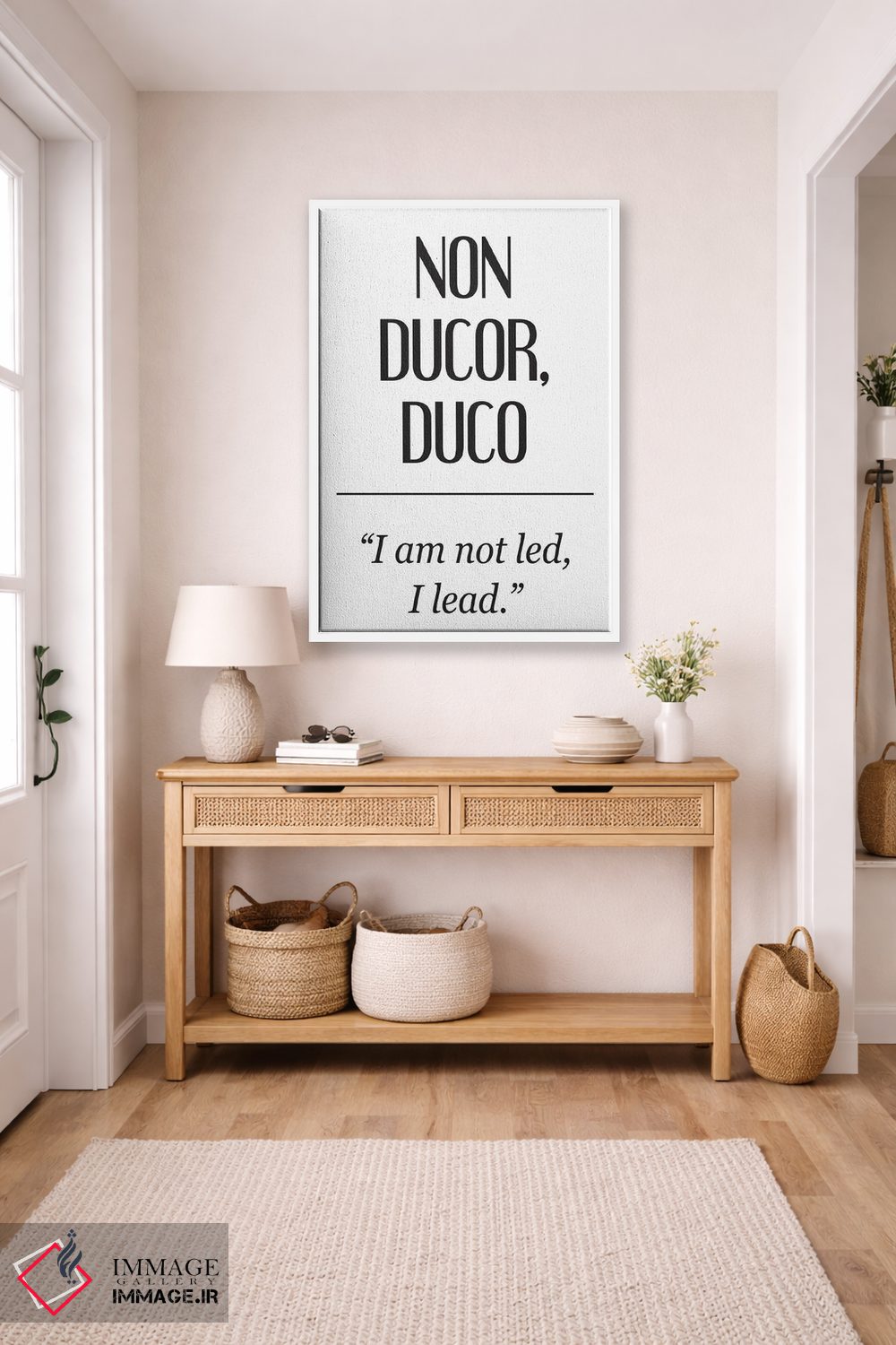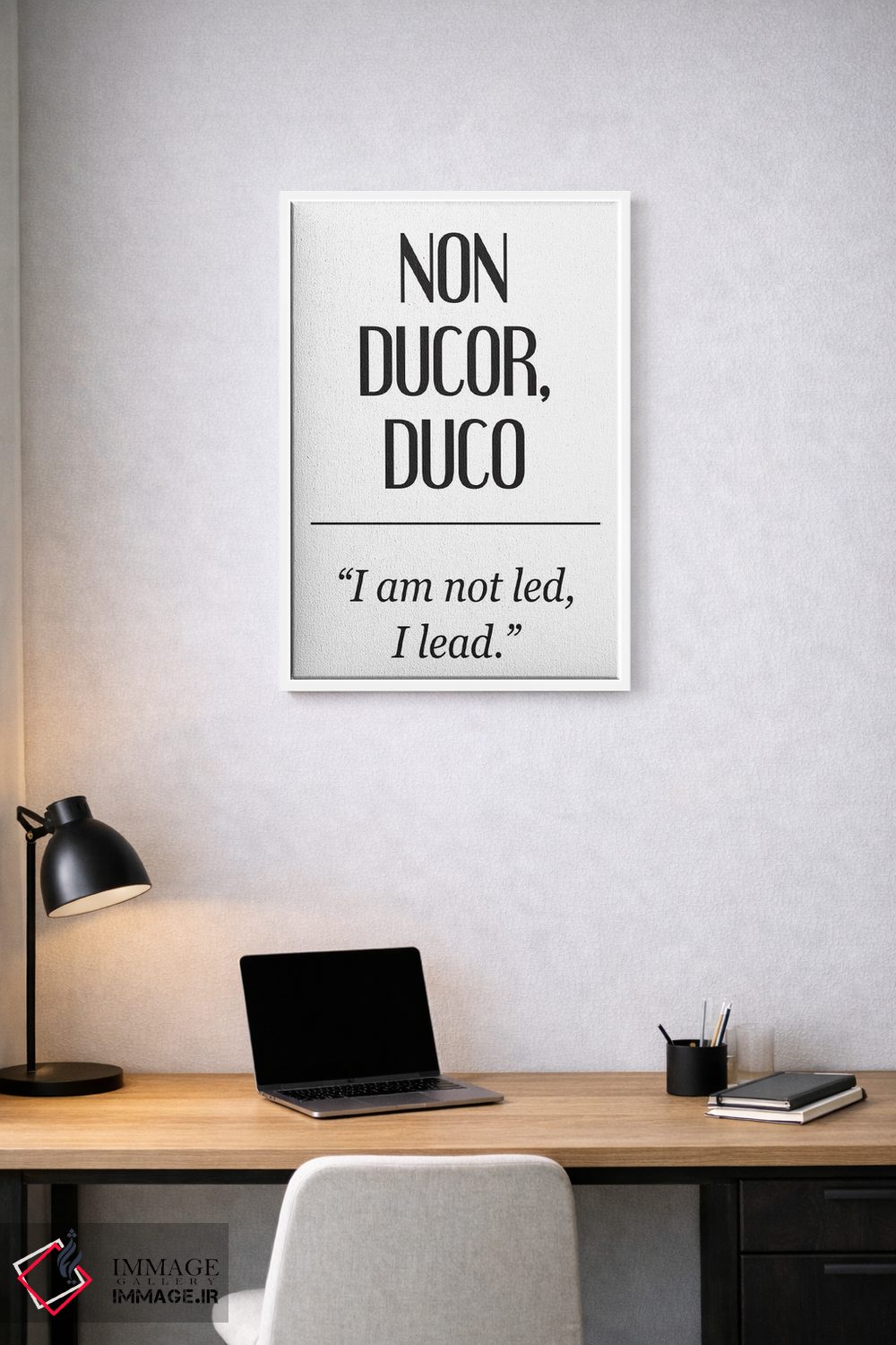«معانی لاتین—نون دوکور (من رهبری نمیشوم)» اثرِ «پیکسی پیپر (برند و استودیو چاپ)» برای هدیهدادن هم گزینهی جذابیست؛ چون هم شخصیسازی معنایی دارد هم دکورپذیر است.