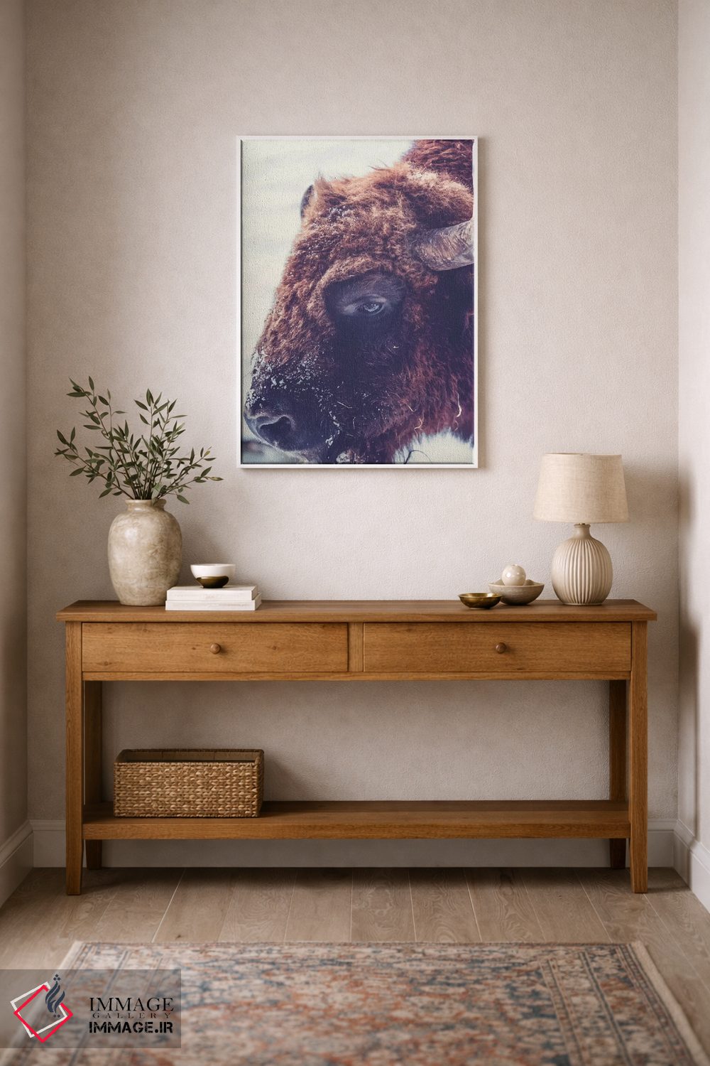 بوم گالری ایماژ نسخهی چیدماناتیوِ گالریپسند از یک اثر هنری است؛ روی کنواس بدون اسید با بافت ظریف و یکنواخت با چاپ هنریِ دقیق (Giclée) برای گذارهای نرمتر و وضوح بالاتر و جوهرهای آرشیوی Epson UltraChrome HDR برای بازنمایی بهتر تونهای حساس، در گذارهای رنگی، لطافت بیشتری حس میشود. اسمبل تمیز و آمادهی نصب؛ کشیدگی استاندارد روی کلاف و یراق مناسب.