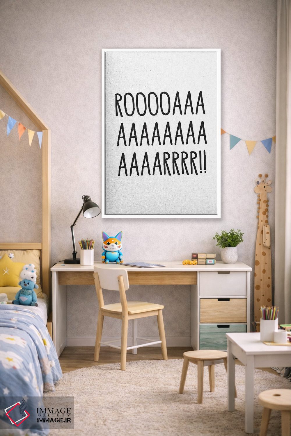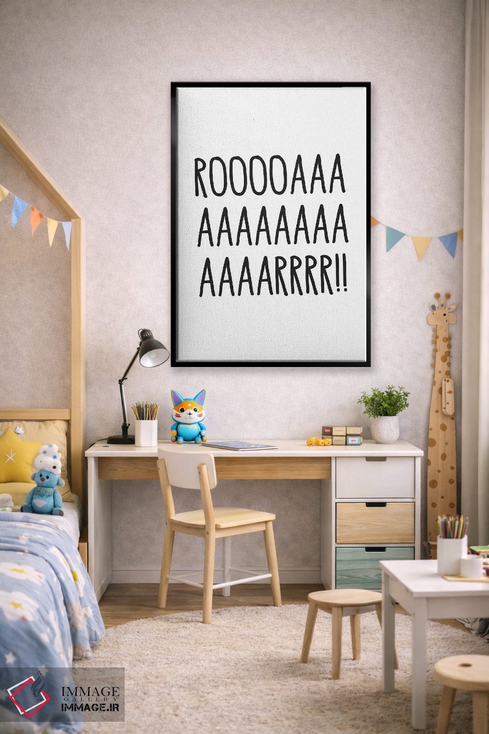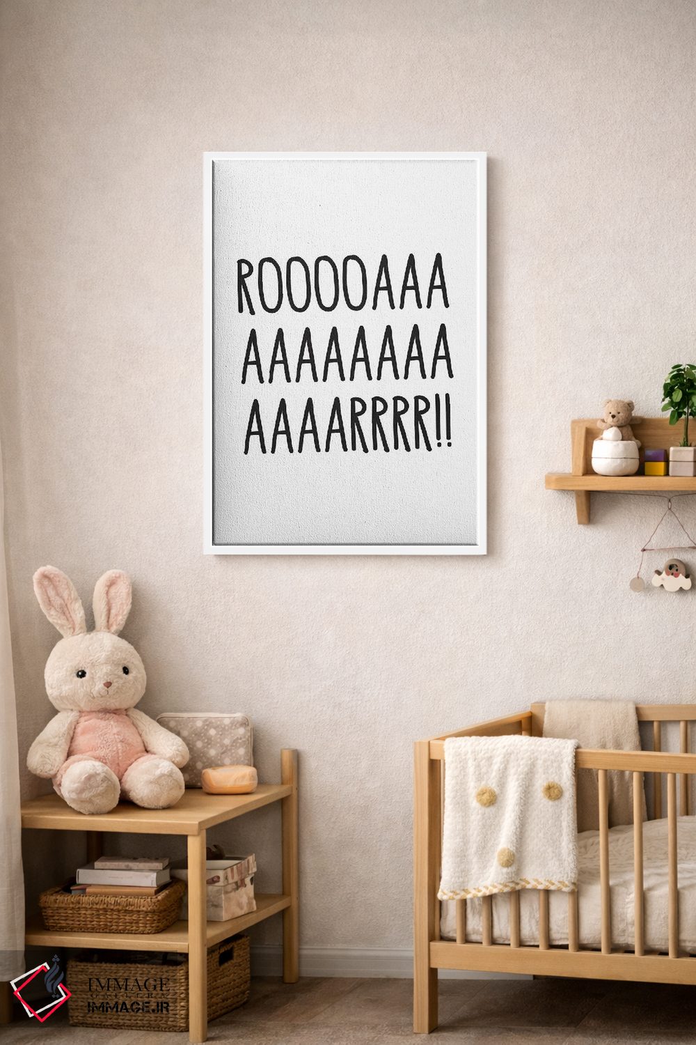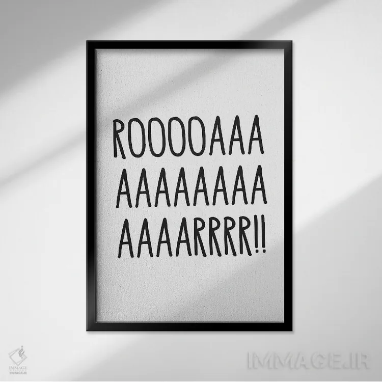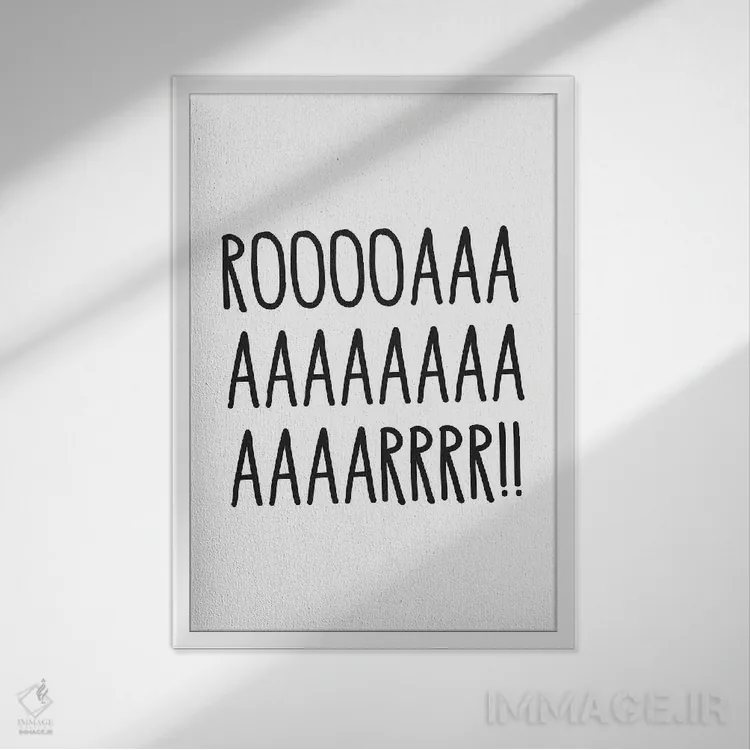 در «غرش (صدای حیوانات)» اثرِ «پیکسی پیپر (برند و استودیو چاپ)»، تاکید روی خوانایی و ریتم حروف است؛ مناسب برای فضاهای پررفتوآمد مثل راهرو و ورودی.