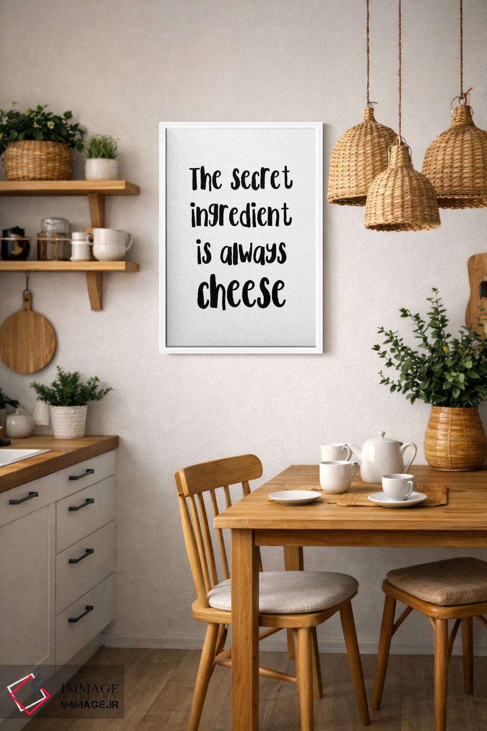 «عنصر مخفی همیشه پنیر است» اثرِ «پیکسی پیپر (برند و استودیو چاپ)» یک انتخاب خوشمزه برای آشپزخانه و فضای غذاخوری است.