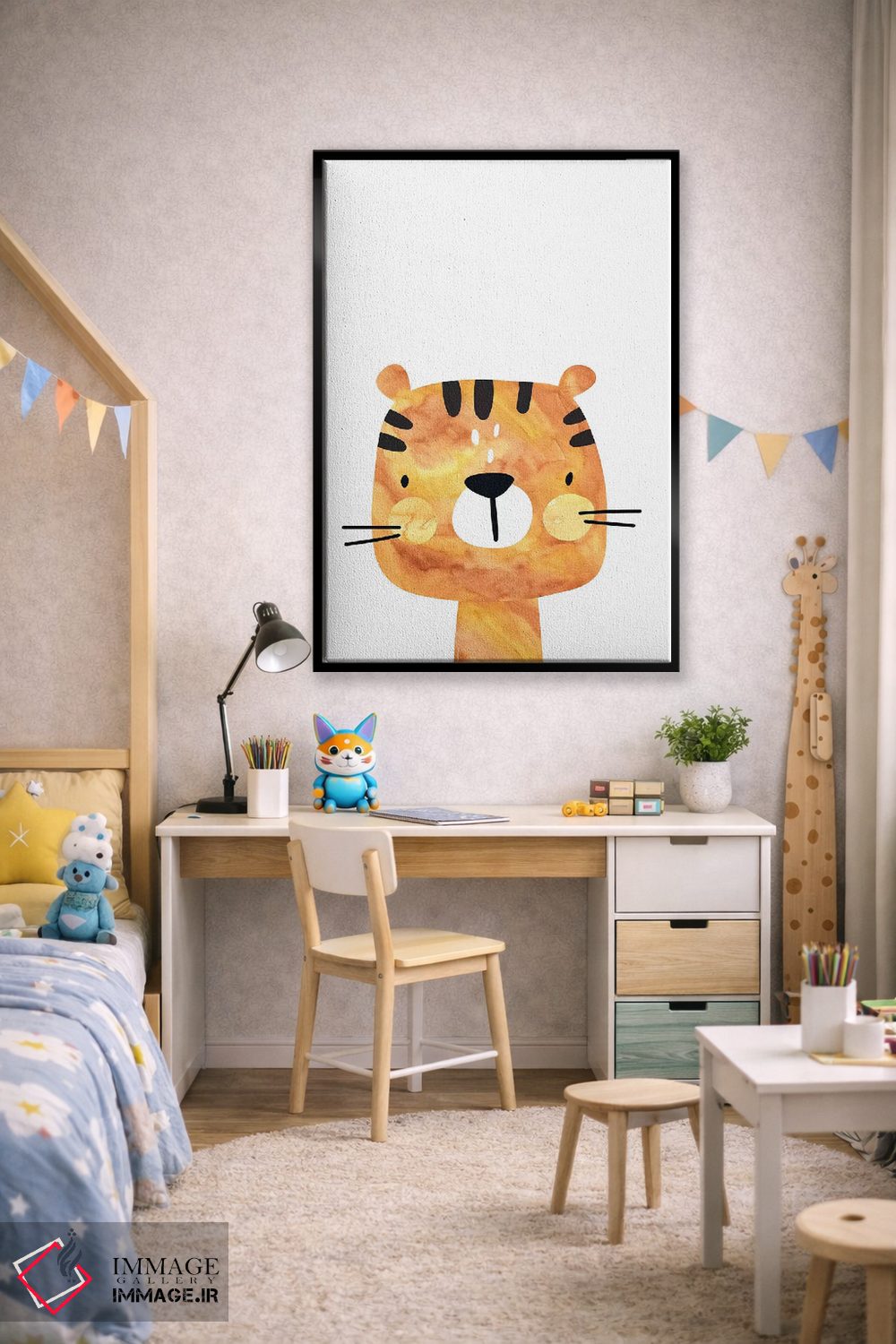 این اثر با عنوان «ببر آبرنگی» اثرِ «پیکسی پیپر (برند و استودیو چاپ)» یک لبخند ریز به چیدمان میدهد؛ برای اتاق بازی یا گوشهٔ مطالعه انتخابی خوشسلیقه است. برای دیوار گالریوار هم گزینهٔ خوبیست.