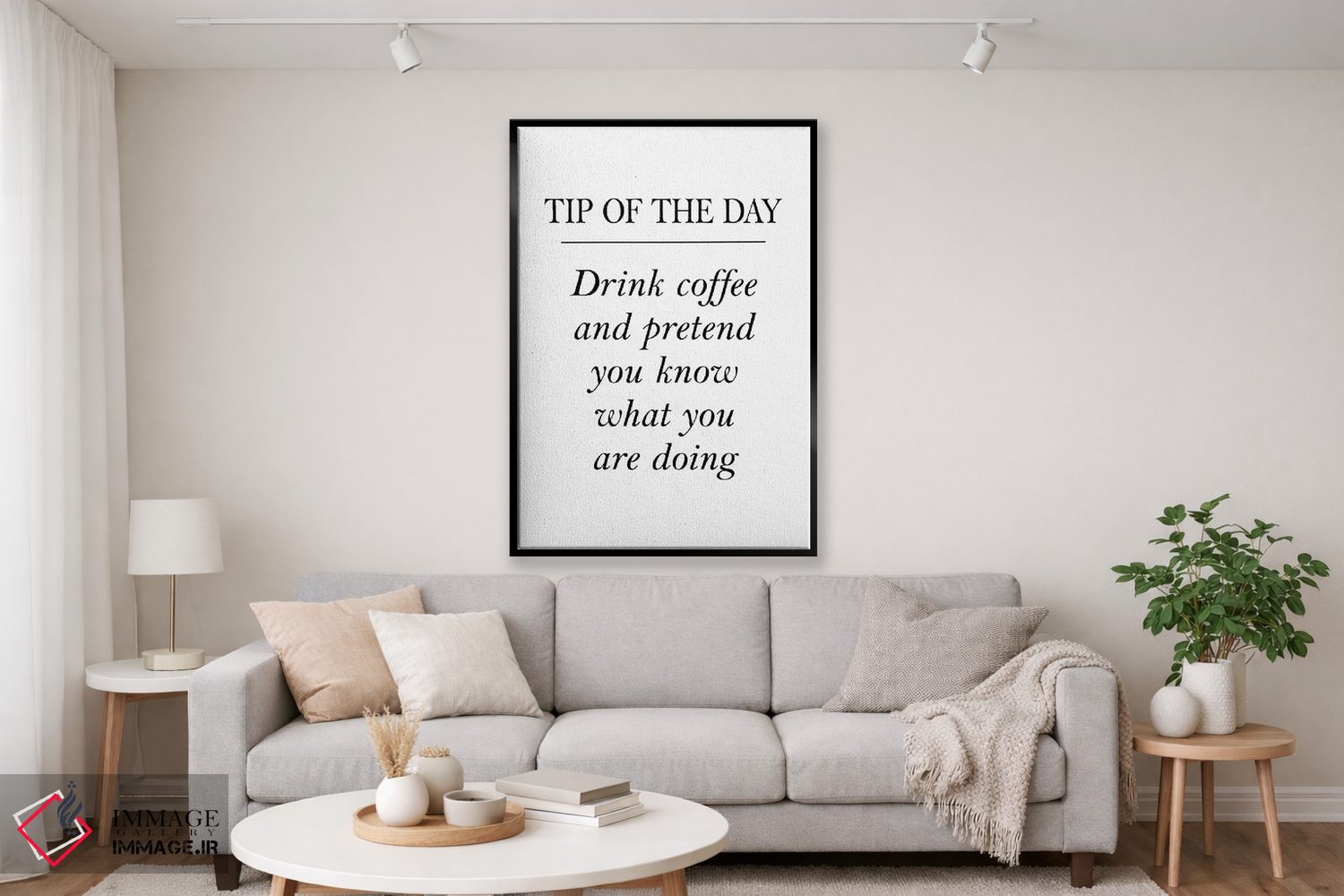 براساس پالت خنثی اثر، قاب مشکی مات (فریم باریک) پیشنهاد اول است و سفید مات (فریم باریک) مکمل. برای سفارشهای پروژهای با ابعاد و قابهای اختصاصی با ایماژ در تماس باشید.