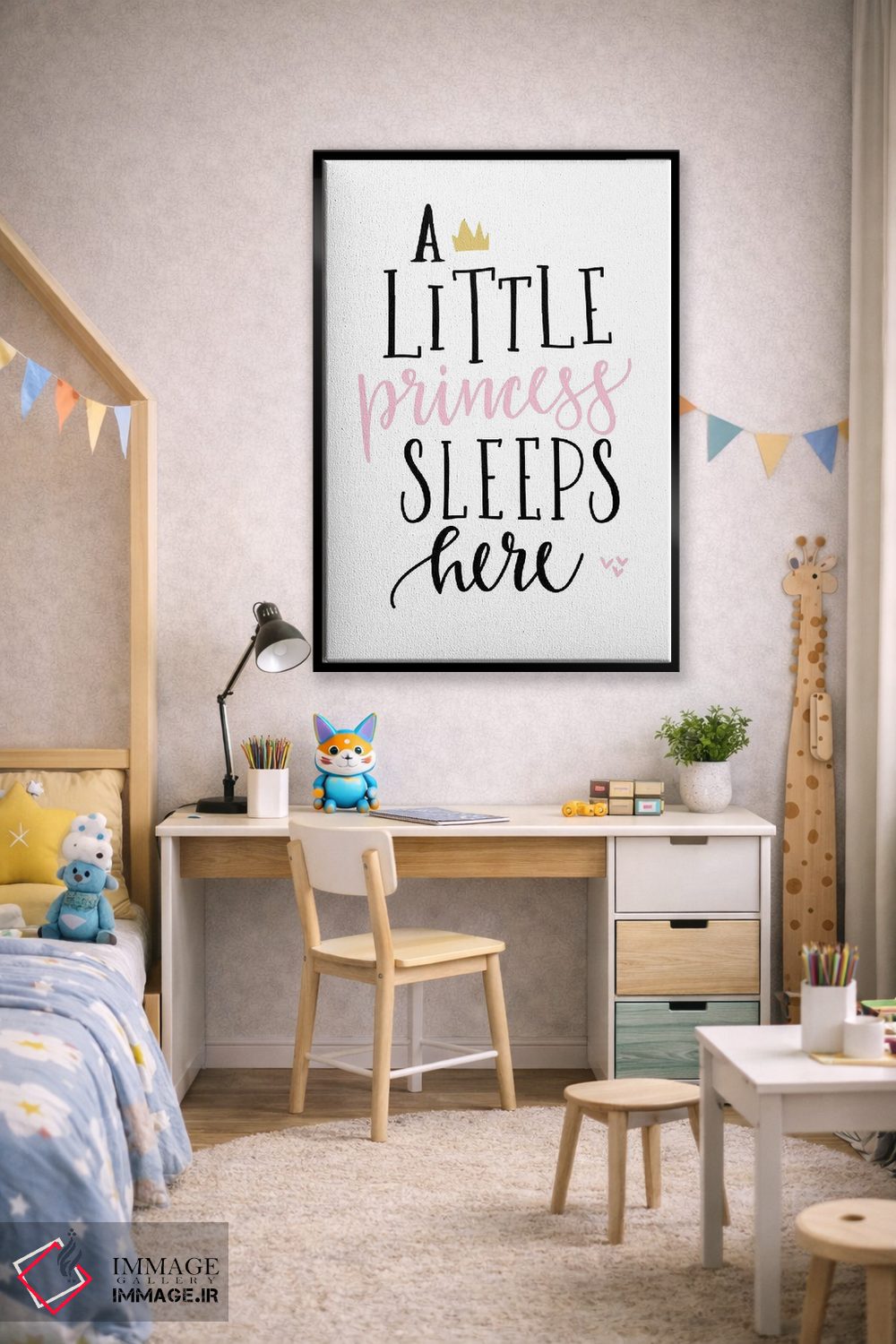 تابلو دکوراتیو یک پرنسس کوچک طلایی صورتی اثر پیکسی پیپر - نمای روبه‌رو روی دیوار