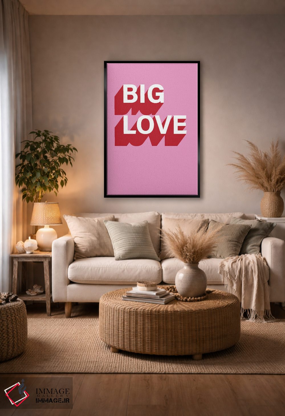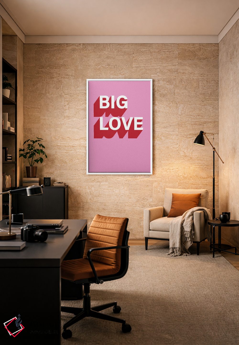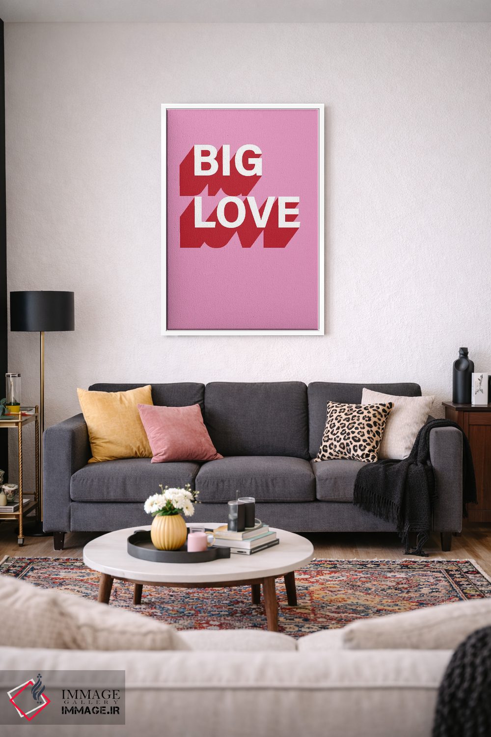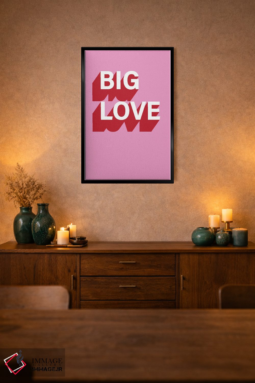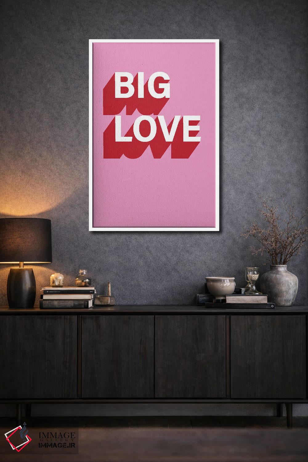 «عشق بزرگ» اثرِ «پیکسی پیپر (برند و استودیو چاپ)» بهخاطر ساختار گرافیکیاش، کنار رنگهای خنثی و دکور صنعتی هم خوب جلوه میکند.