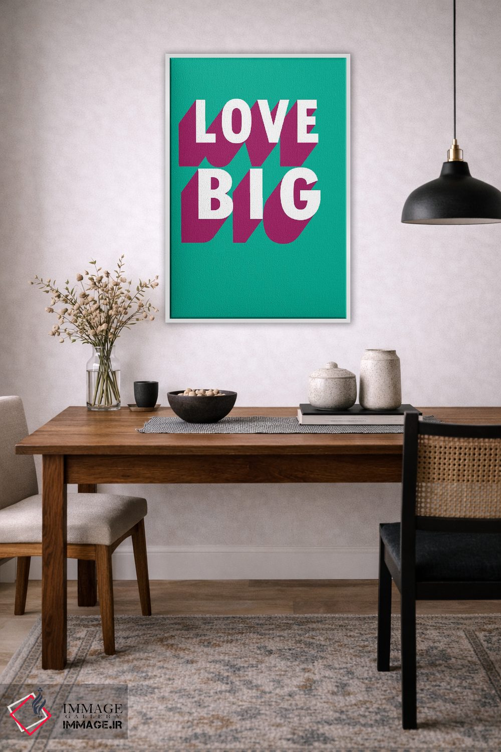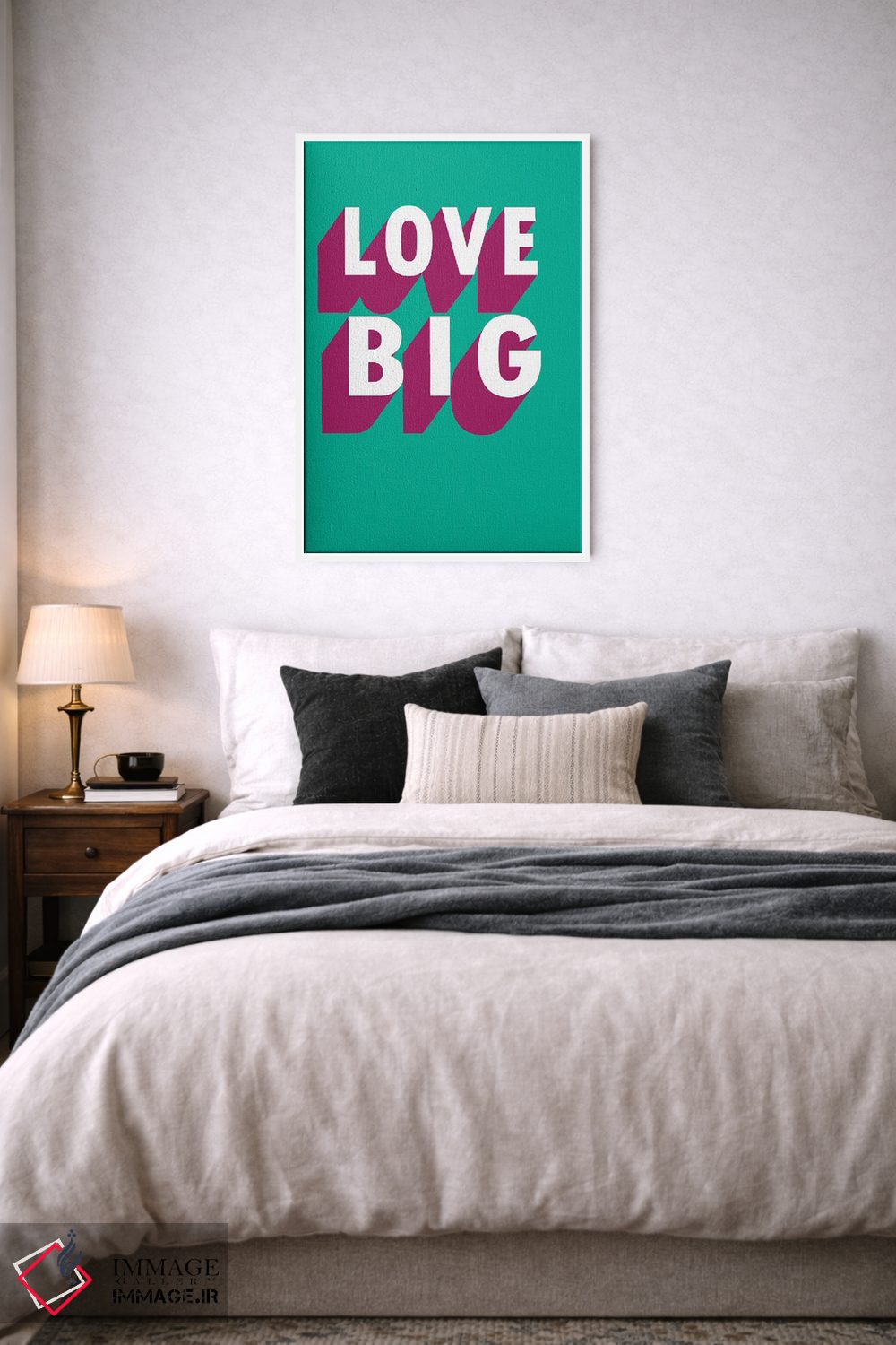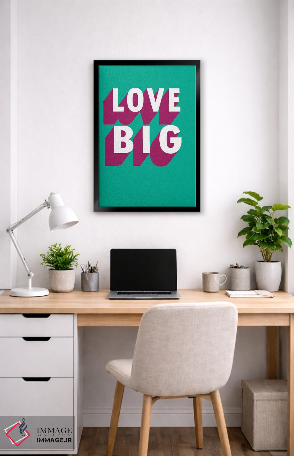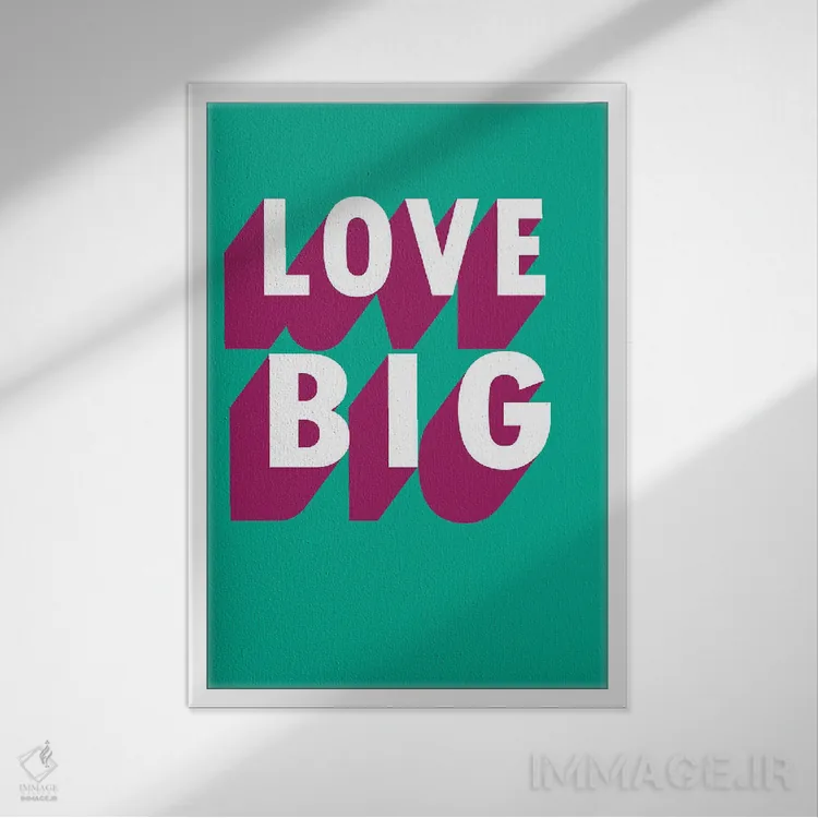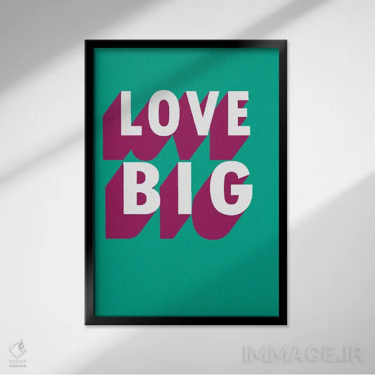 در «عشق—سایه بزرگ» اثرِ «پیکسی پیپر (برند و استودیو چاپ)»، تاکید روی خوانایی و ریتم حروف است؛ مناسب برای فضاهای پررفتوآمد مثل راهرو و ورودی.