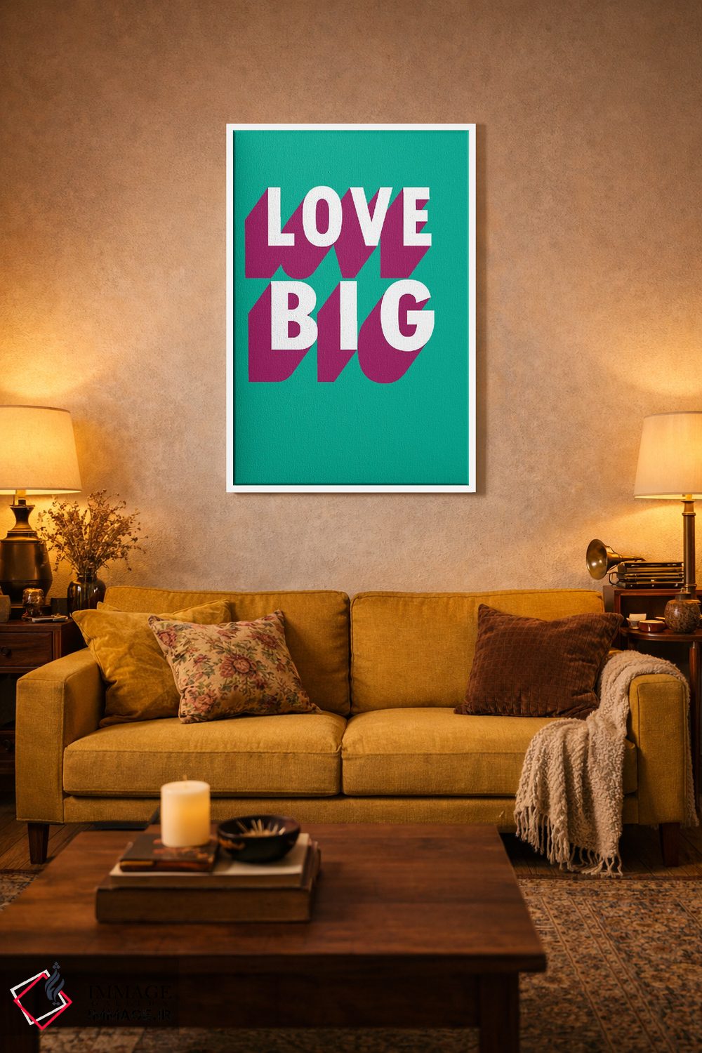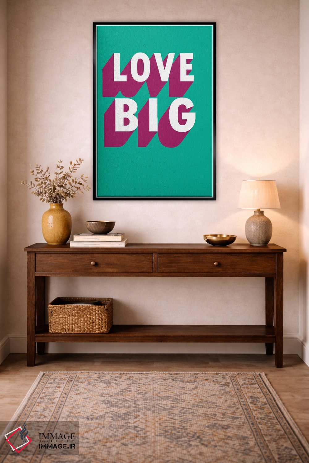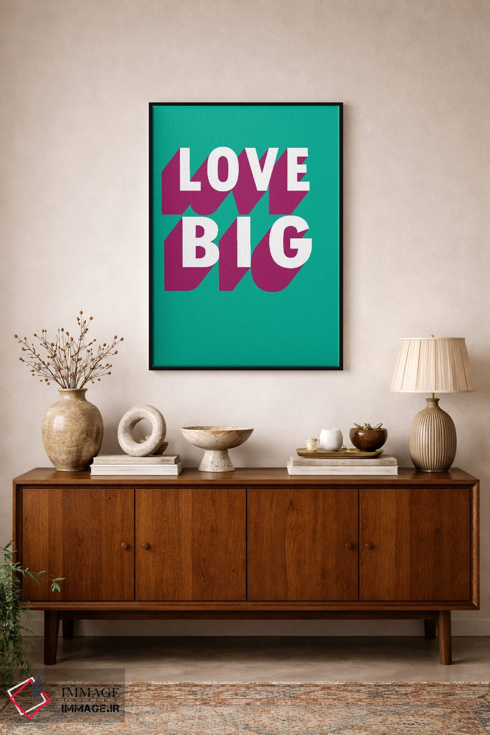 در «عشق—سایه بزرگ» اثرِ «پیکسی پیپر (برند و استودیو چاپ)»، تاکید روی خوانایی و ریتم حروف است؛ مناسب برای فضاهای پررفتوآمد مثل راهرو و ورودی.