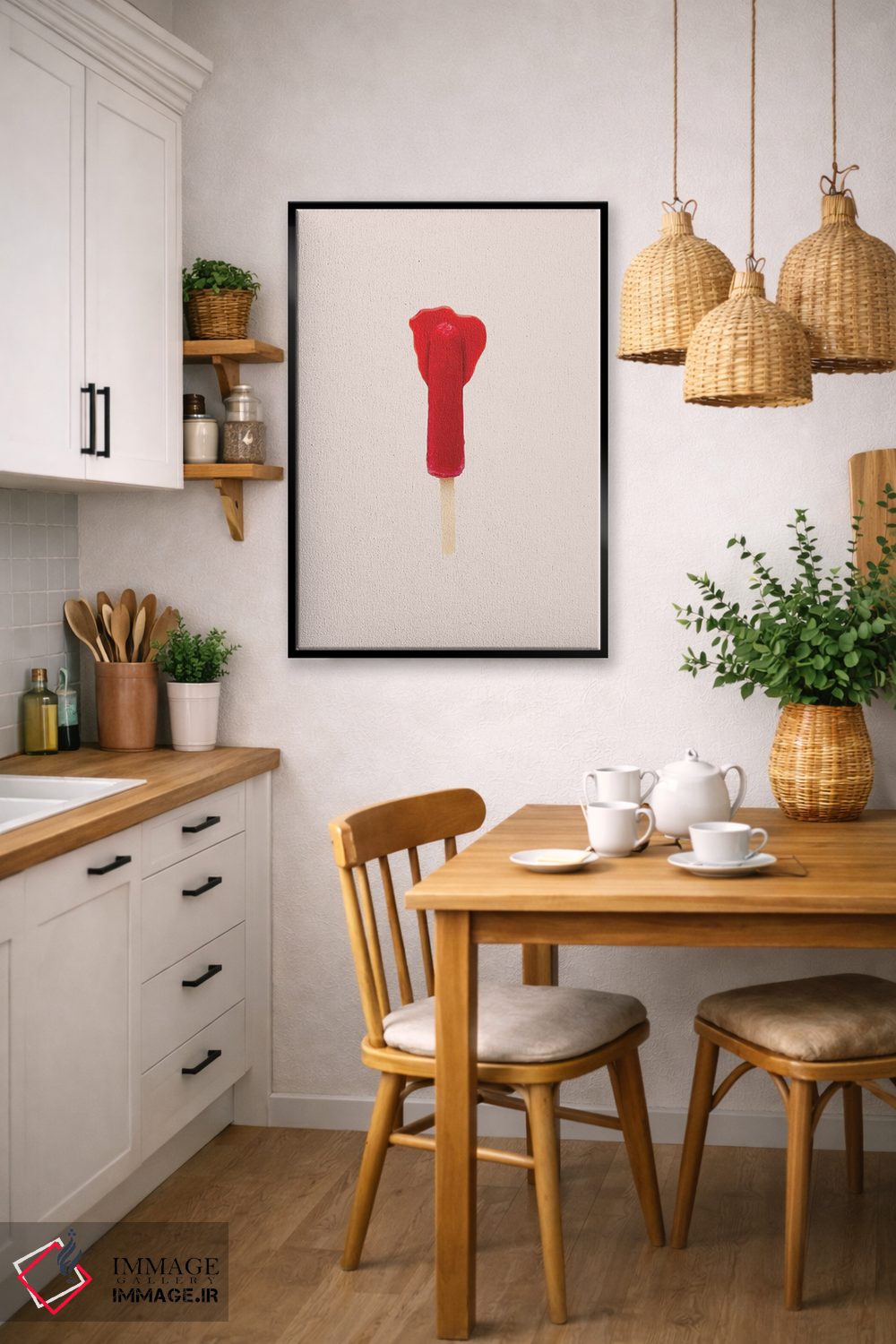 این تابلو با موضوعِ این دسته و اجرای هنری، یک انتخاب جذاب برای آشپزخانه یا فضای غذاخوری است اثرِ «پیکسی پیپر (برند و استودیو چاپ)».