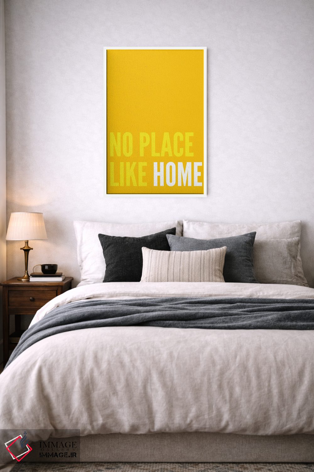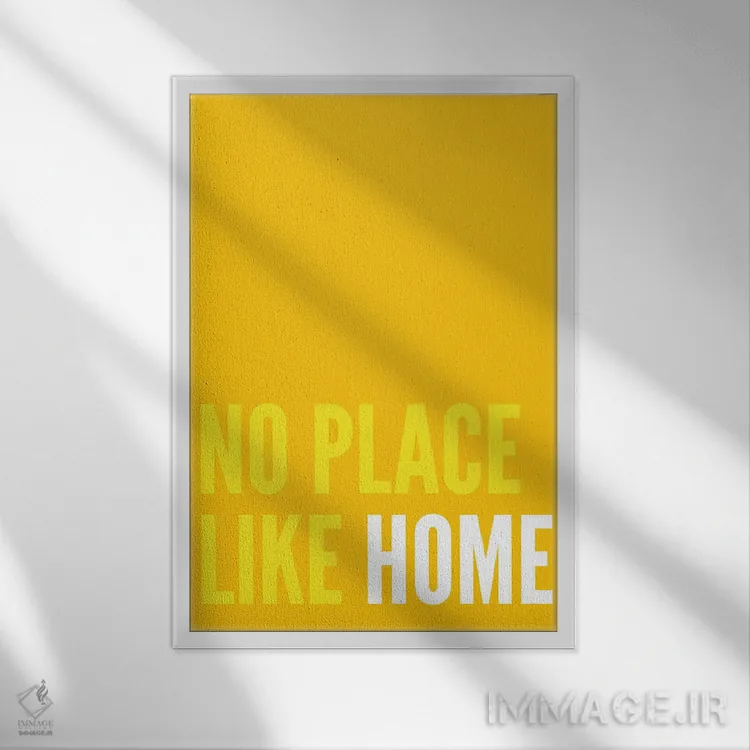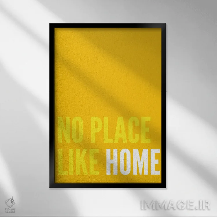 در «هیچ جا خانه خود آدم نمیشود (زرد)» اثرِ «پیکسی پیپر (برند و استودیو چاپ)»، تاکید روی خوانایی و ریتم حروف است؛ مناسب برای فضاهای پررفتوآمد مثل راهرو و ورودی.