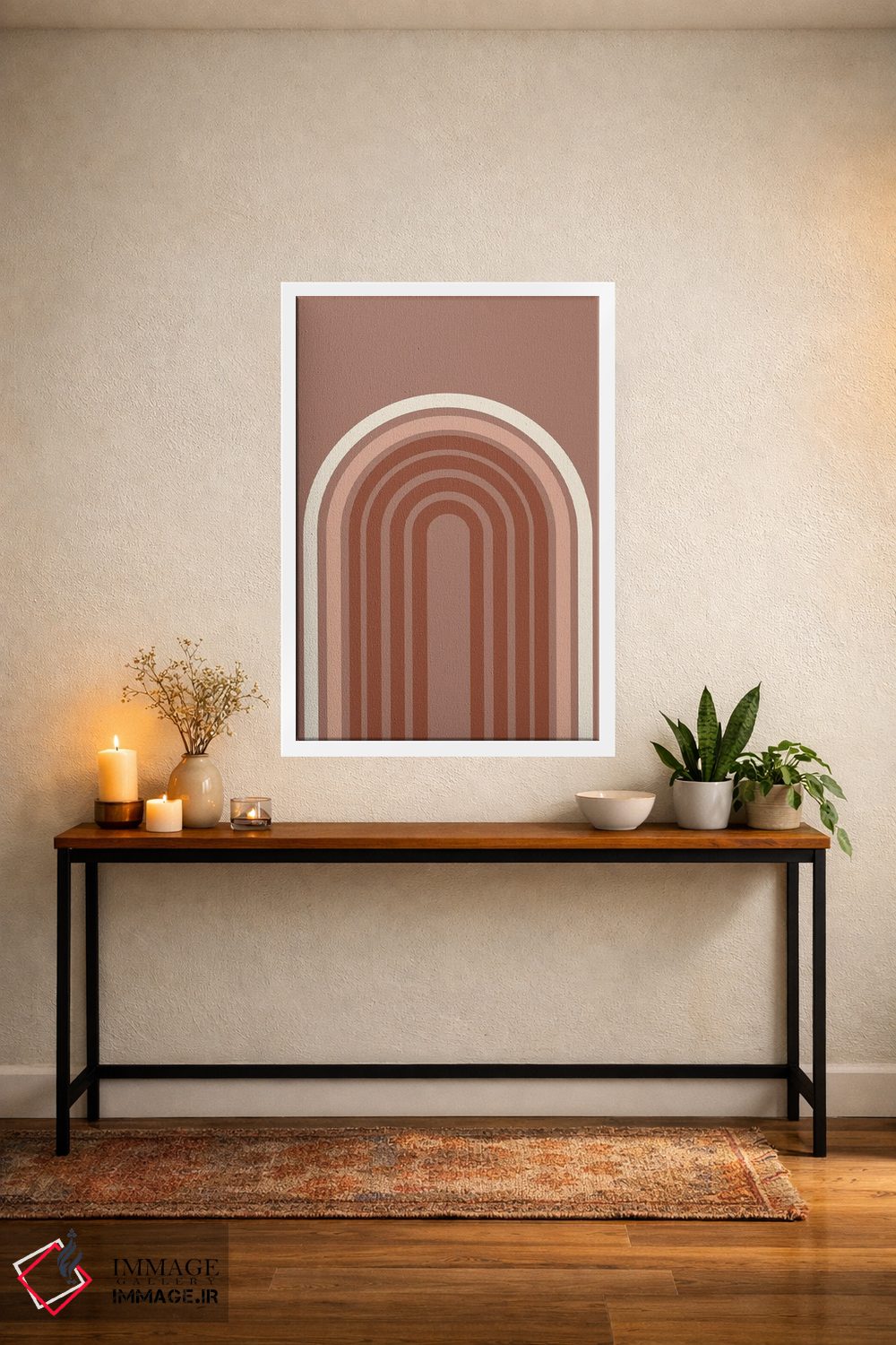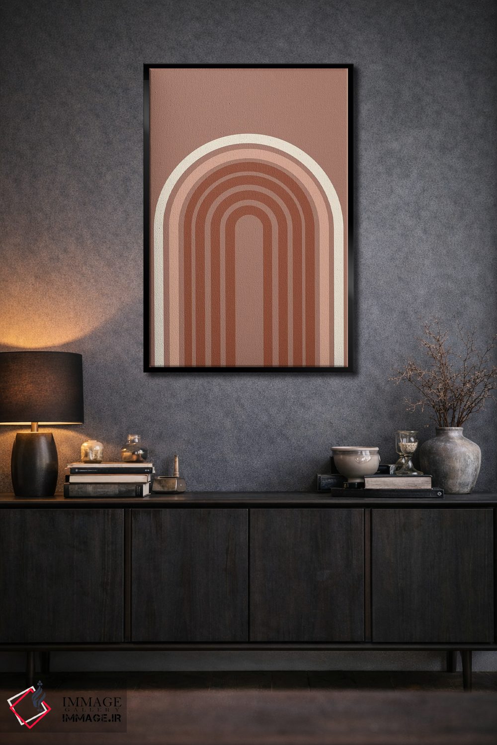 براساس پالت گرم اثر، قاب تیک گرم (چوبی) پیشنهاد اول است و مشکی مات (فریم متوسط) مکمل. برای سفارشهای پروژهای با ابعاد و قابهای اختصاصی با ایماژ در تماس باشید.