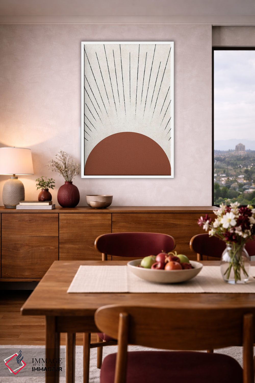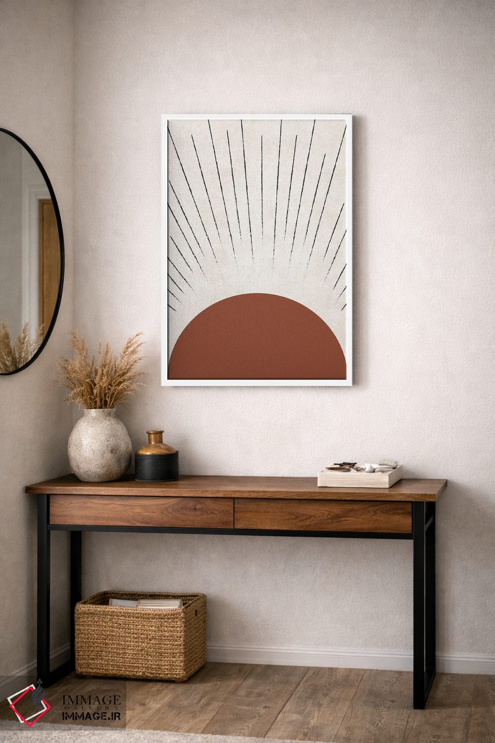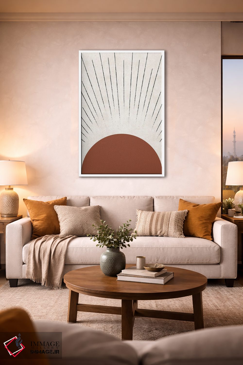 براساس پالت گرم اثر، قاب تیک گرم (چوبی) پیشنهاد اول است و مشکی مات (فریم متوسط) مکمل. برای سفارشهای پروژهای با ابعاد و قابهای اختصاصی با ایماژ در تماس باشید.