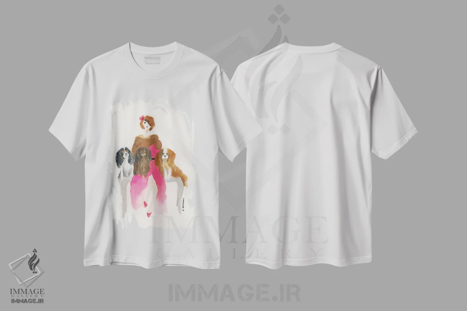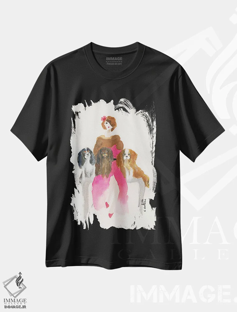 بانوی کاوالیِر صورتی پوش؛ تی شرت فانتزی حیوانات